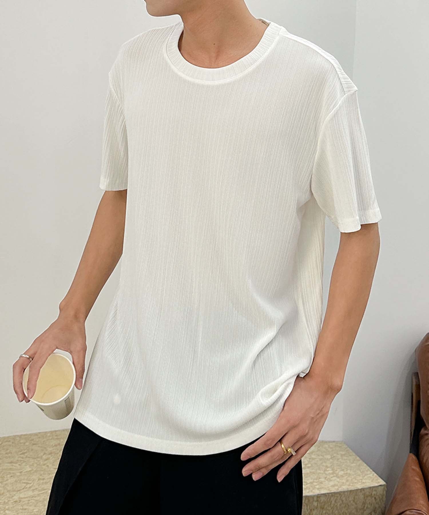 『リブテクスチャーが特徴のシンプルなクルーネックTシャツ』