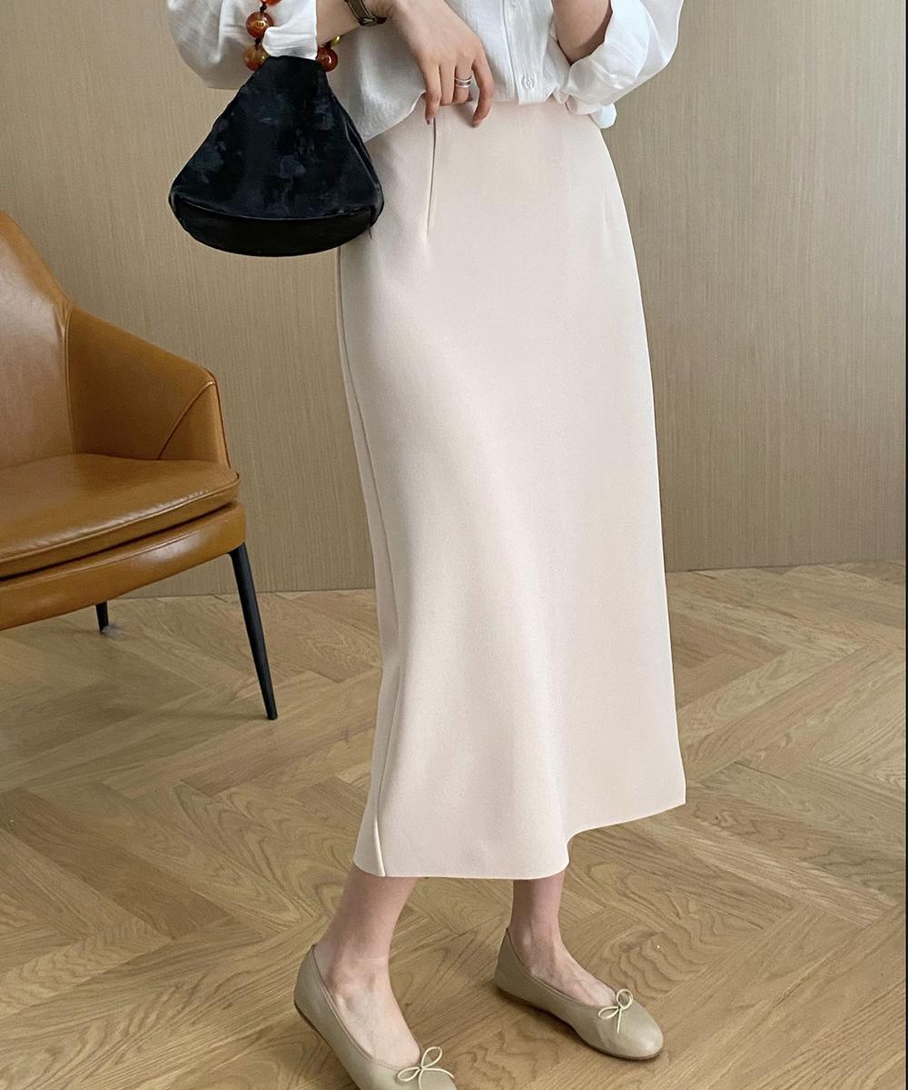 優雅さを引き立てるストレートフレアスカート。無地のシンプルな落ち着いたデザイン。身体のラインを拾い過ぎない程よい幅感でシルエットが美しい一着。