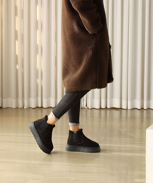 アッパーには肌触りが良く柔らかい保温性に優れたスエードレザーを使用。