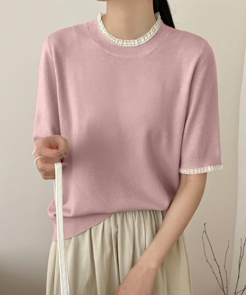 着回し力抜群のシンプルなクルーネックニットトップス。