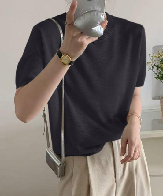 シンプル半袖ニットトップス