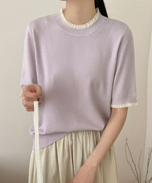配色クルーネック半袖ニットトップス