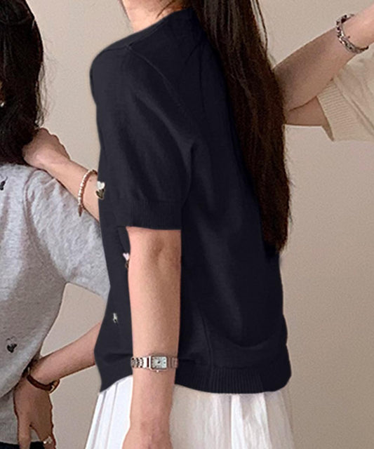 ハート刺繍入り半袖ニットトップス
