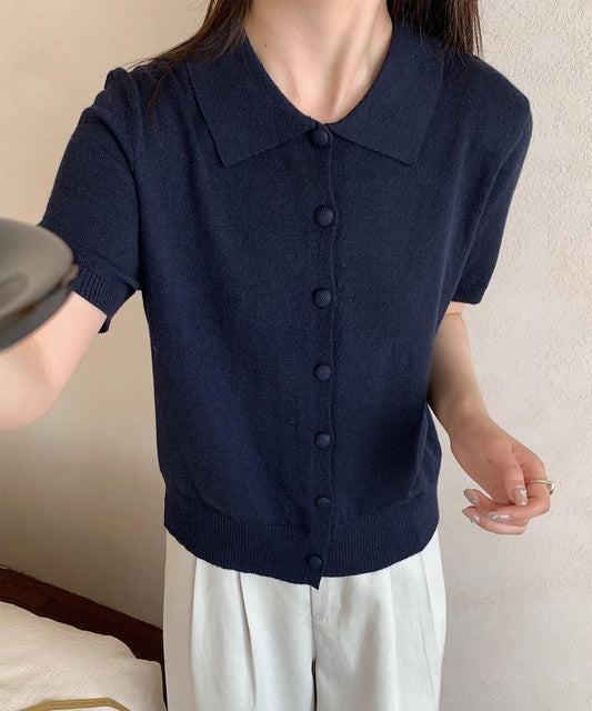 ポロ襟ボタン付き半袖ニットトップス
