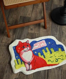 お部屋がパッと明るくなる!ポップなニャンコイラストが可愛いラグです✨