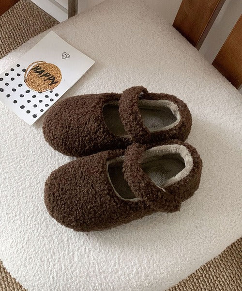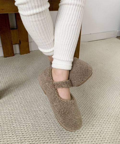 まるでぬいぐるみのような、ふわふわのボア素材が魅力のもこもこメリーシューズ。