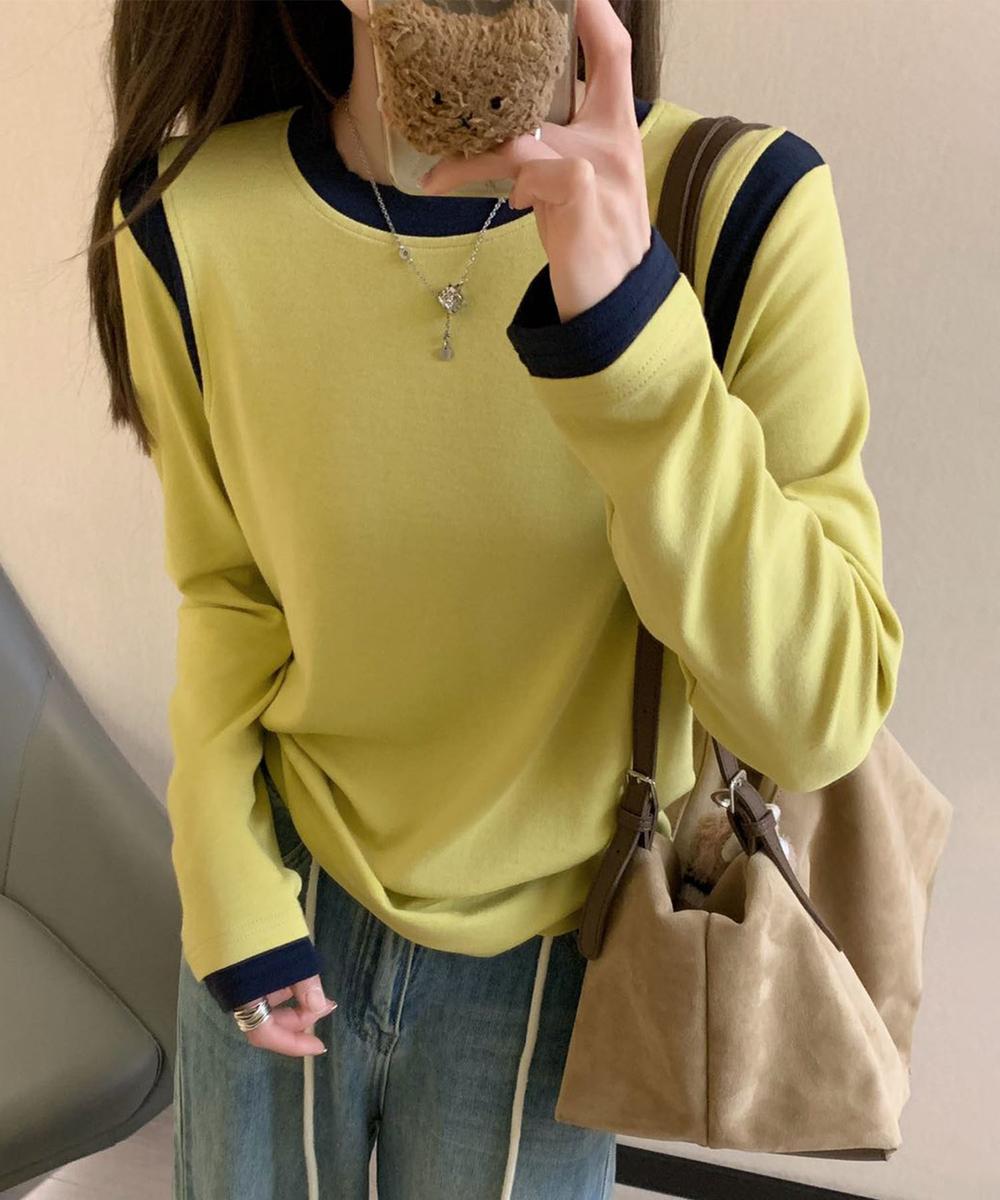 モダンでありながらシンプルなデザインが特徴の長袖トップス。袖口と裾の配色デザインがアクセントとなり、カジュアルながらもスタイリッシュな印象を与えます。適度にフィットしたシルエットで、ボトムスやスカートとの相性も抜群です。普段使いから外出シーンまで幅広く活用できるアイテムです。