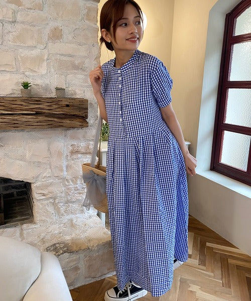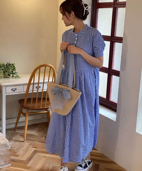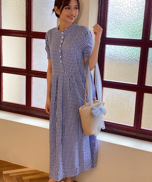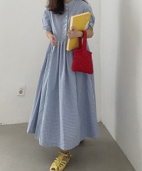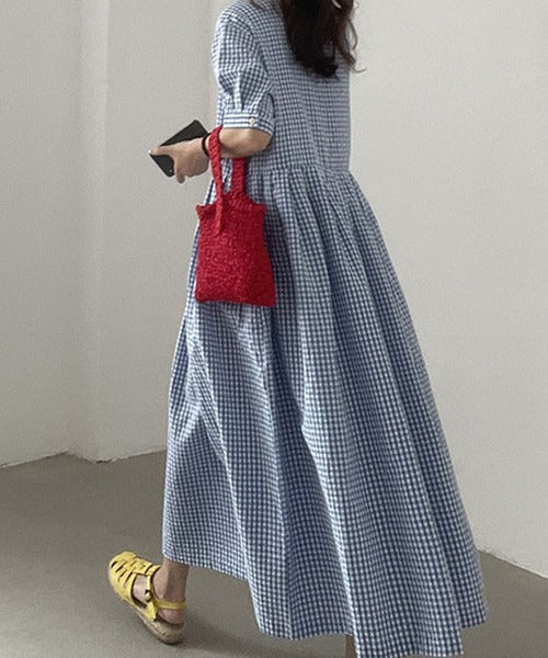 体型カバーできるゆったりとした大人可愛いチェックワンピース!