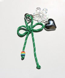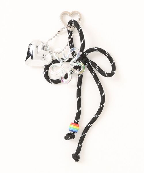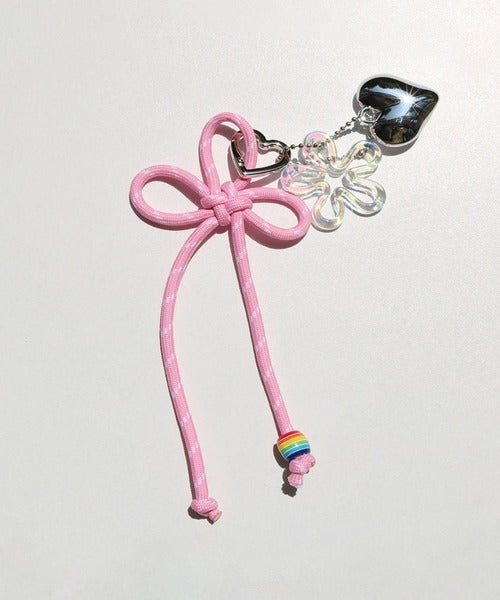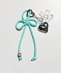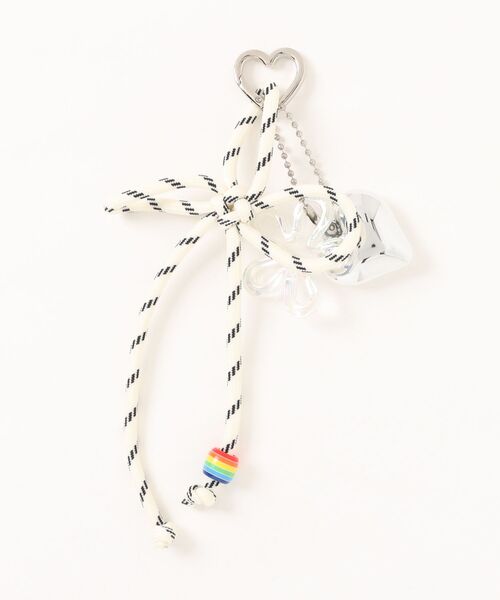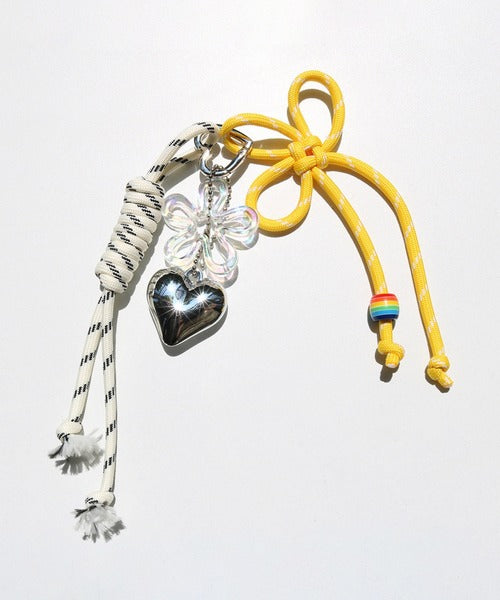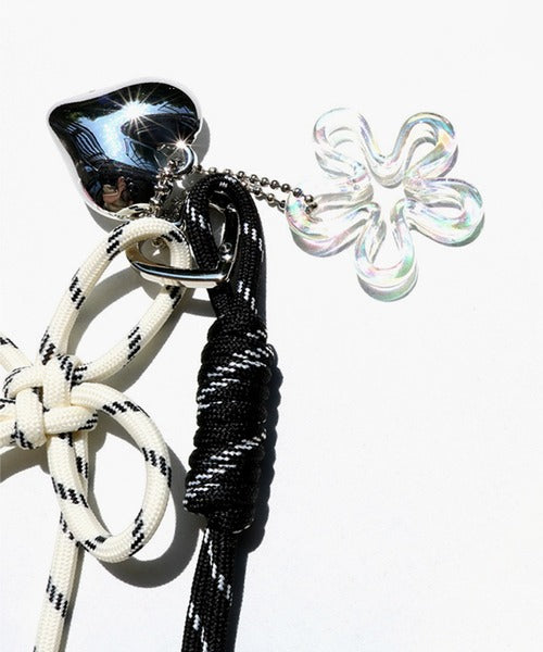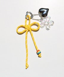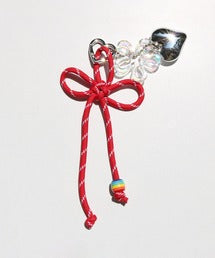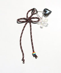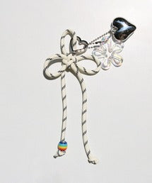 ハート型のビーズと花のモチーフが、シンプルながらも目を引くデザイン。