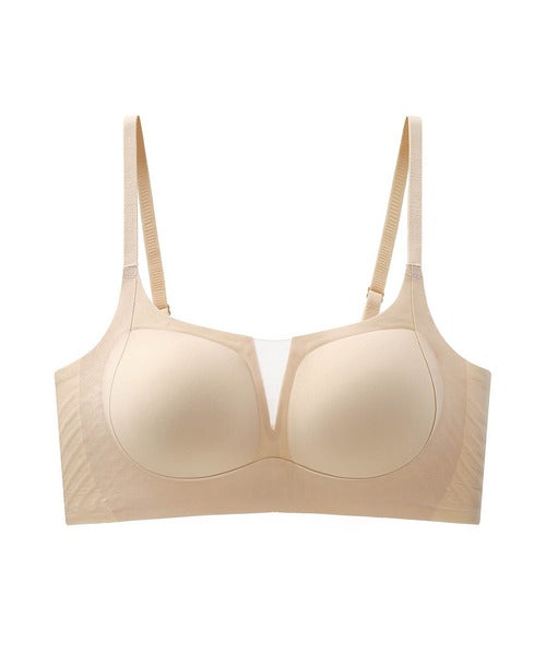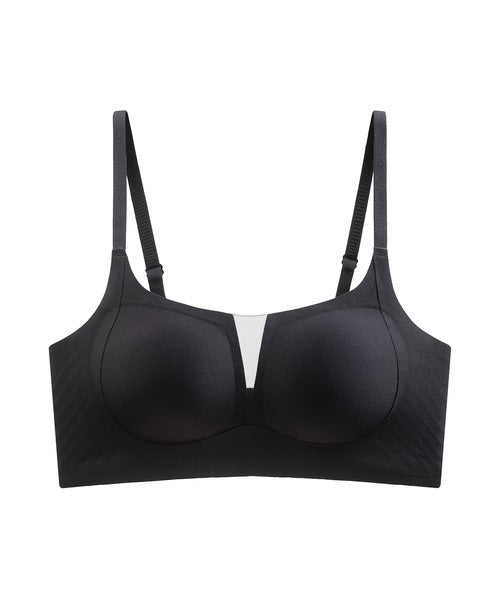 Vネック部分のメッシュ切り替えが特徴的なスポーツブラです。スポーツシーンはもちろん、普段使いにもおすすめです。ノンワイヤータイプなので締め付け感がなく、軽い運動からリラックスタイムに◎。柔らかく肌触りの良い素材を使用しており、なめらかな肌触りと優れた伸縮性で一日中快適に過ごせます。通気性の良いメッシュ素材で汗をかいても快適です。バスト全体を優しく包み込み、下から持ち上げるようにサポートし、自然な丸みをキープします。