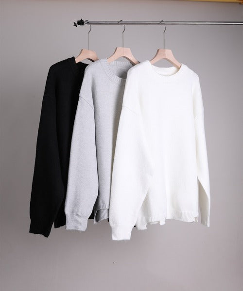 『裾のダメージ加工がポイントのニットプルオーバー。』