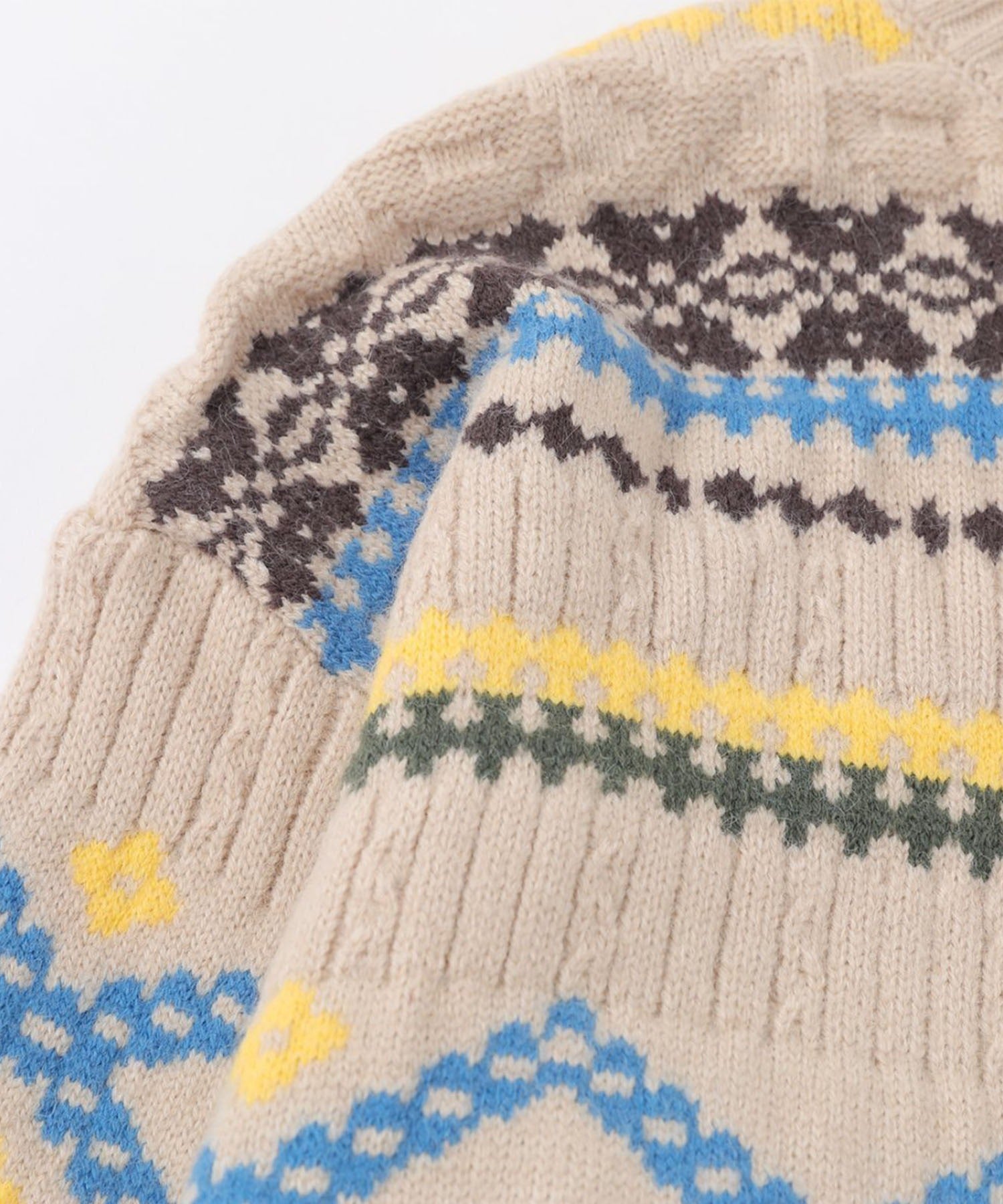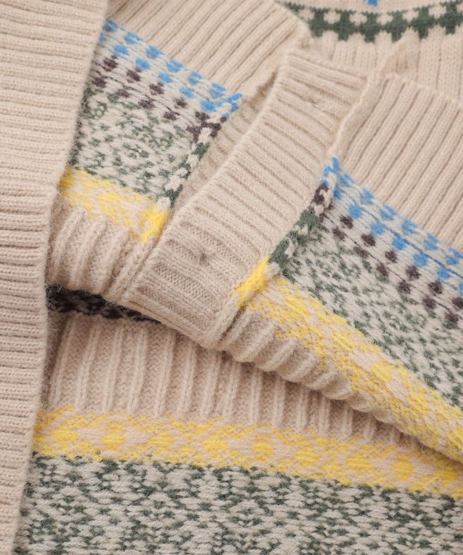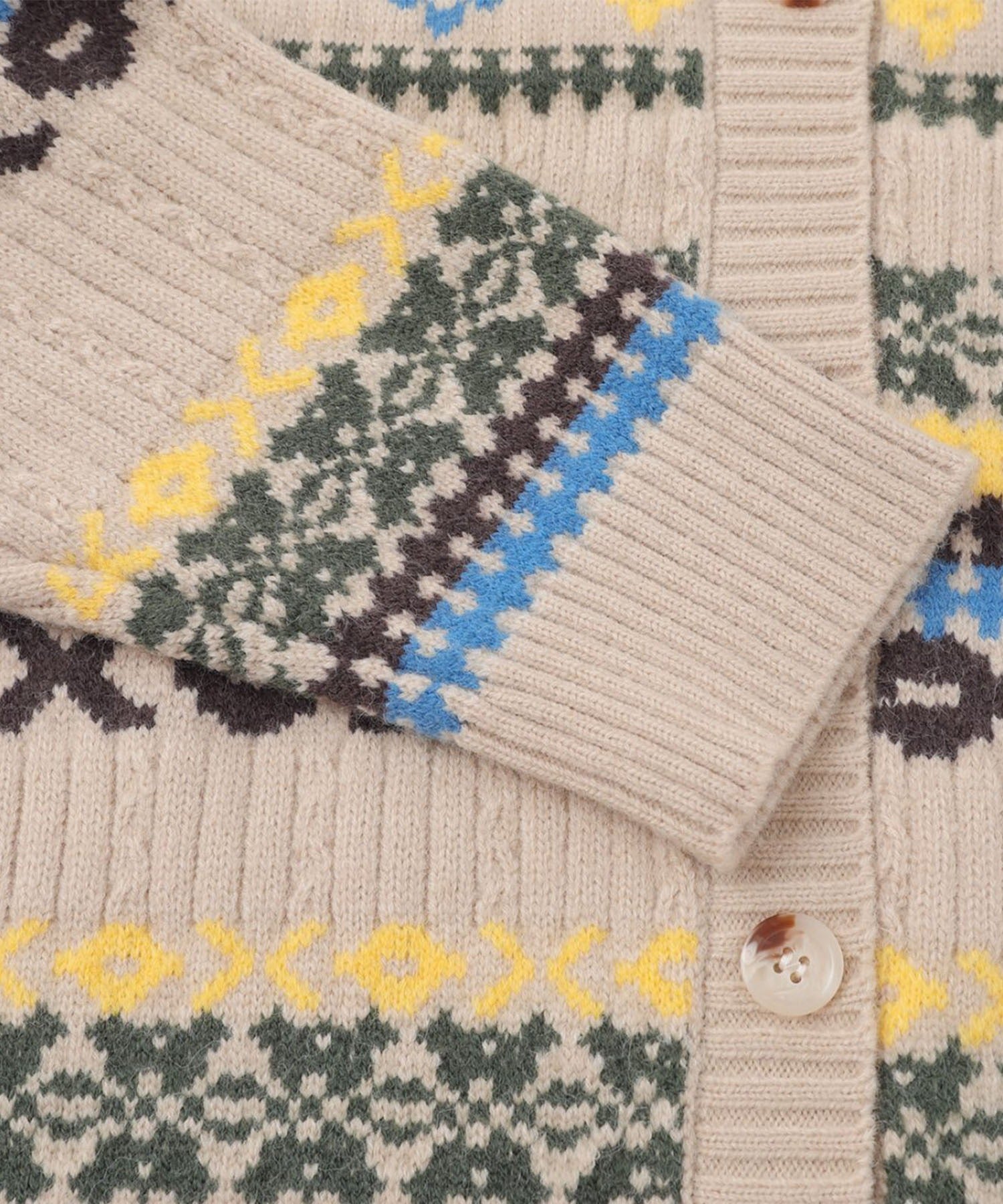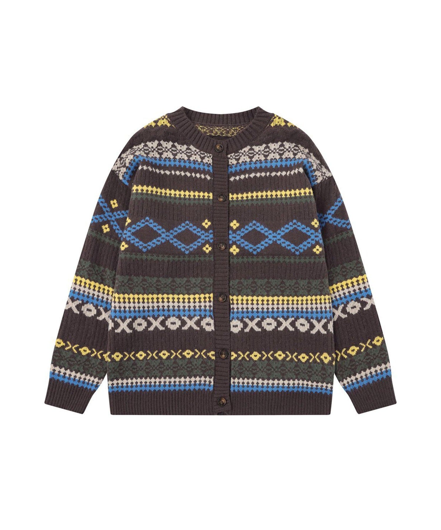 ノルディックとフェアアイルをミックスしたような柄を、ストリートに落とし込んだデザインカーディガン。
