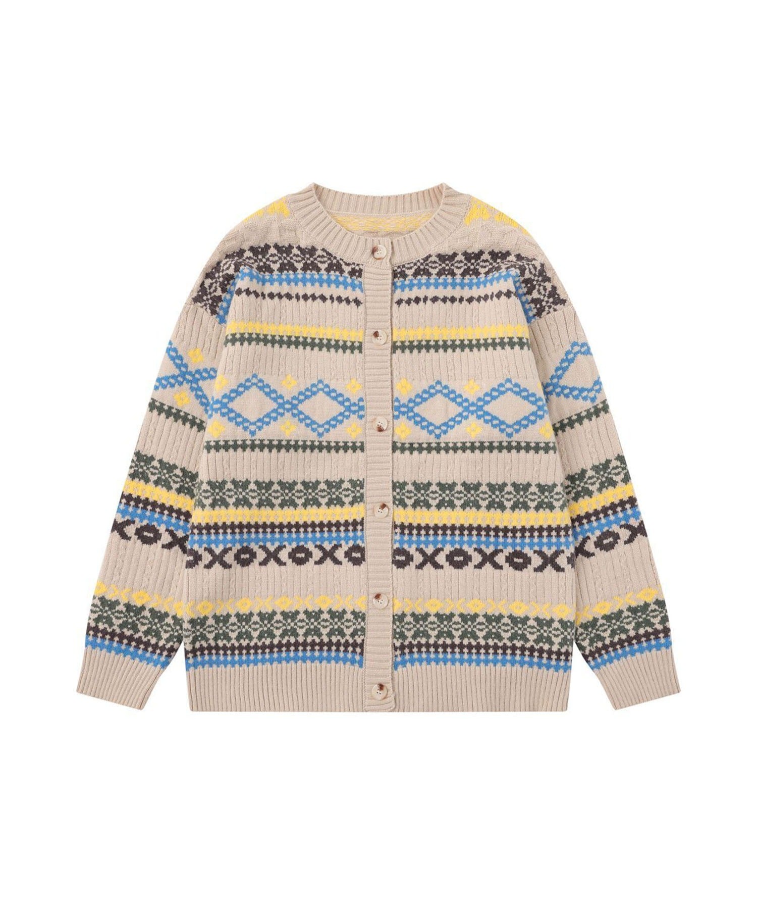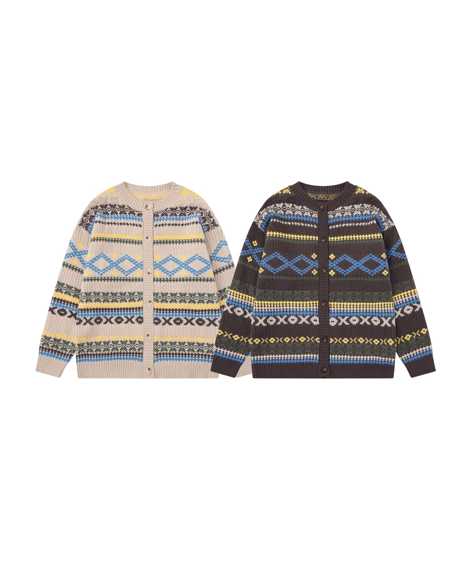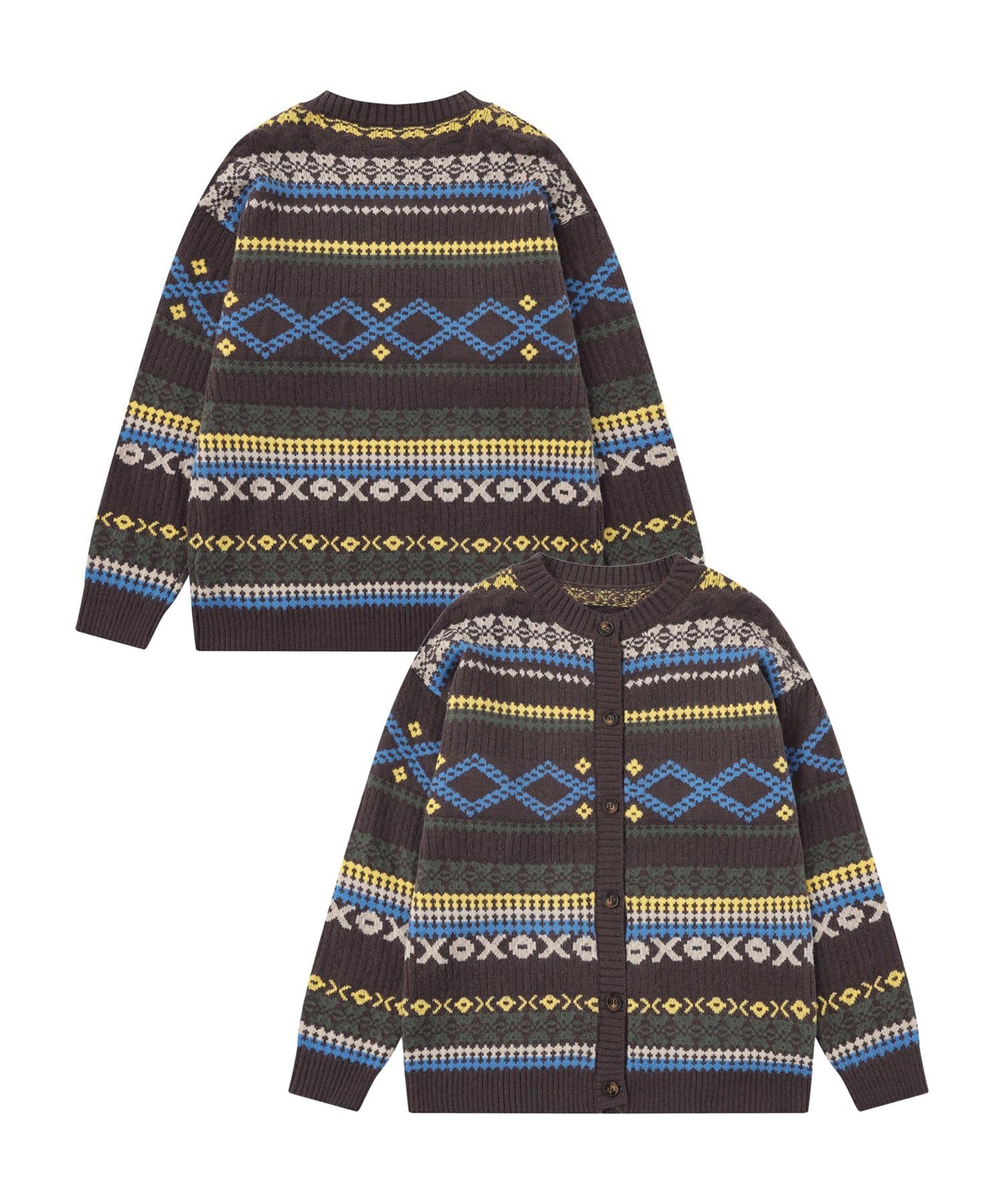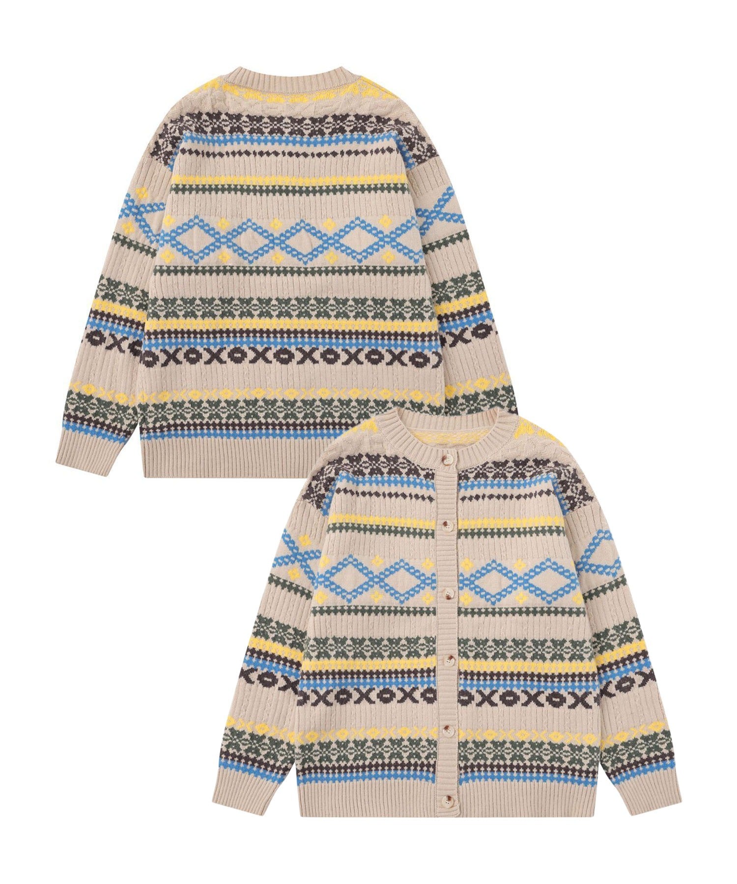 ノルディックとフェアアイルをミックスしたような柄を、ストリートに落とし込んだデザインカーディガン。