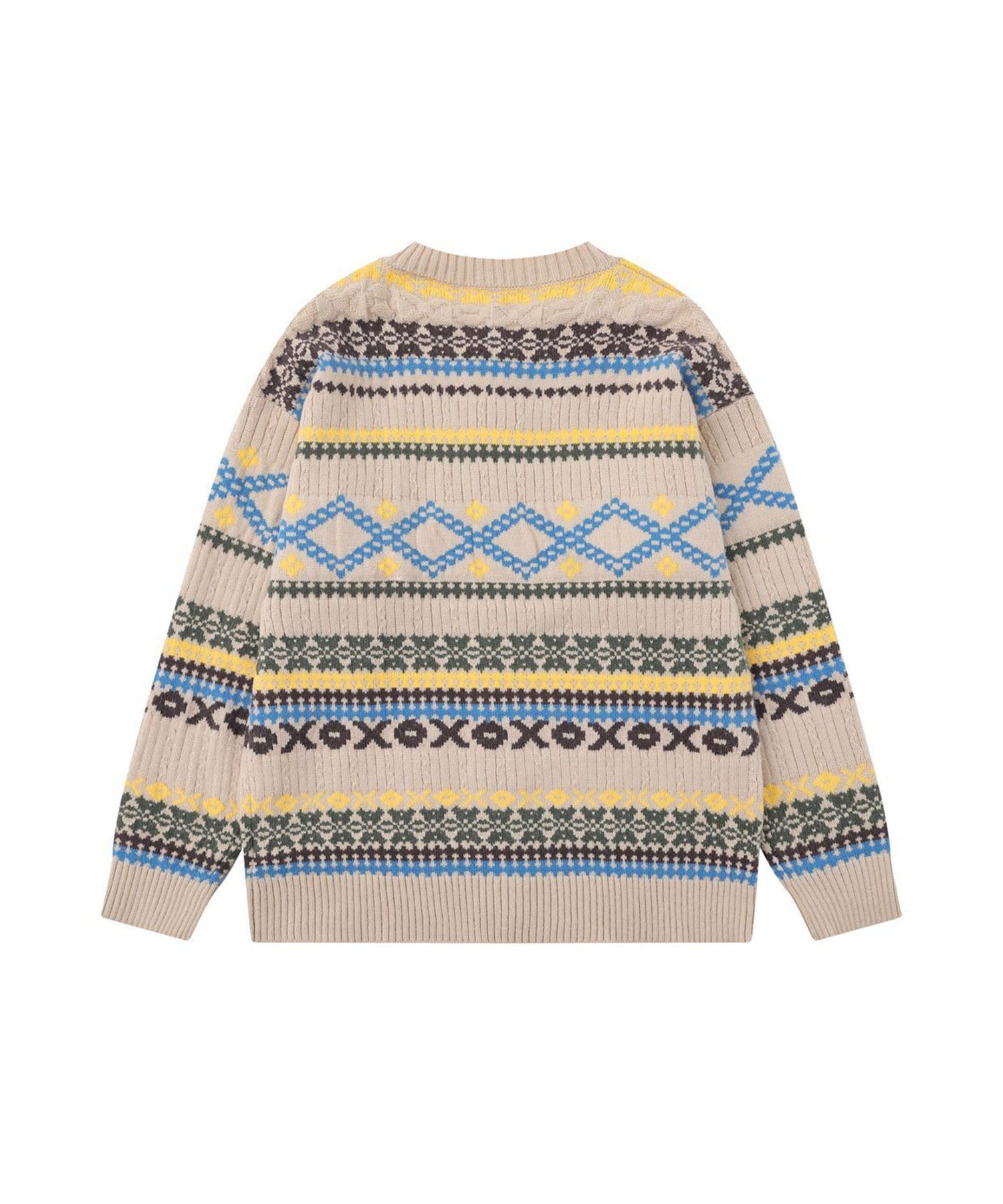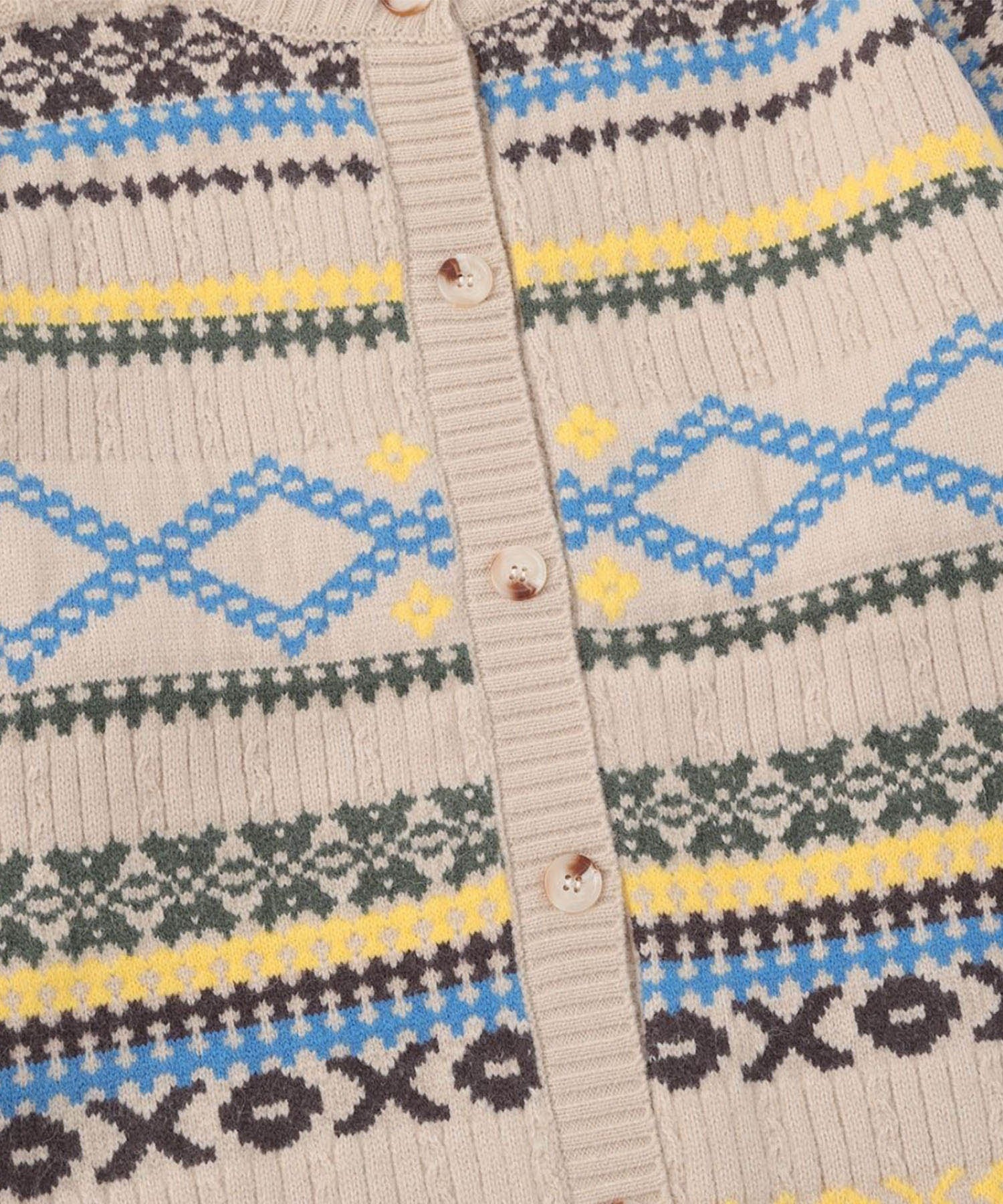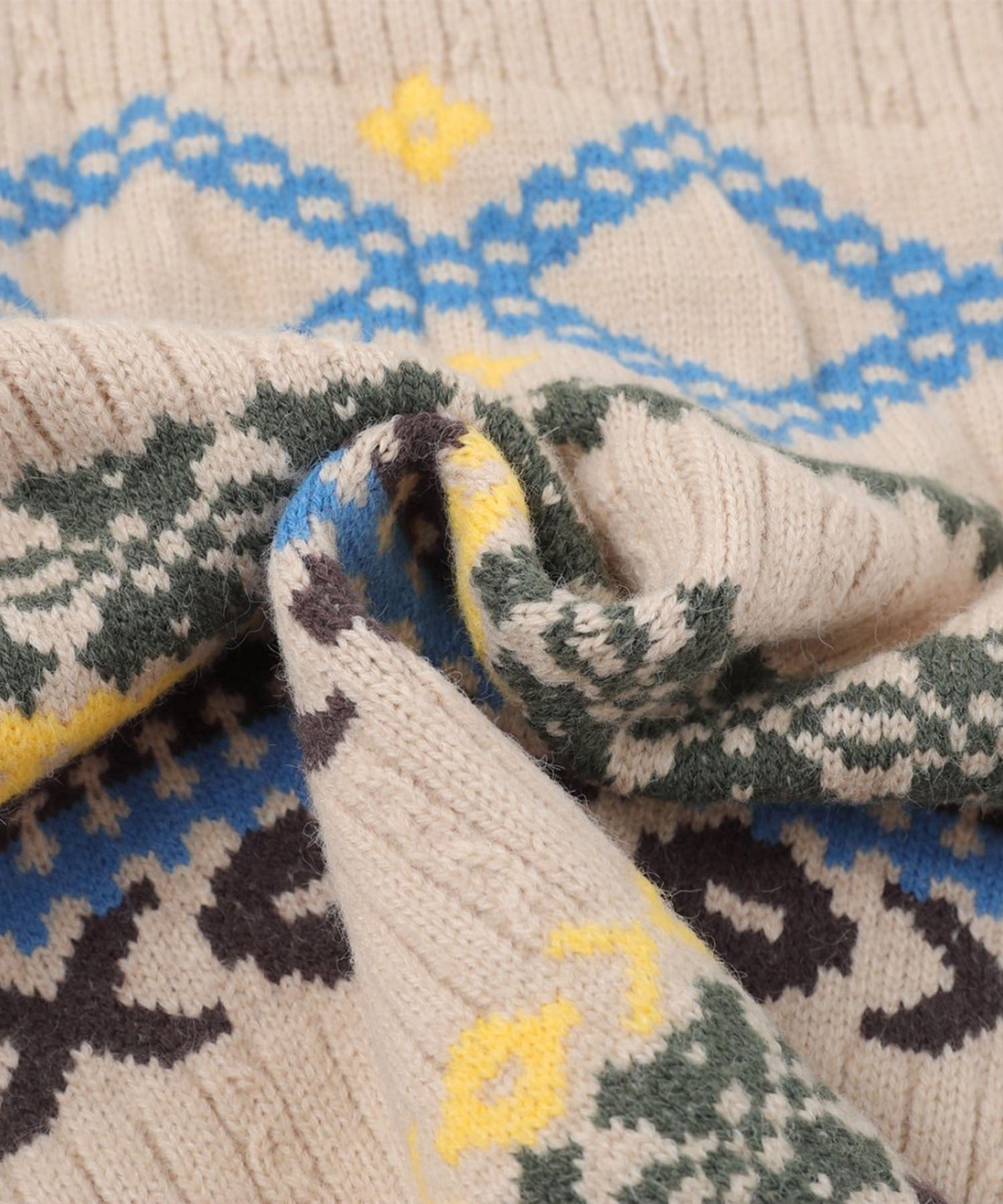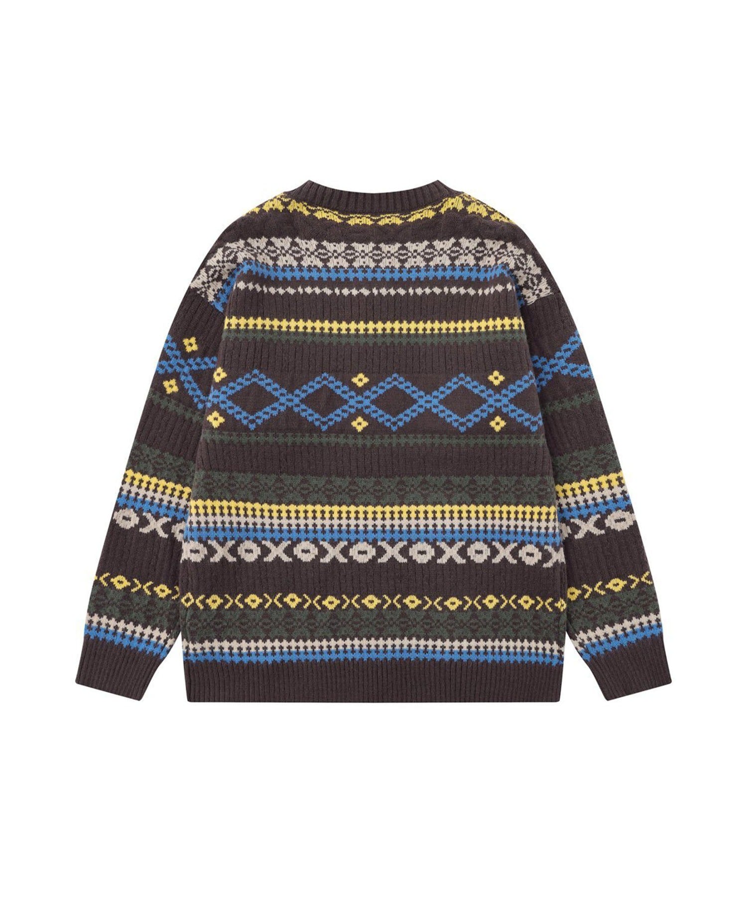ノルディックとフェアアイルをミックスしたような柄を、ストリートに落とし込んだデザインカーディガン。