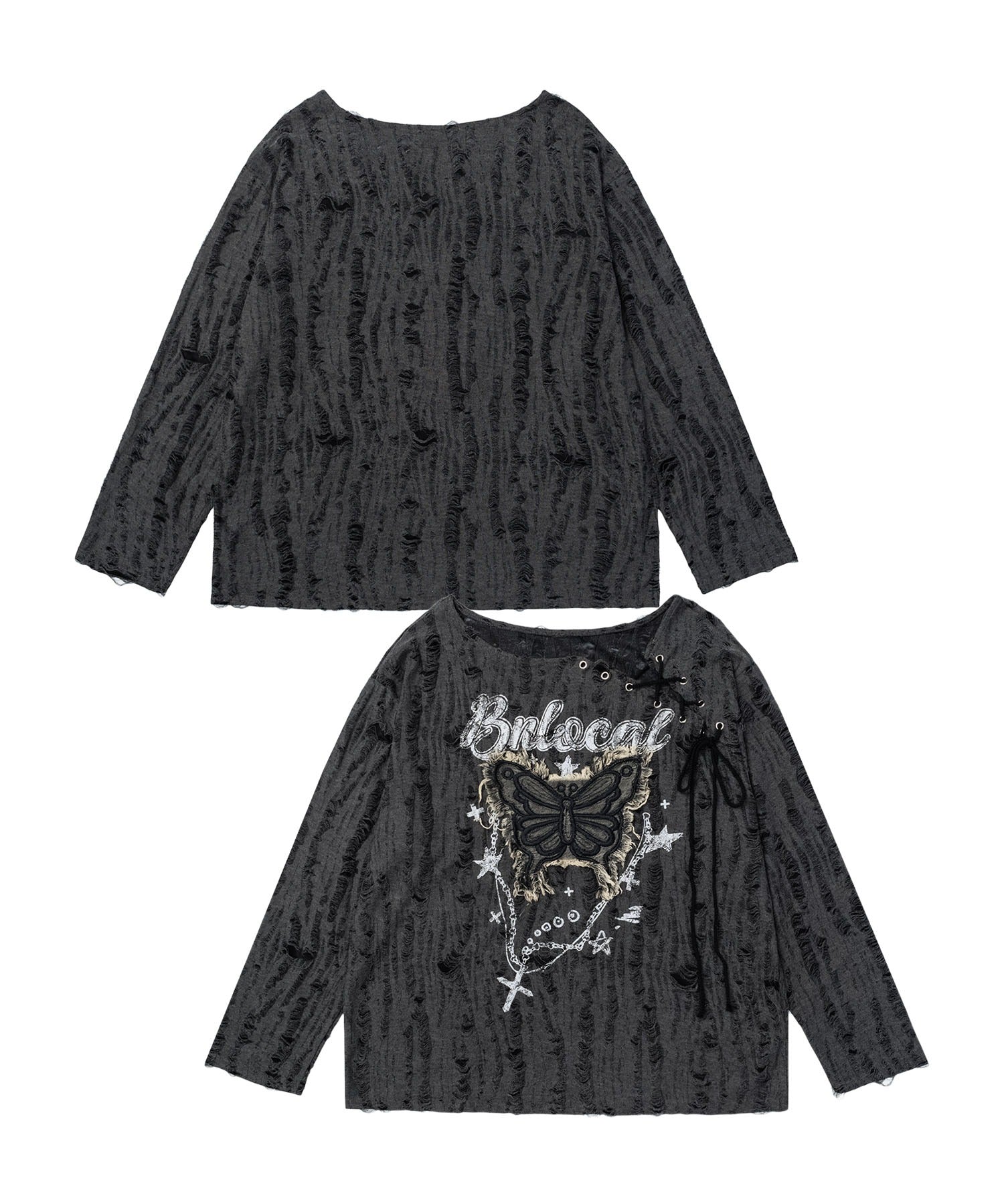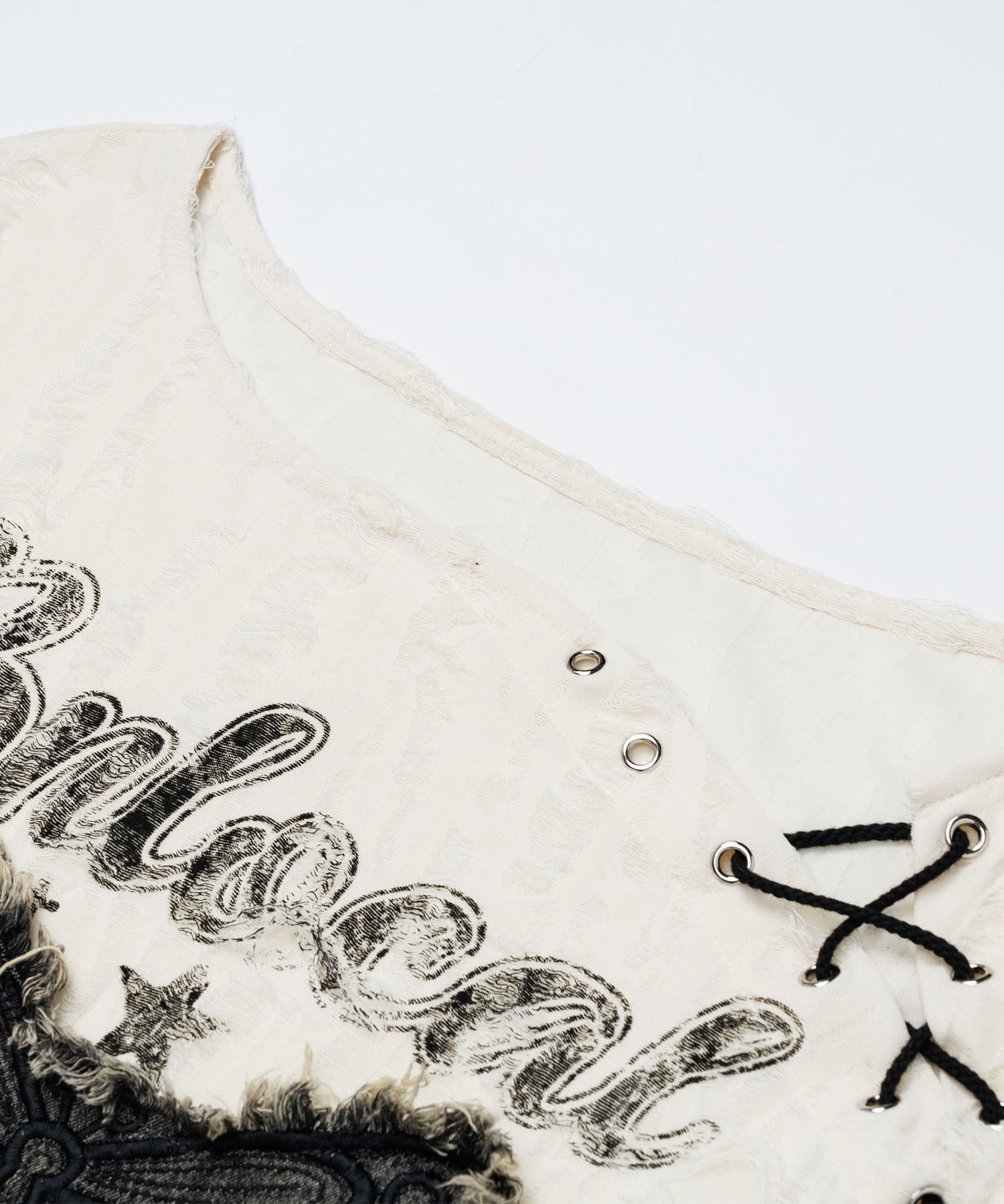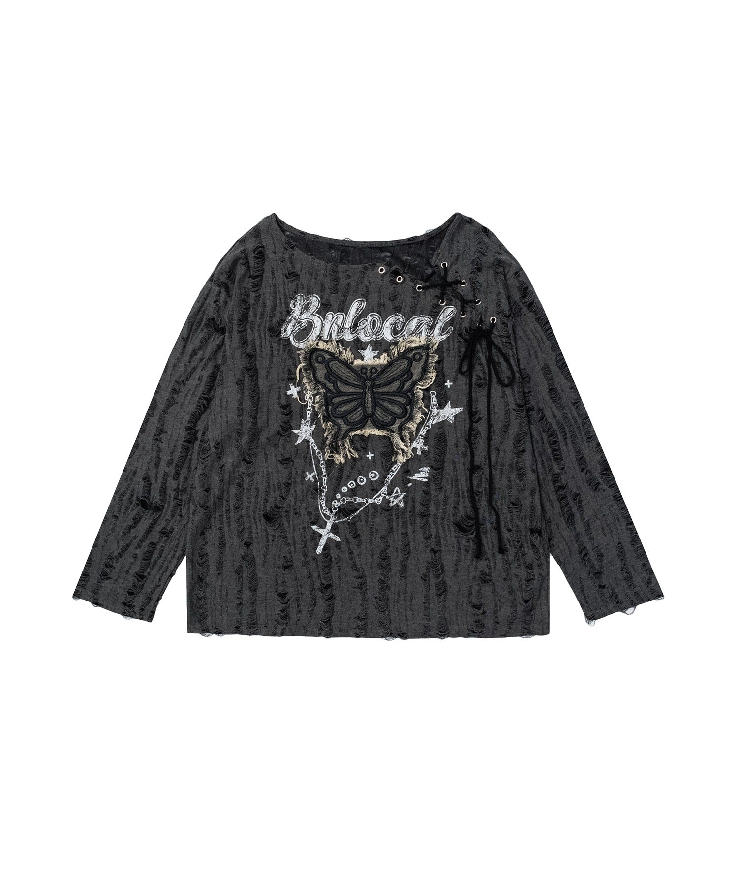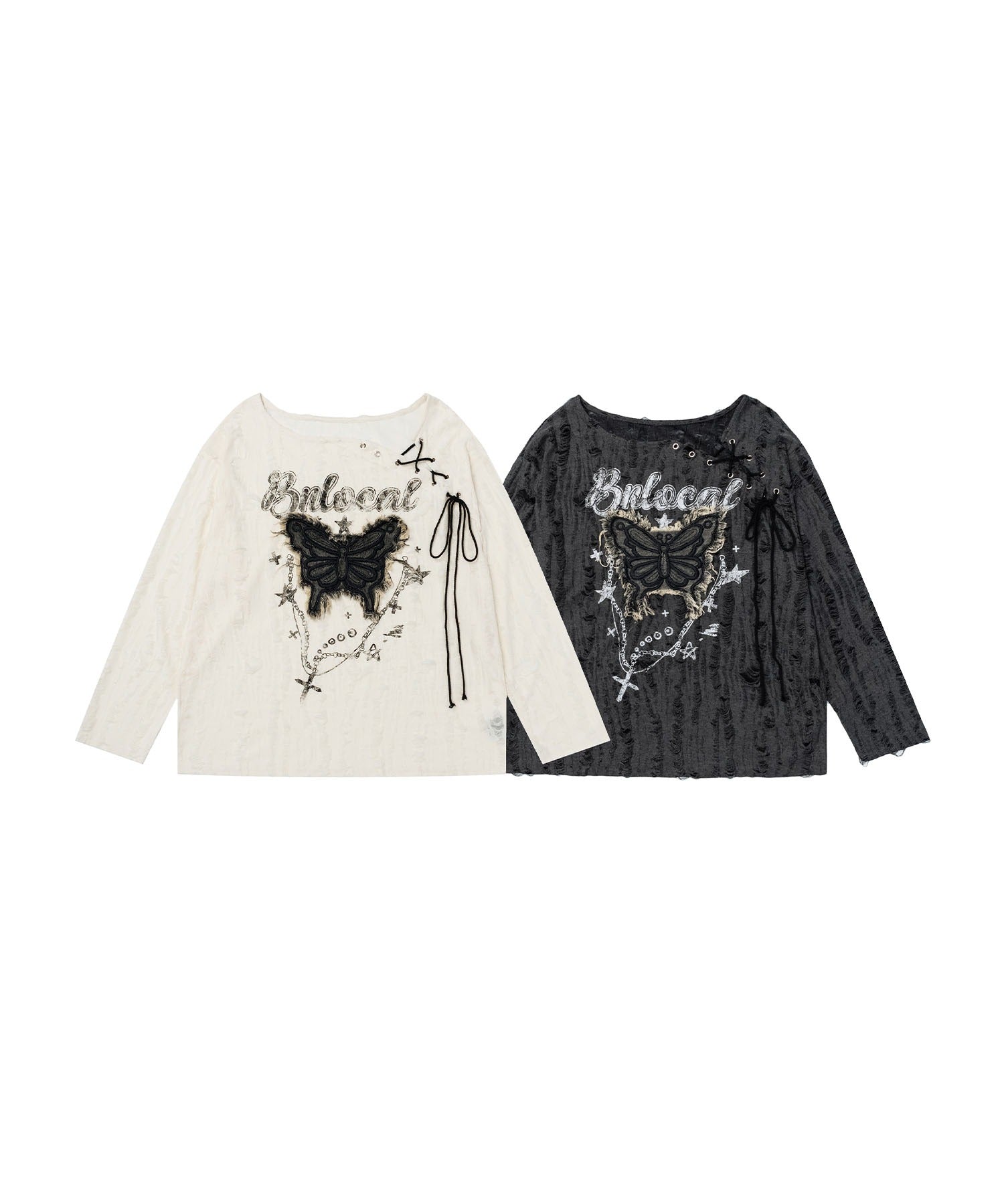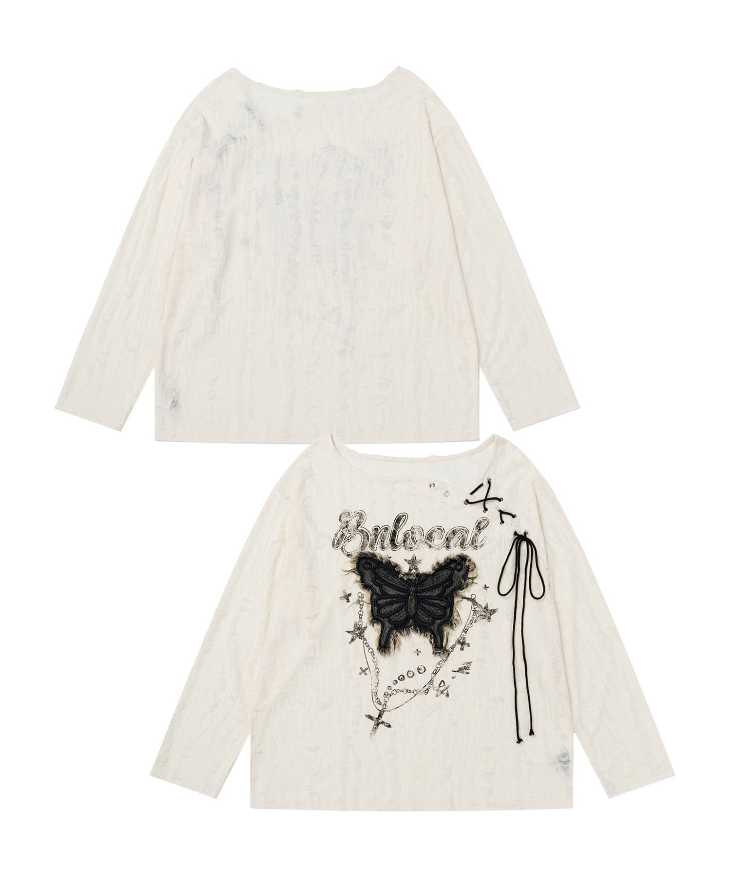 リボンディテールたっぷりのロゴ刺繍入りガーリーロンT。