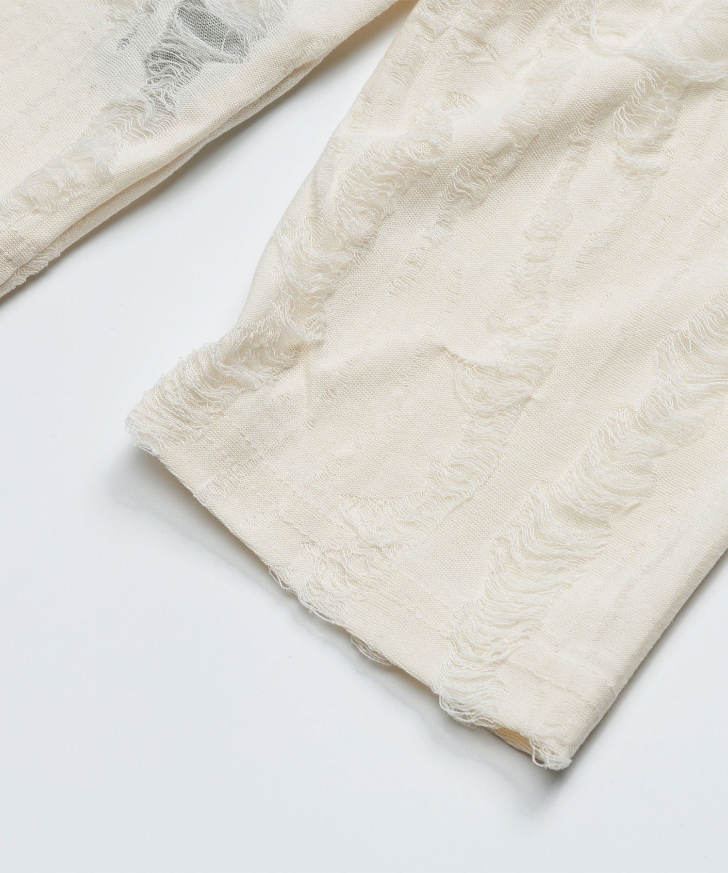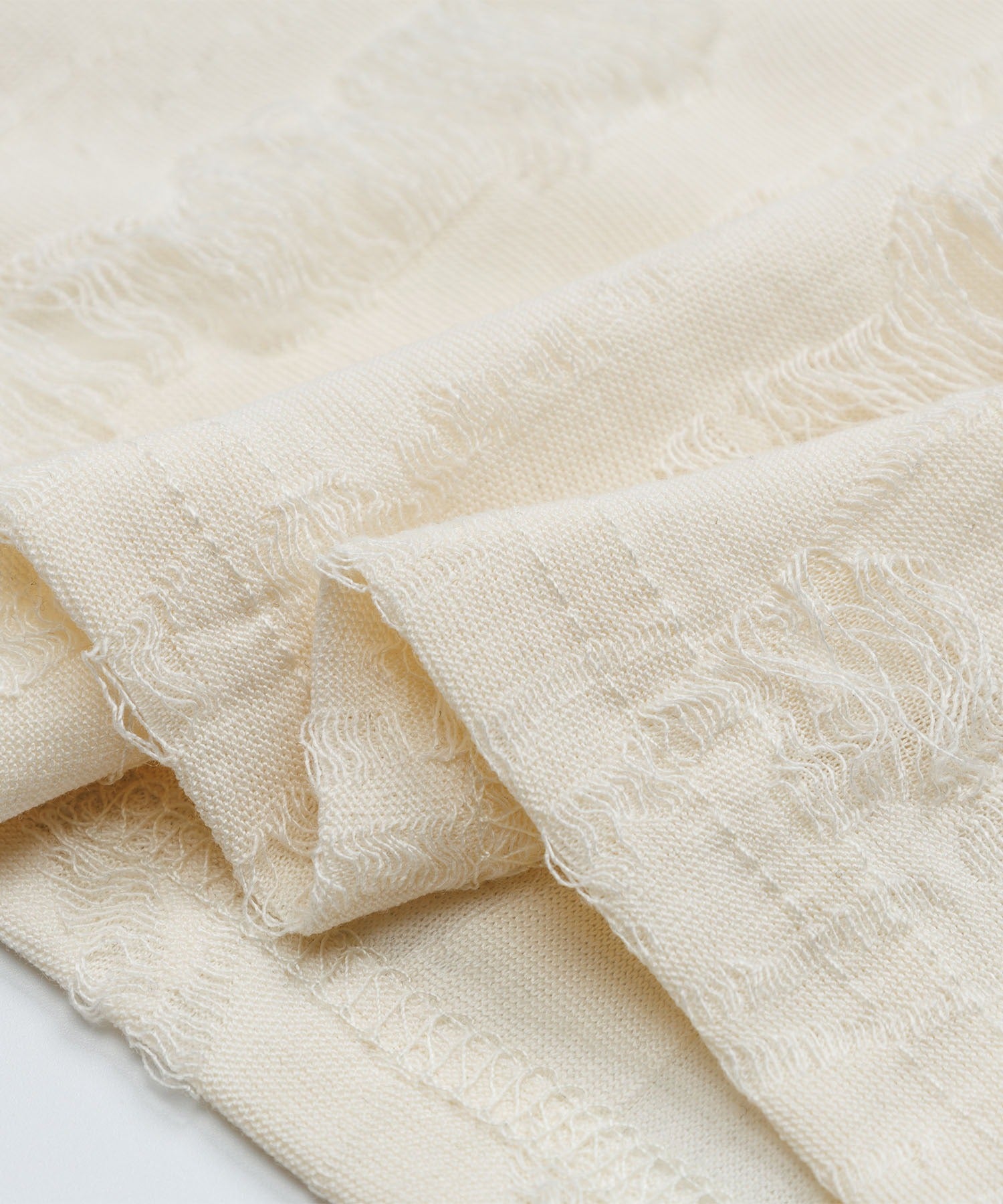 ネックラインには繊細なレースが施され、着るだけで大人ガーリーな雰囲気が漂います。