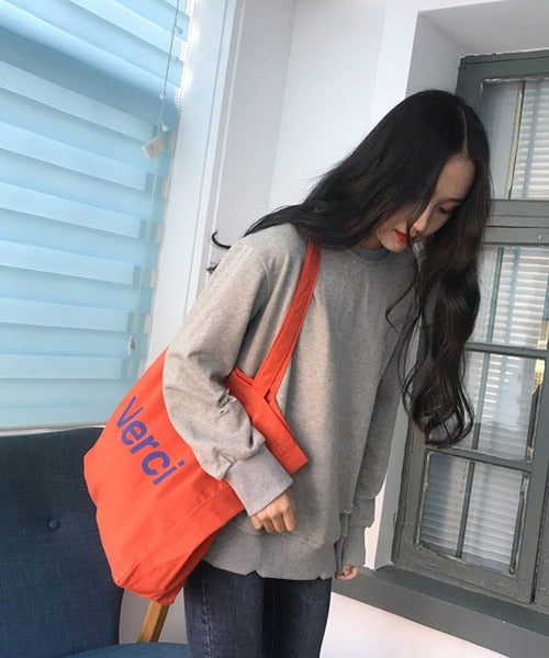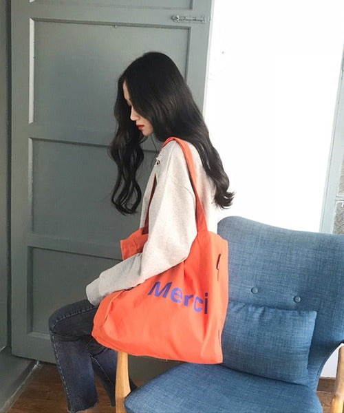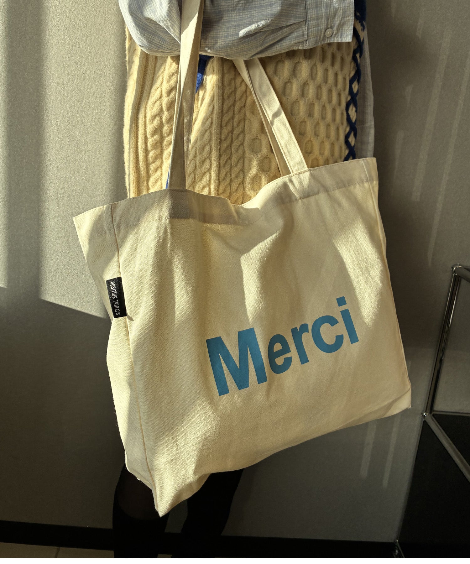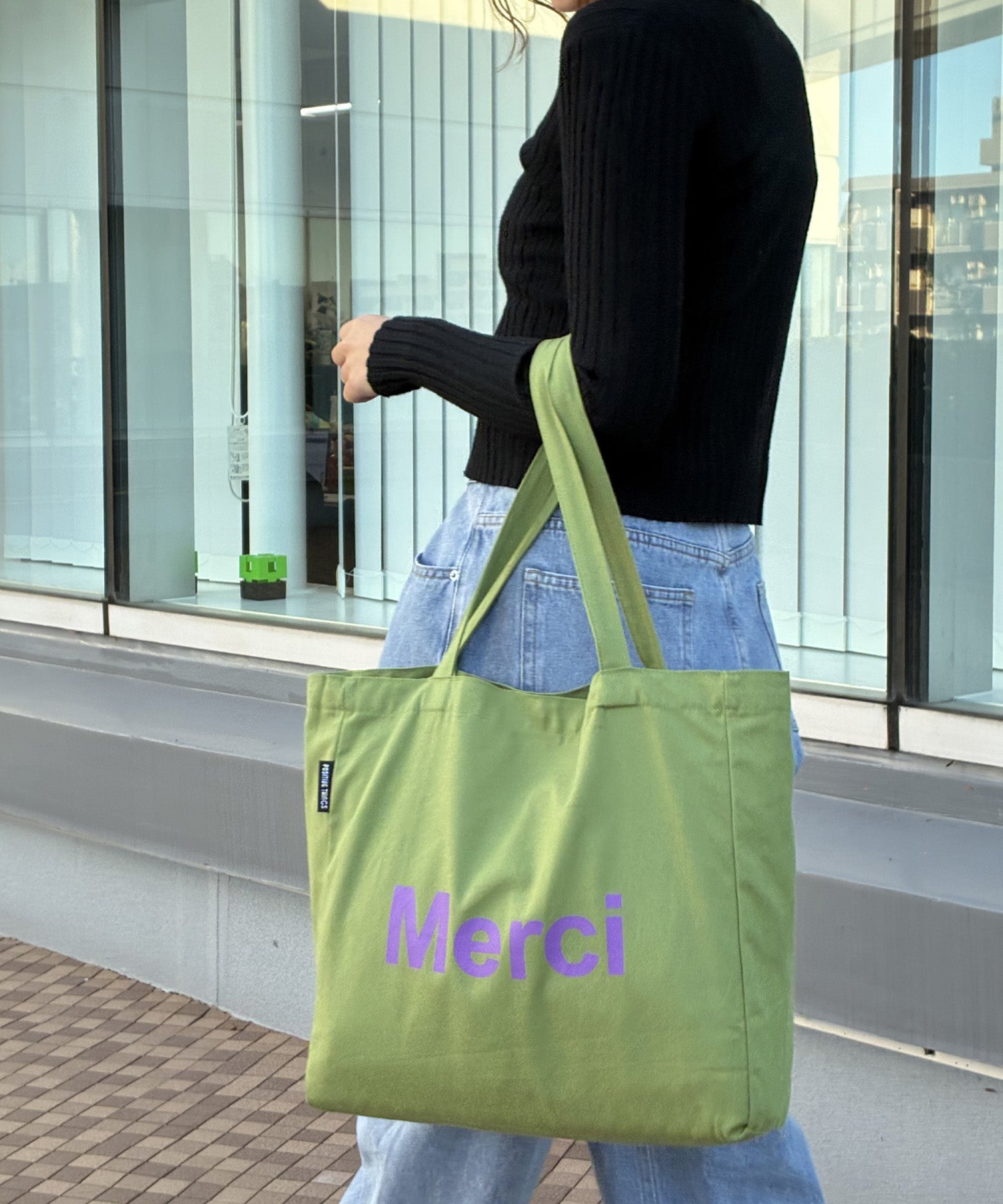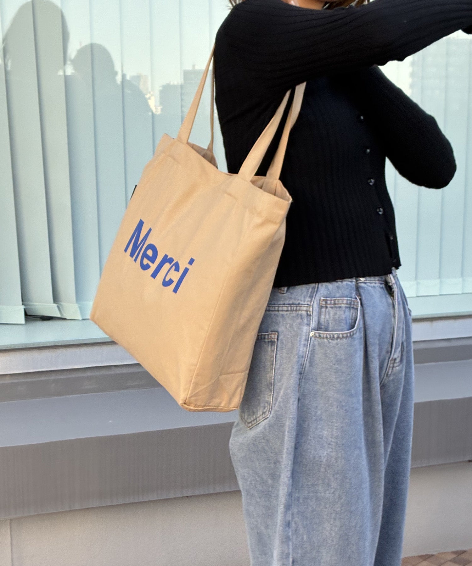 キャンバス素材にMerciロゴが入った可愛いキャンバストート。