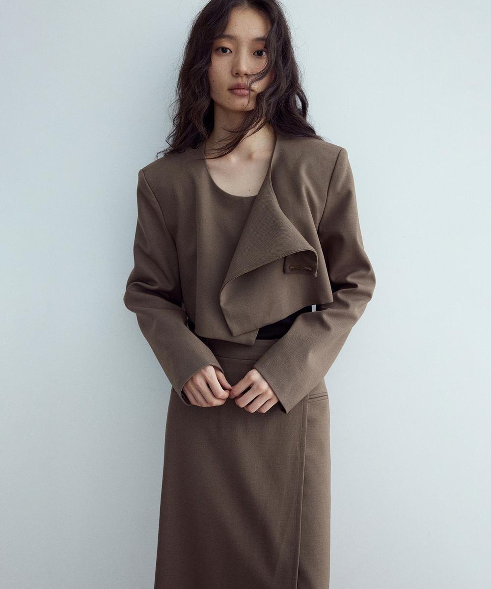 DECADE CLASSIC アシンメトリー ノンカラークロップド丈 ジャケット