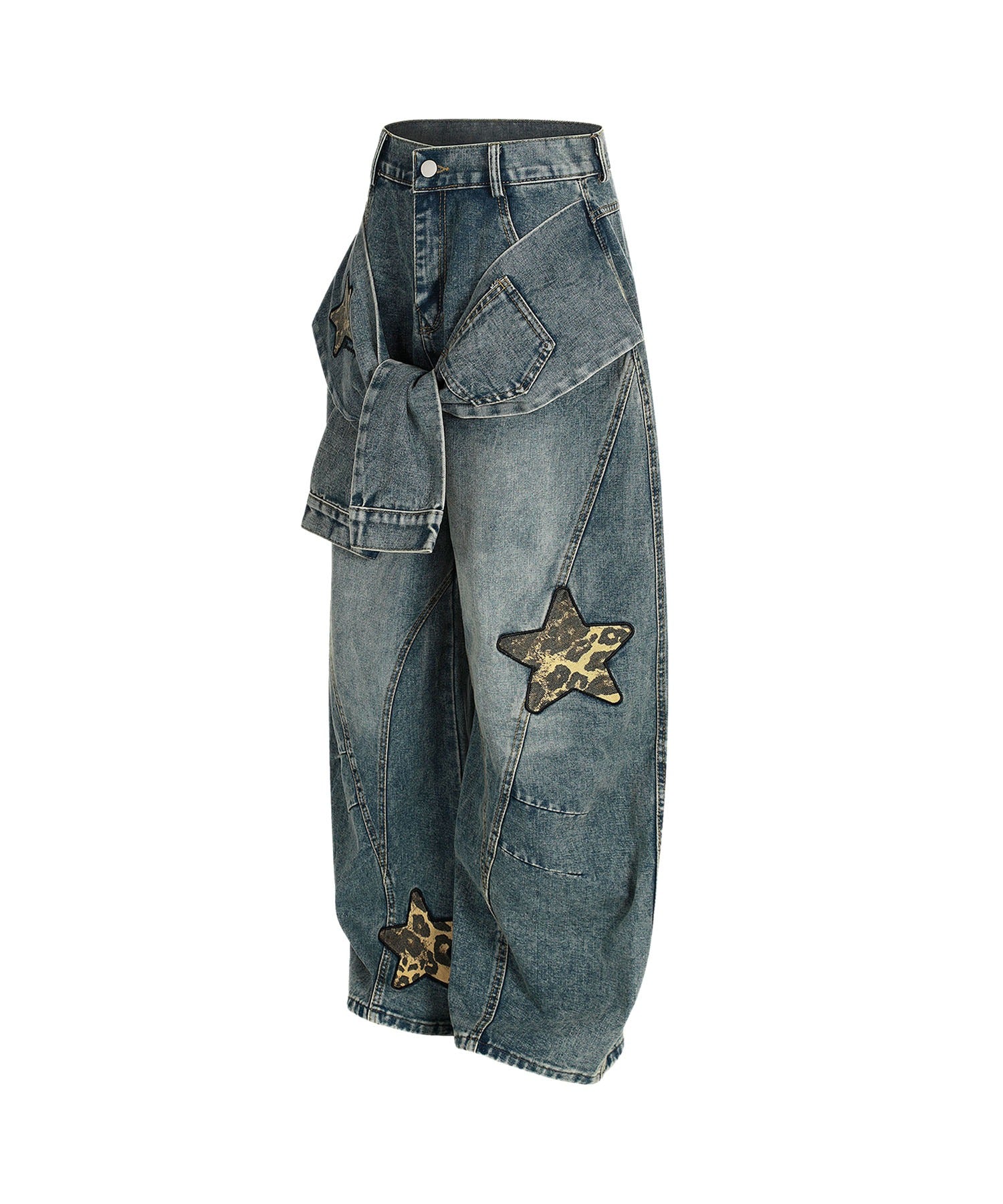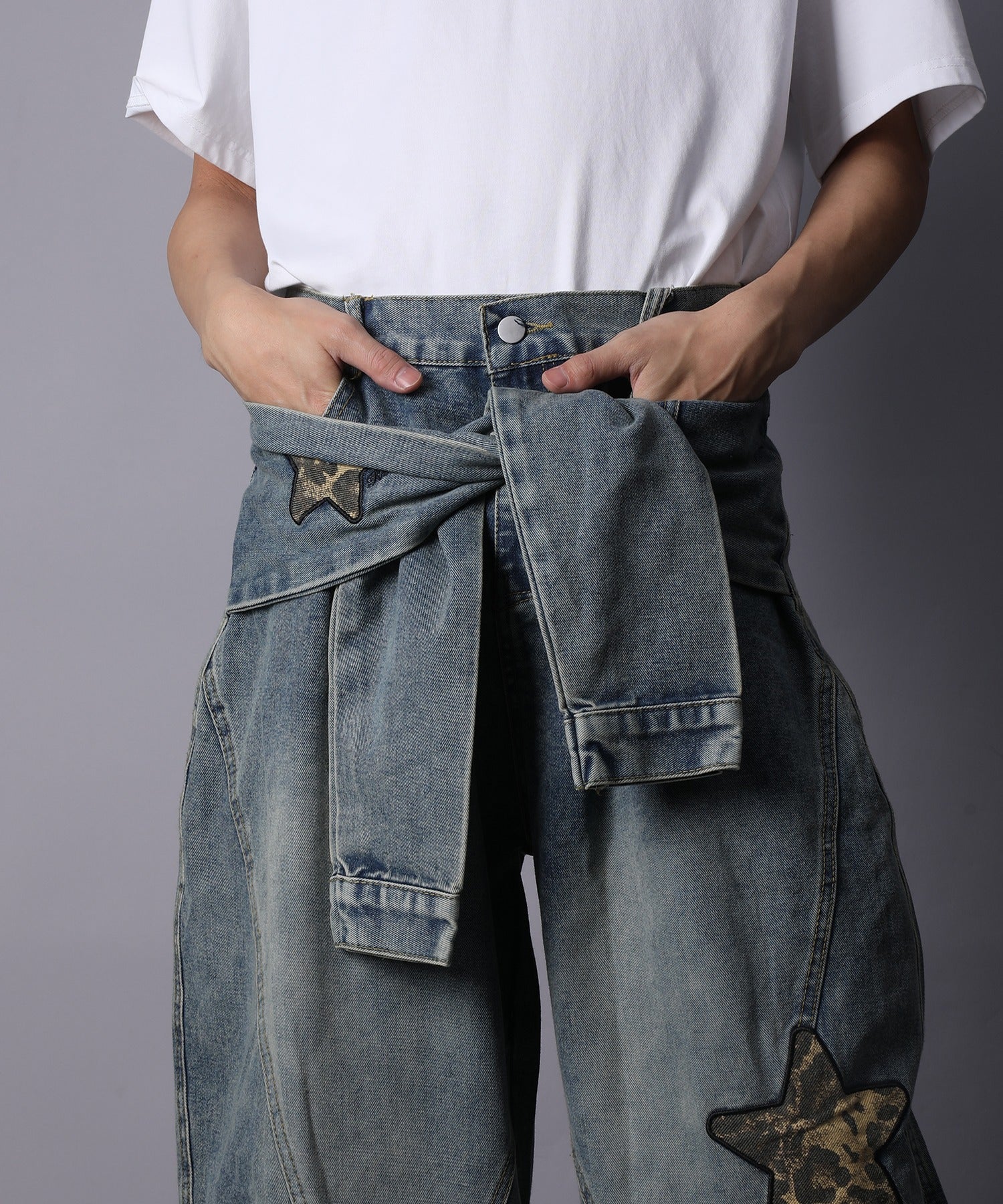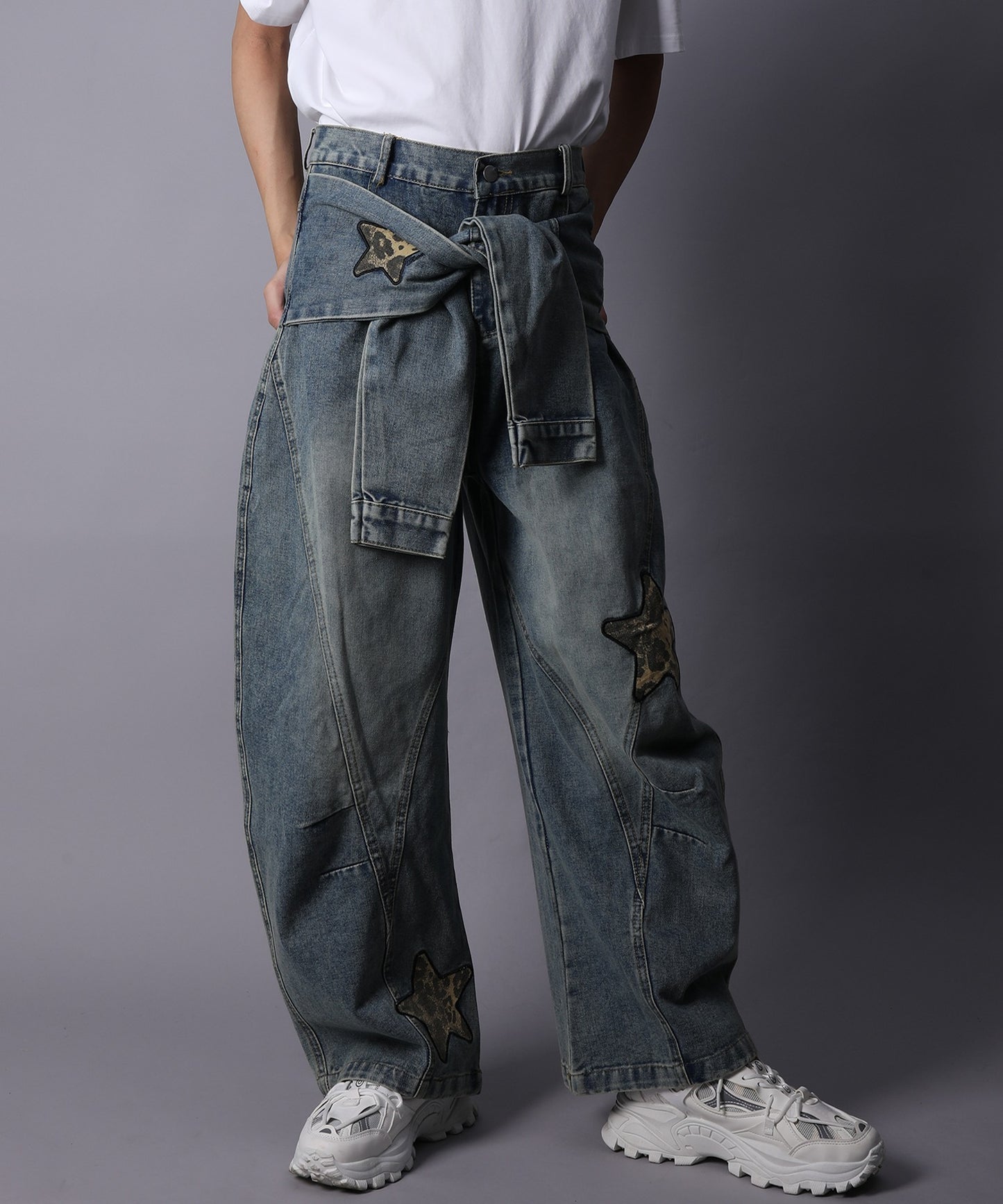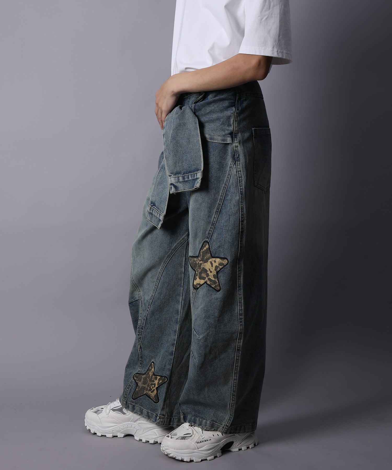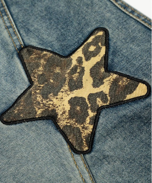 大胆なレオパード柄のスターワッペンをあしらった、存在感抜群のデニムパンツ。