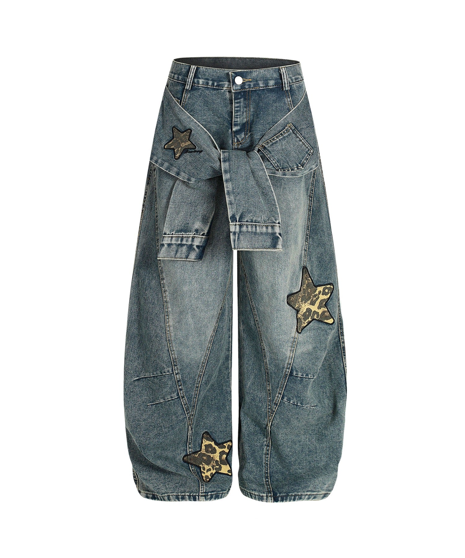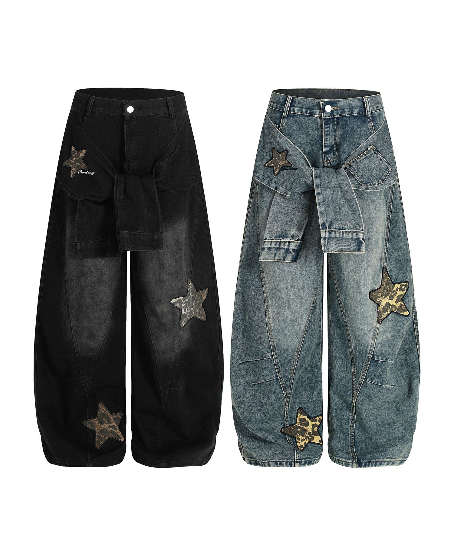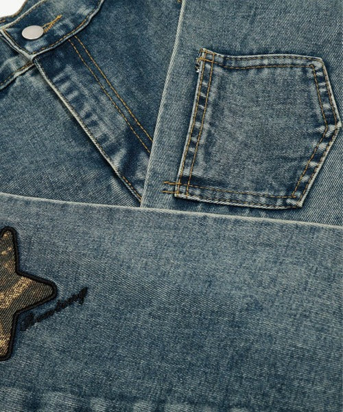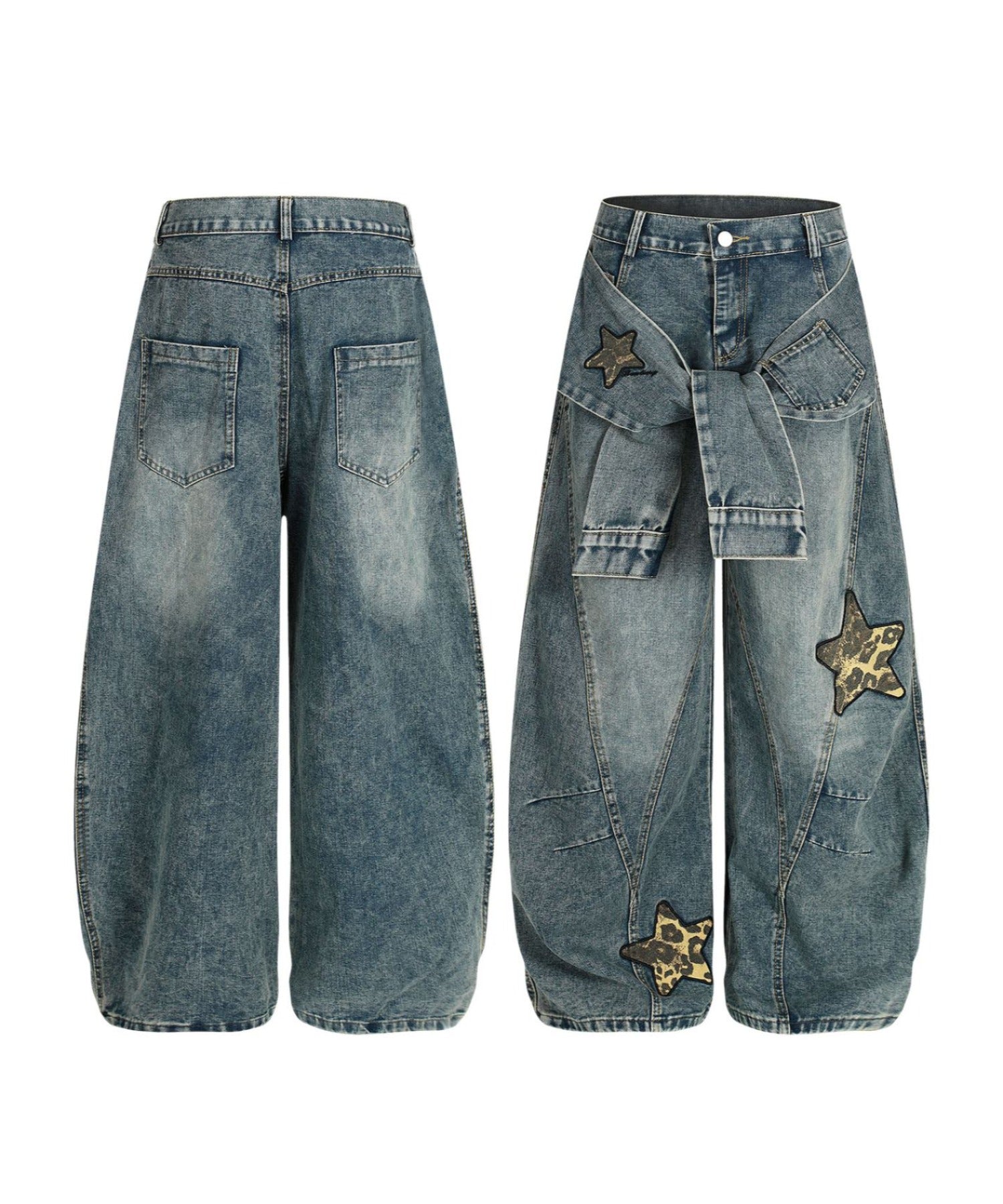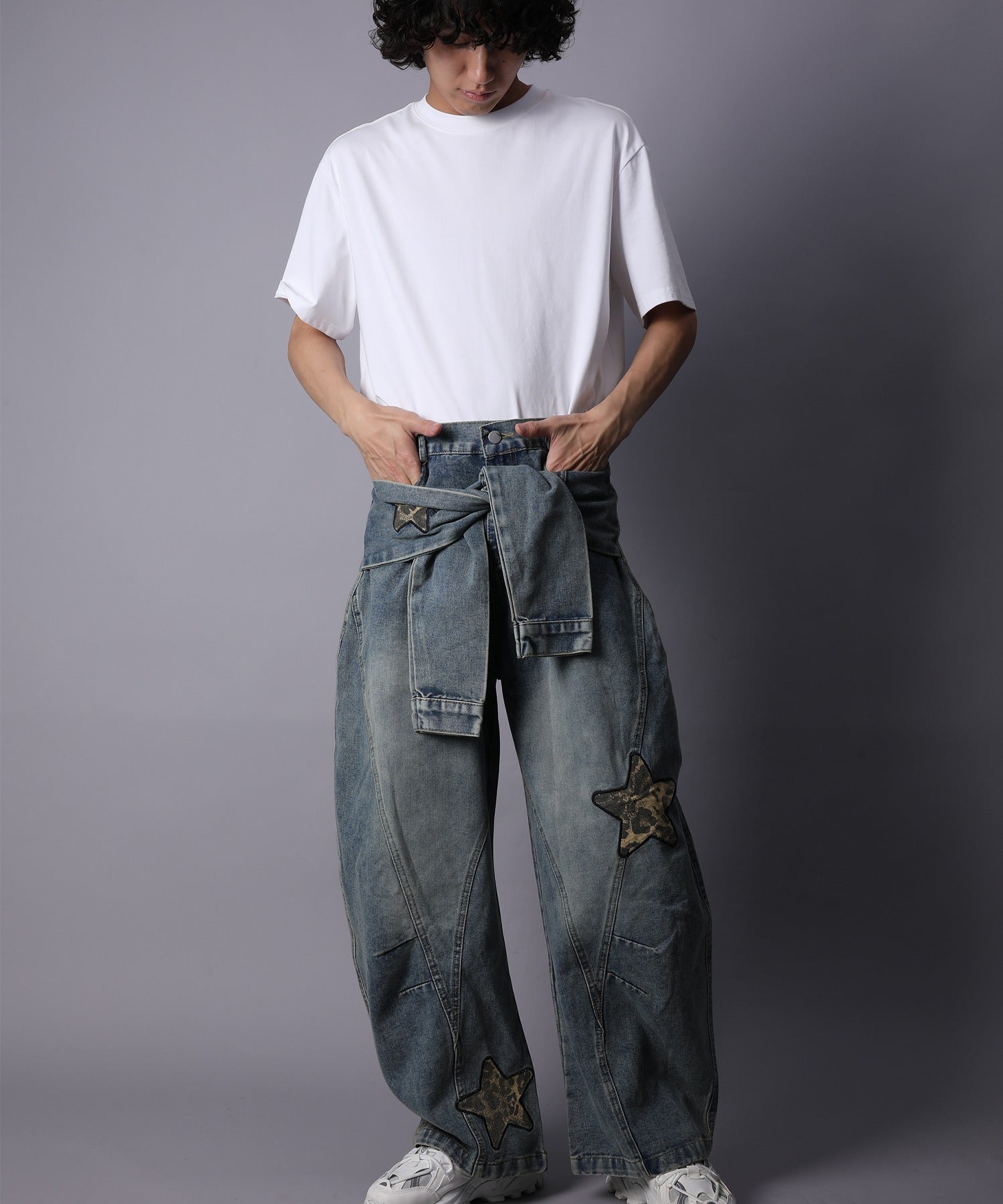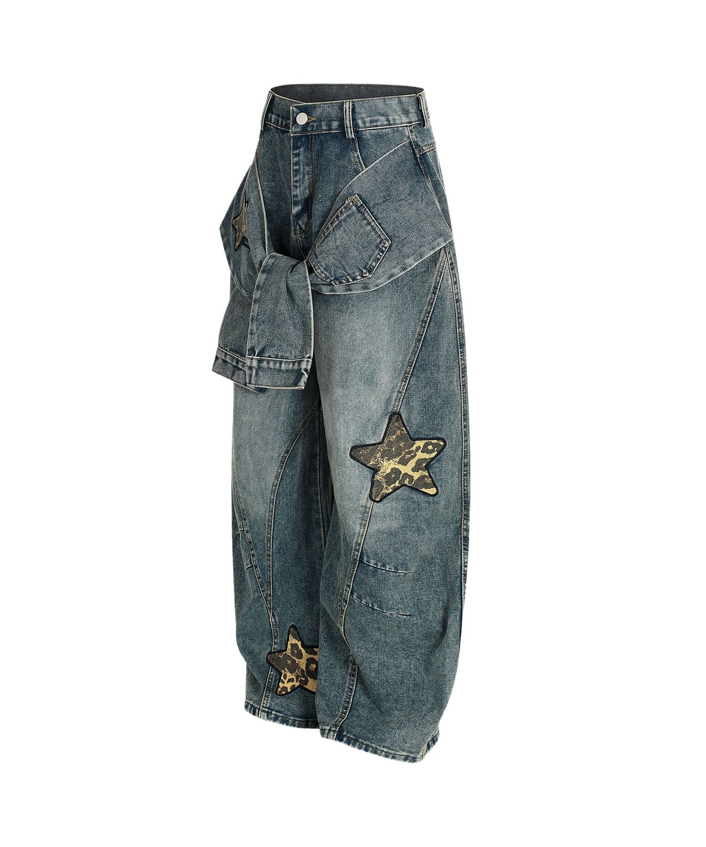 大胆なレオパード柄のスターワッペンをあしらった、存在感抜群のデニムパンツ。