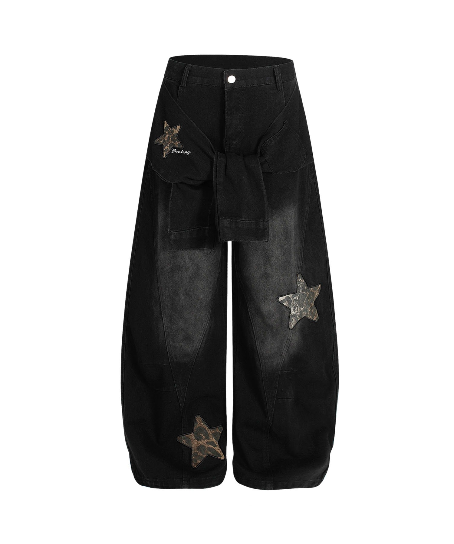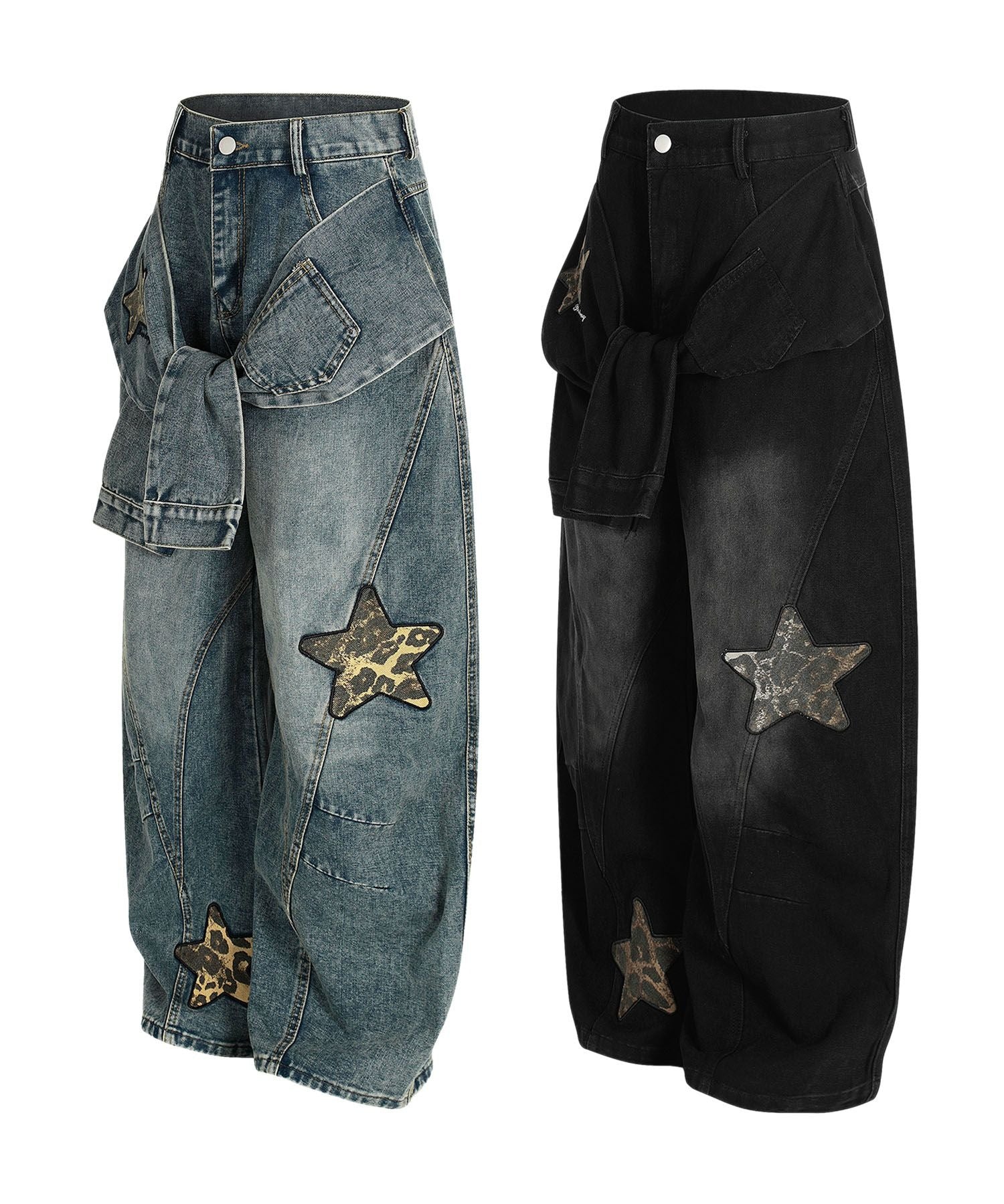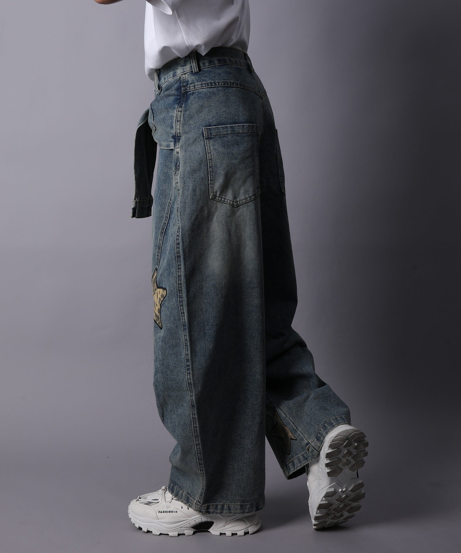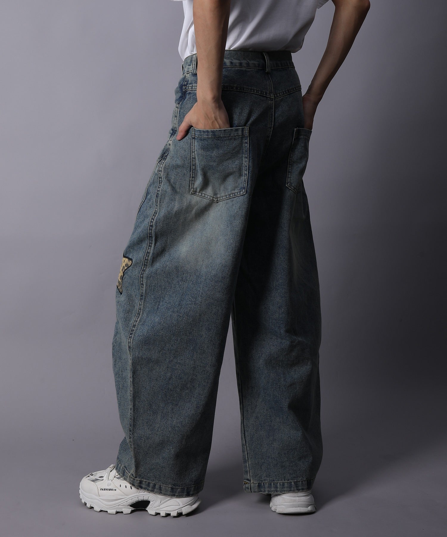 大胆なレオパード柄のスターワッペンをあしらった、存在感抜群のデニムパンツ。