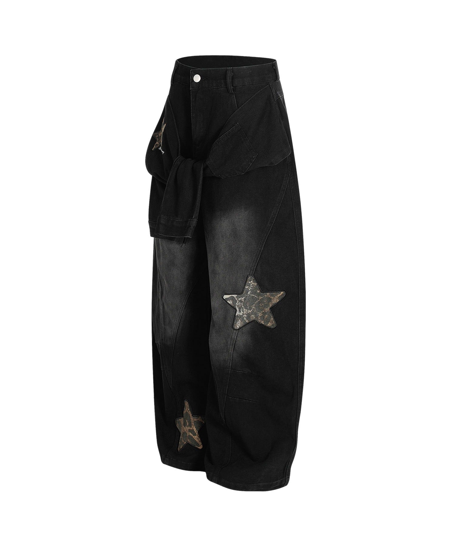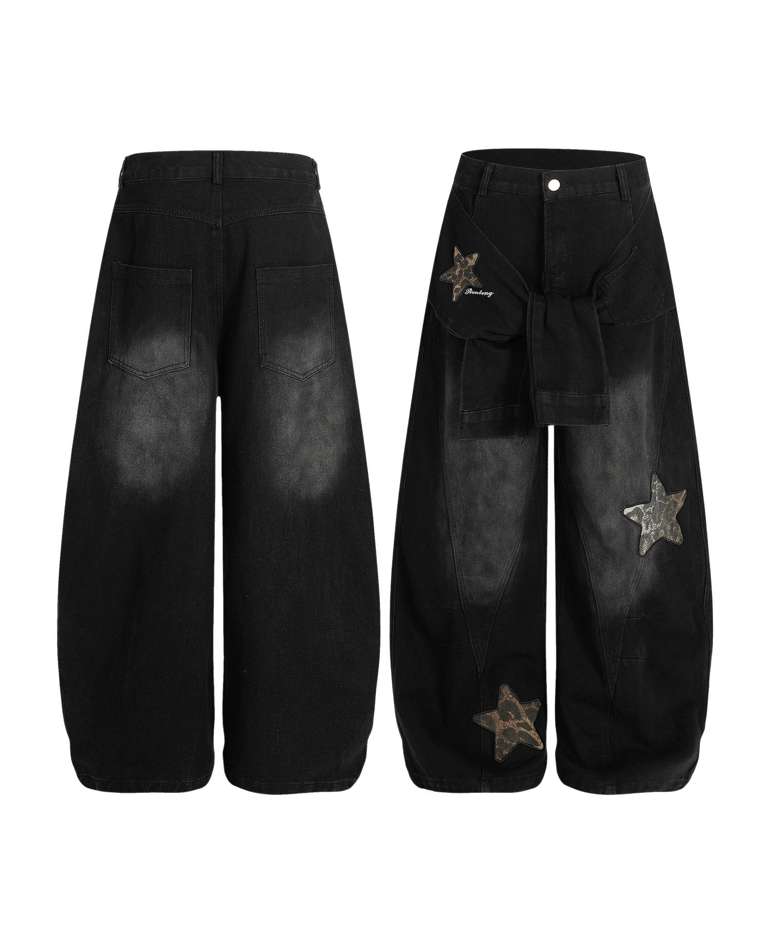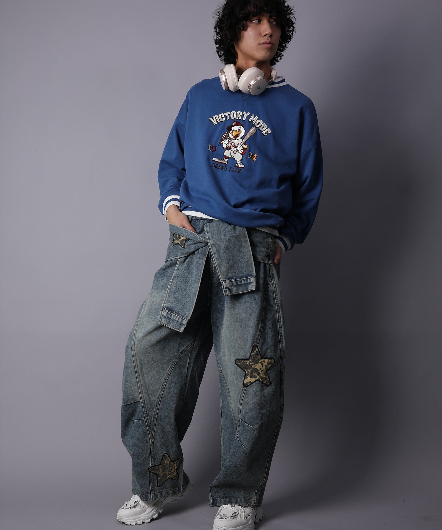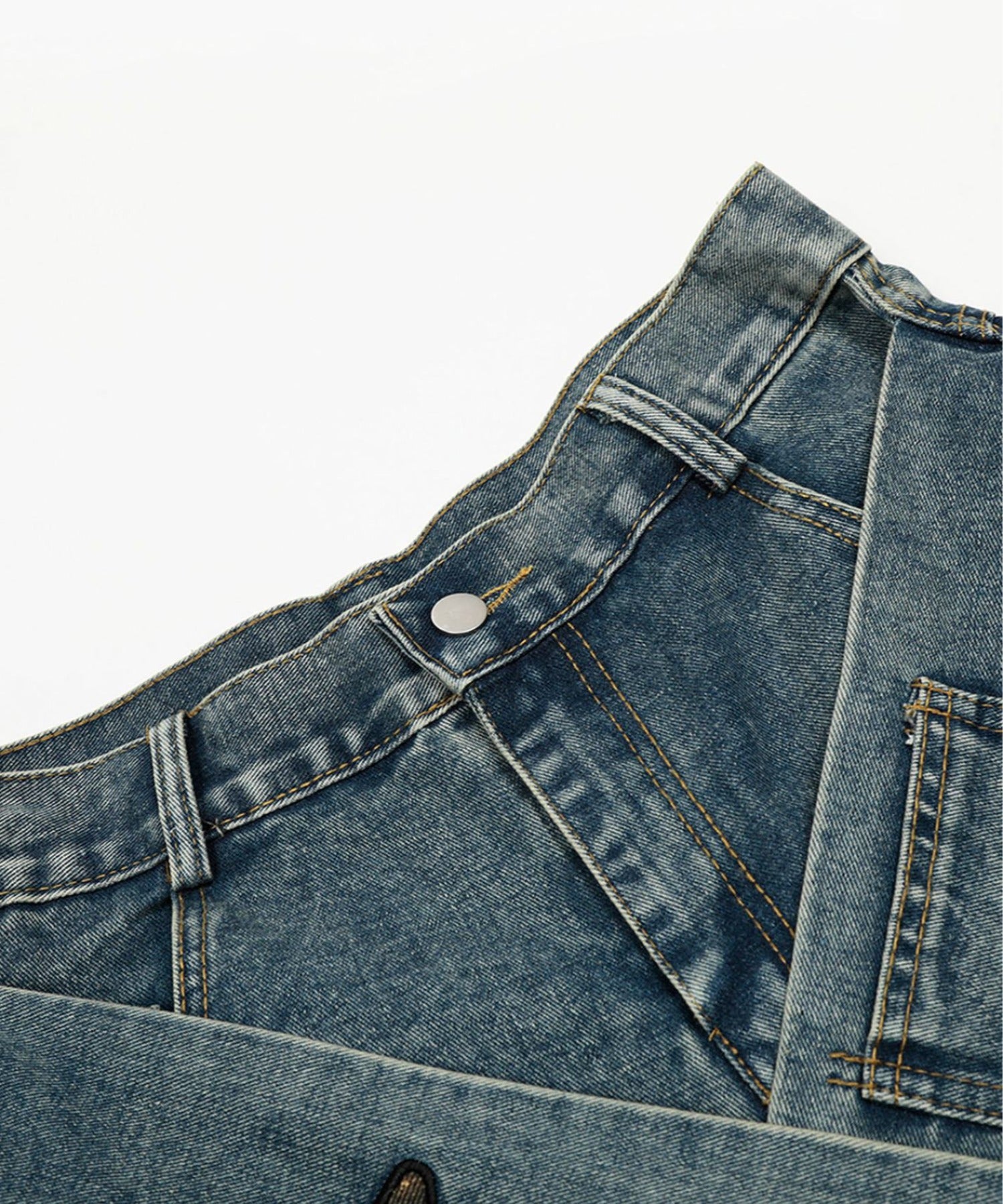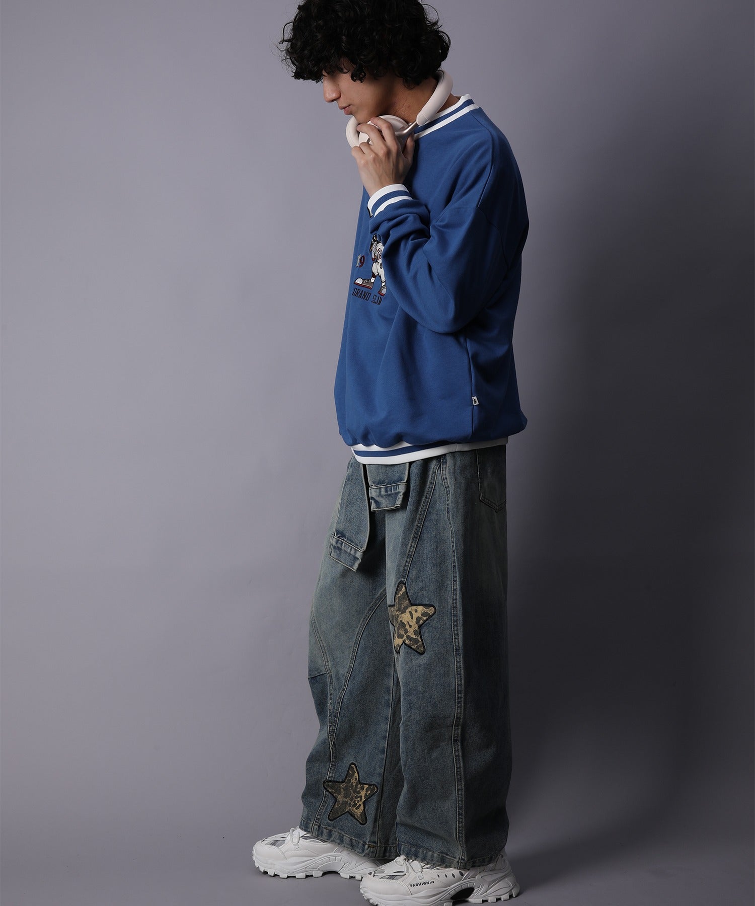 大胆なレオパード柄のスターワッペンをあしらった、存在感抜群のデニムパンツ。