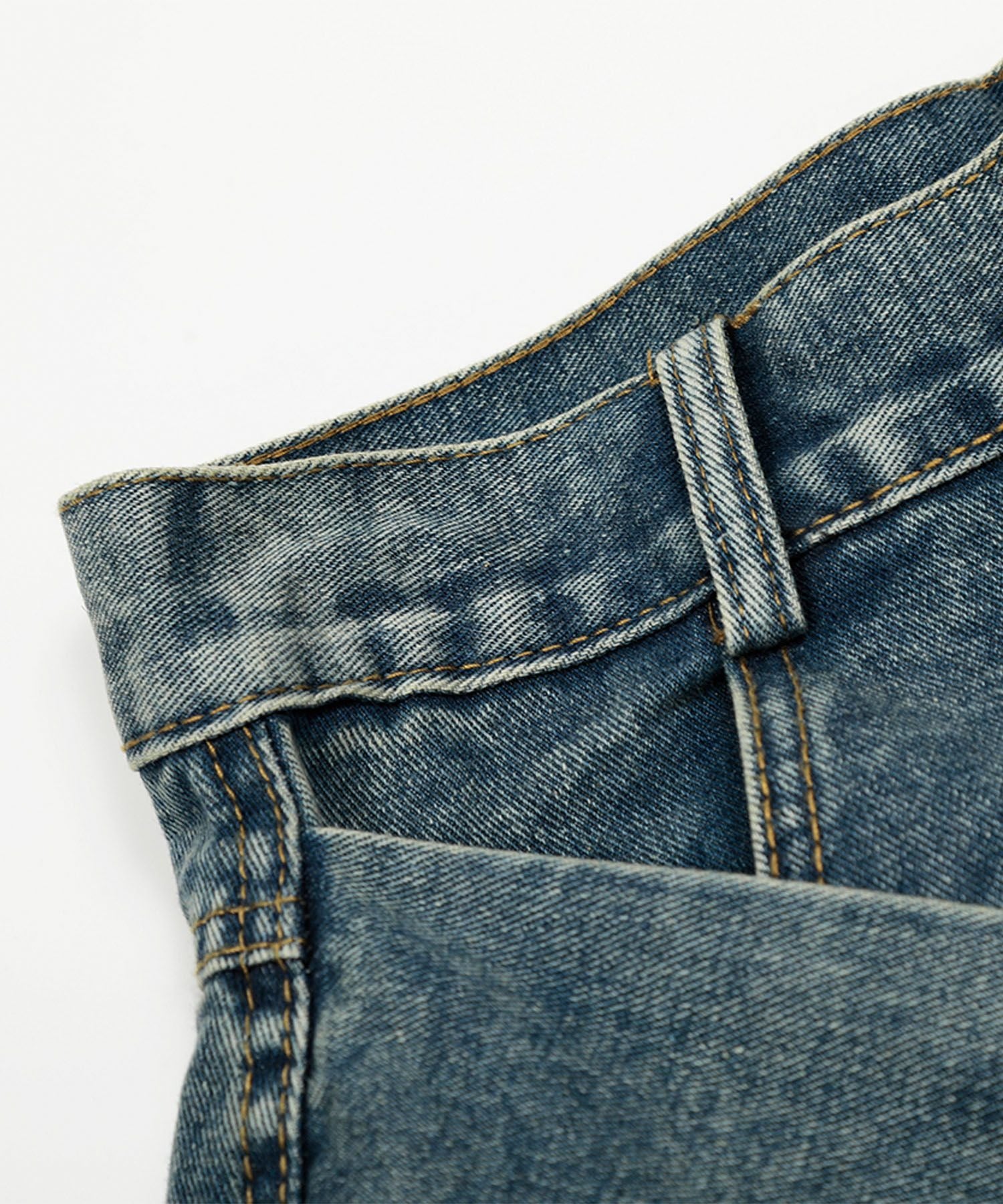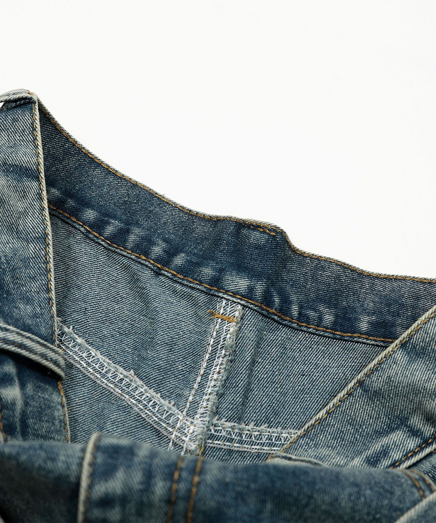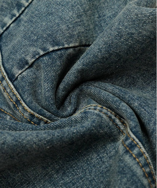 トレンド感のあるカーブシルエット。緩やかなカーブラインが上半身をすっきりと見せてくれるスタイルアップ効果がうれしい。色落ち加工でヴィンテージ風味もあるのがポイント。