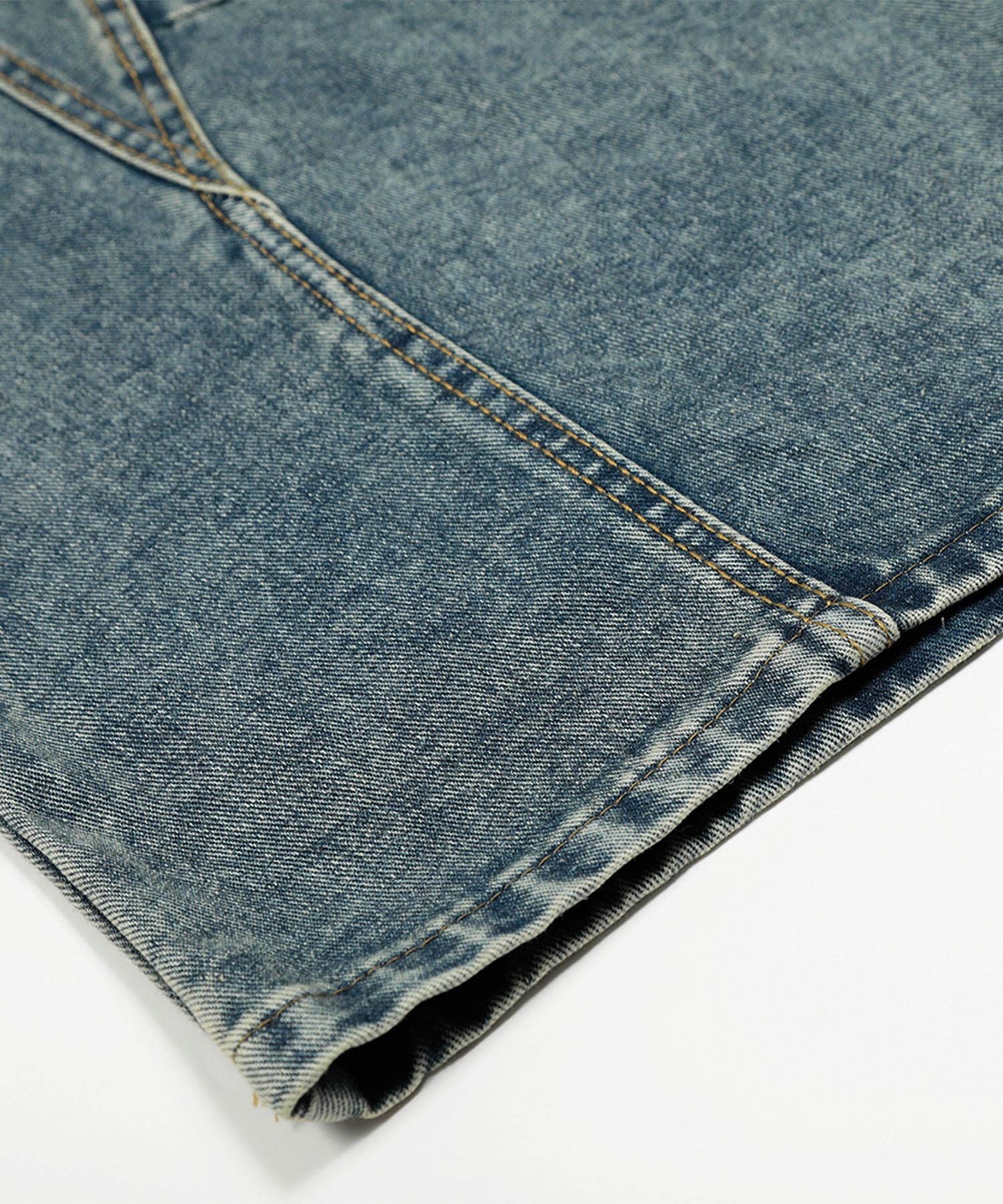 シンプルな無地Tシャツやタンクトップと合わせて、デニムのデザインを主役に。