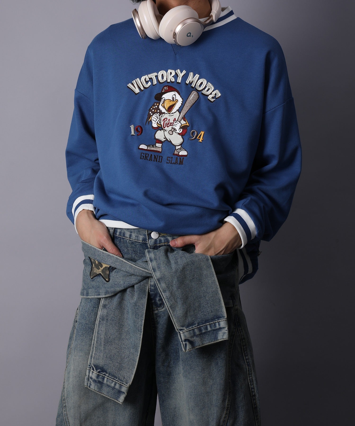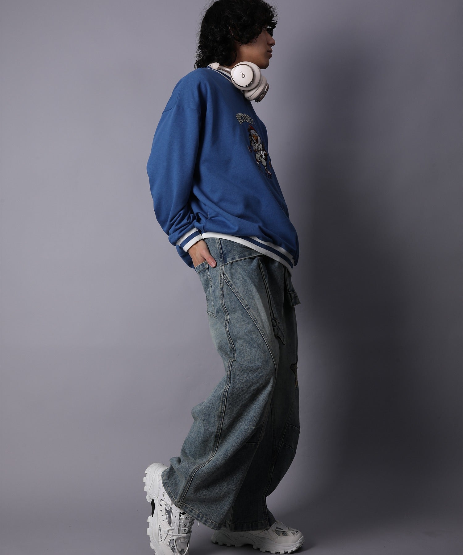 オーバーサイズのスウェットやパーカーをプラスすれば、ストリートライクな雰囲気に。