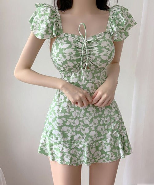 レトロな花柄がかわいいワンピースタイプの水着です。ワンピースのようなデザインはラフに着用できます。気になるお腹周りもカバーできるのは嬉しいポイントです。