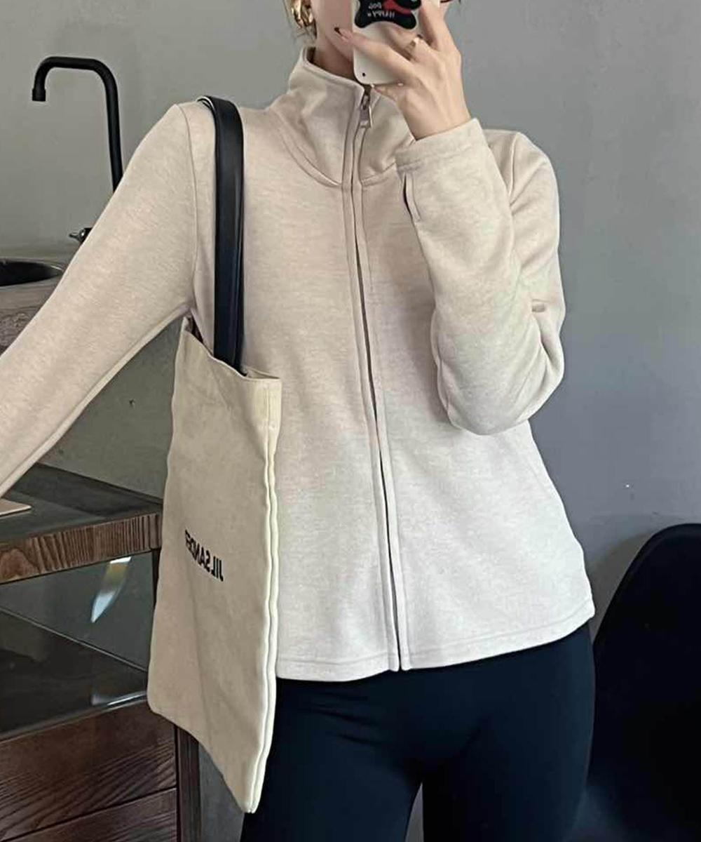 シンプルでスタイリッシュなデザインのハイネックジップアップカーディガン。体のラインを美しく見せるフィット感のあるシルエットが特徴です。ハイネック仕様で首元を暖かく保ちます。どんなシーンにも対応できる万能アイテムです。