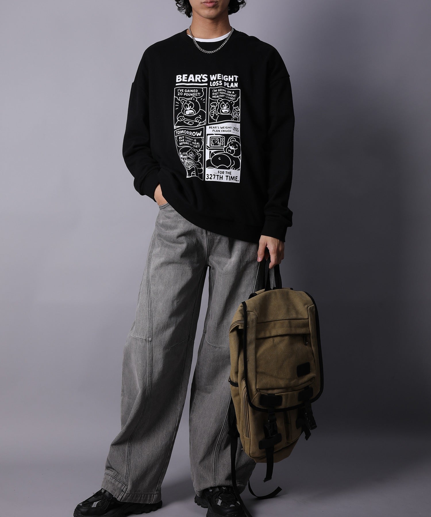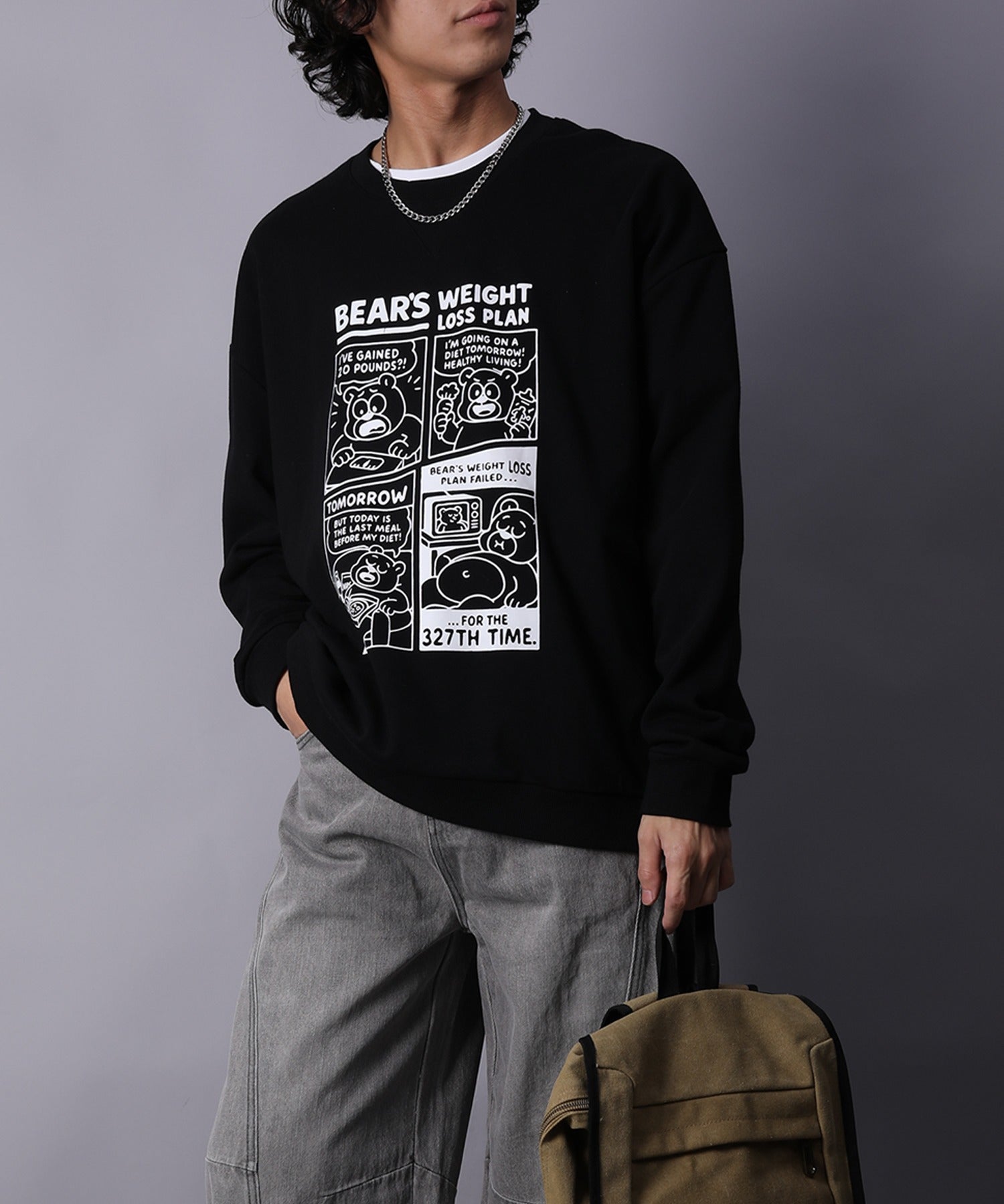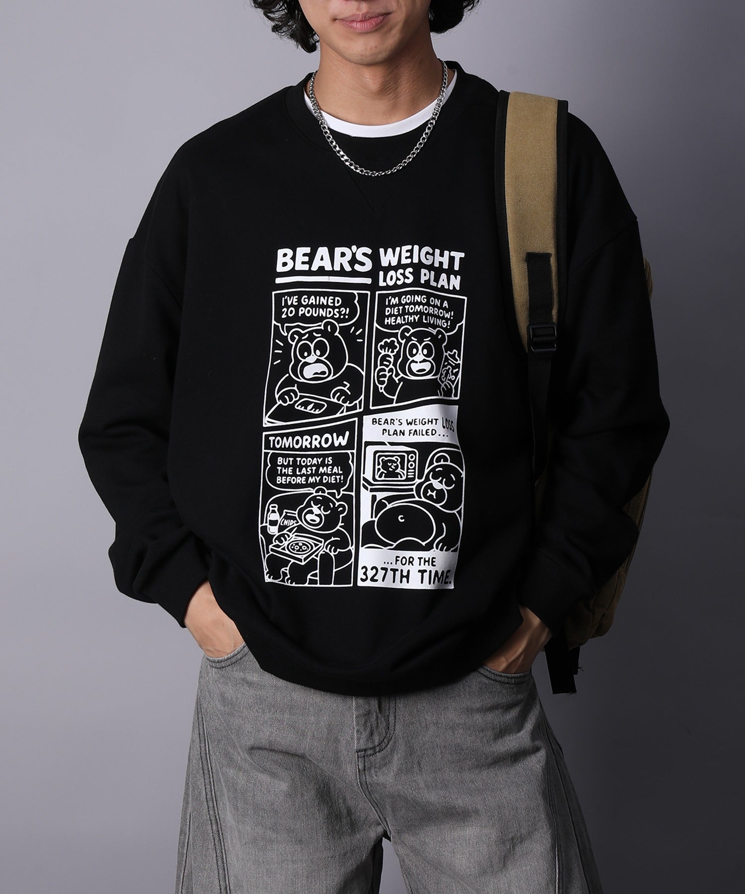 HOOK -original- 「BEAR’S WEIGHT LOSS PLAN」コミックプリント スウェット