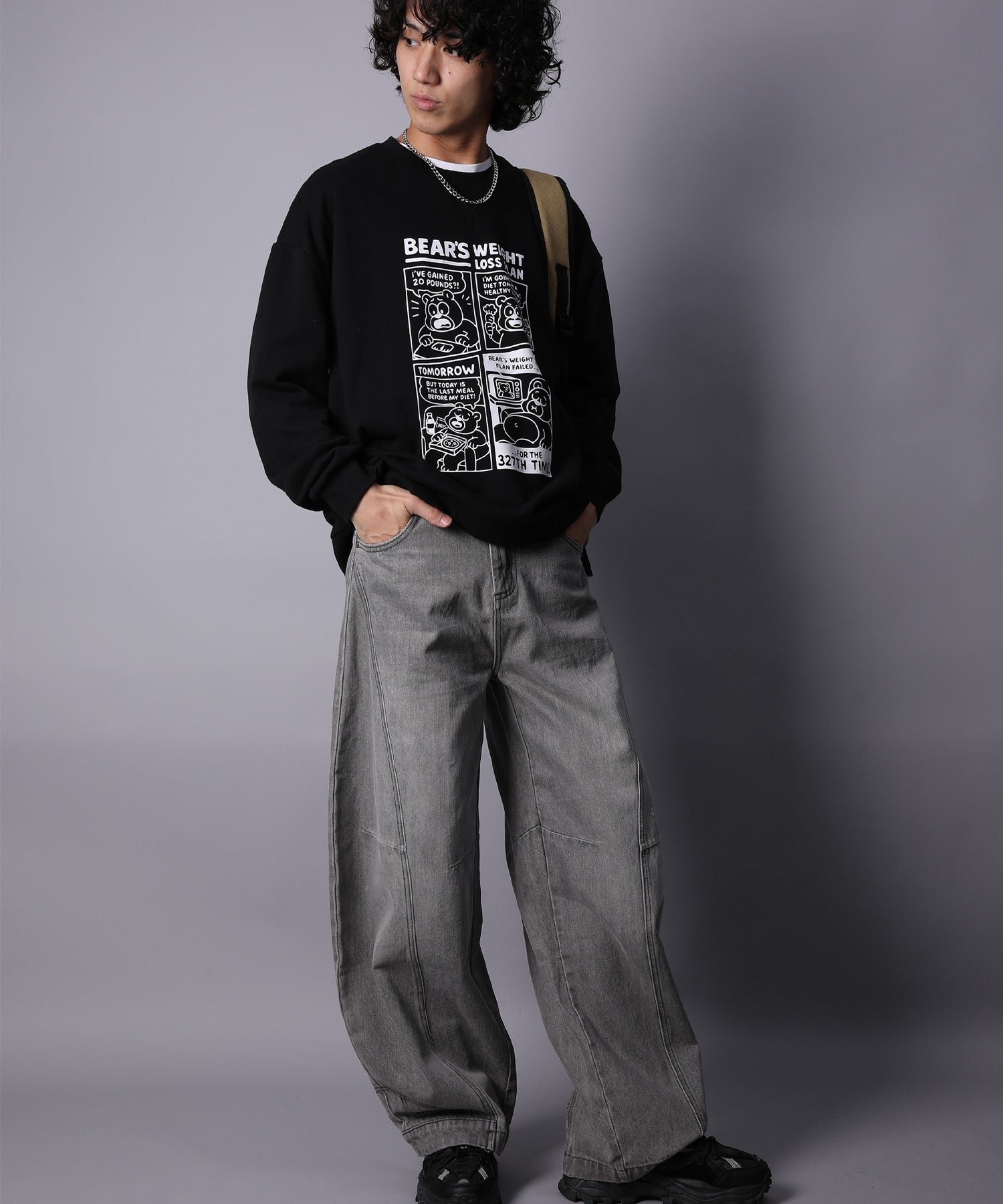 フロントに大きく描かれたベアのコミックプリントがインパクト抜群なスウェット。