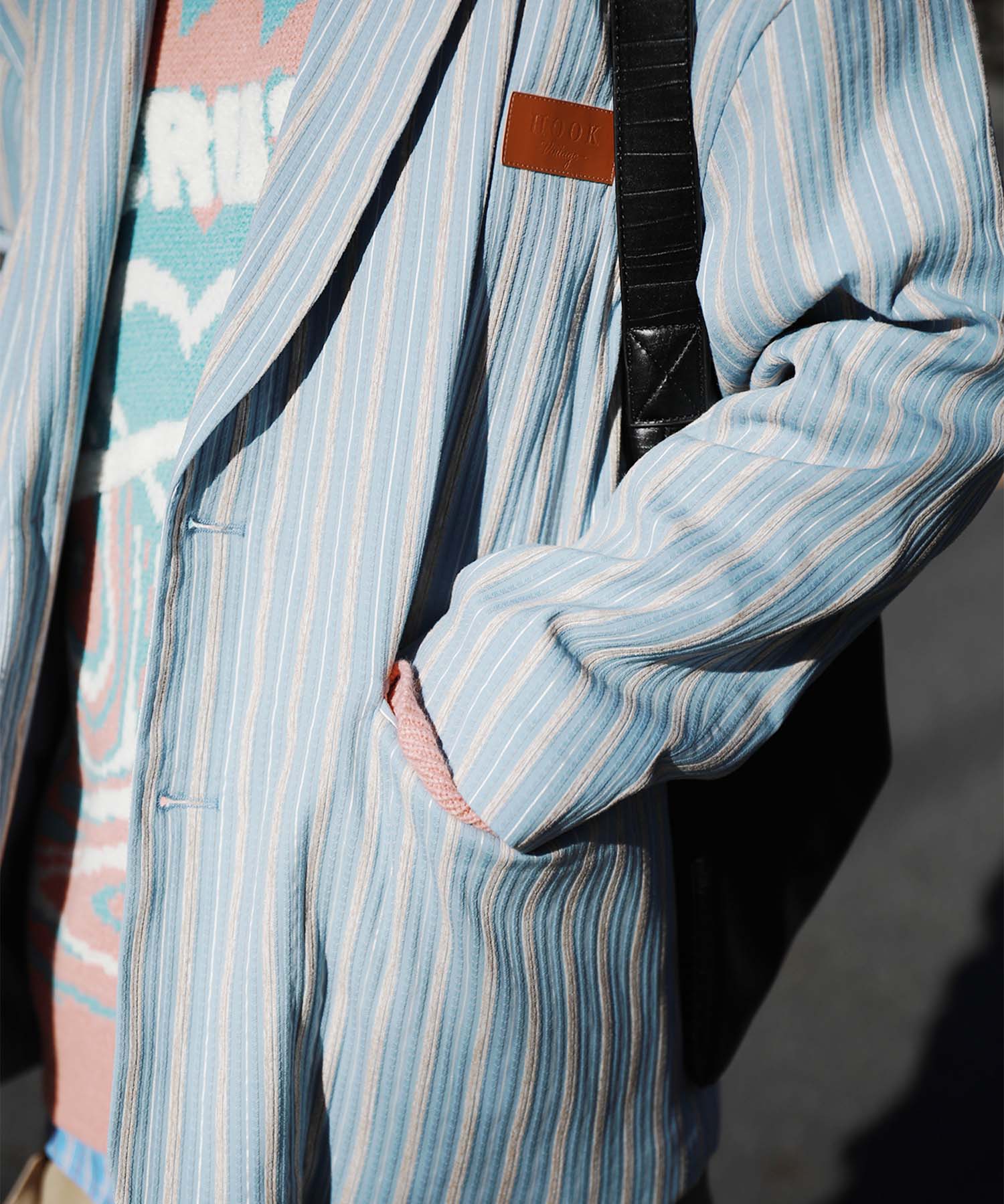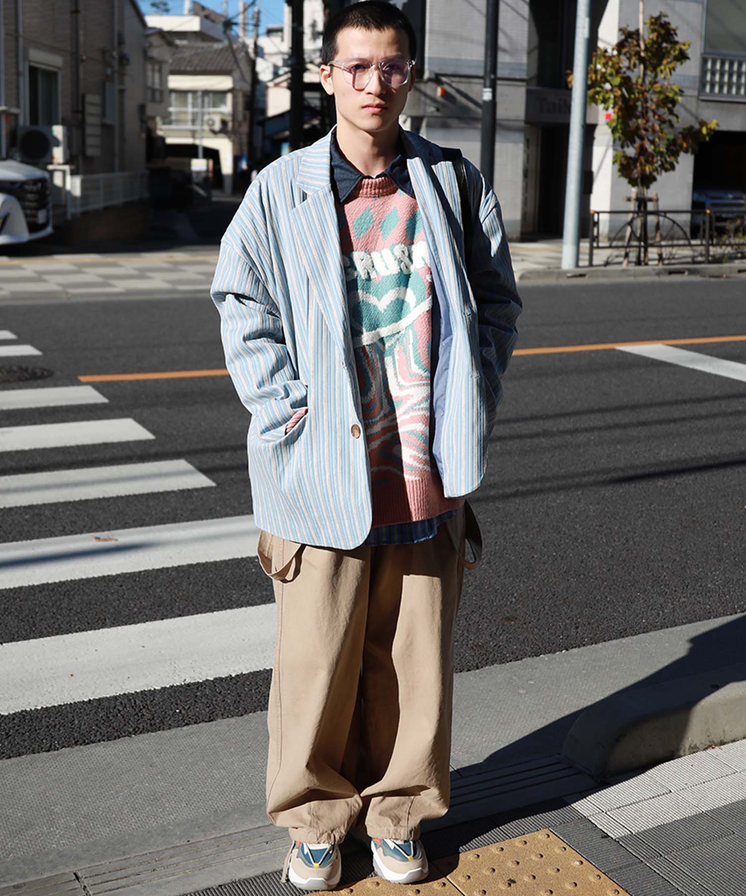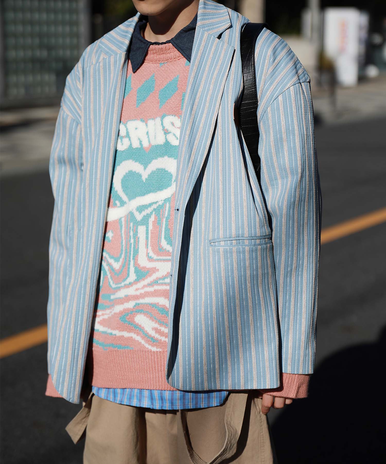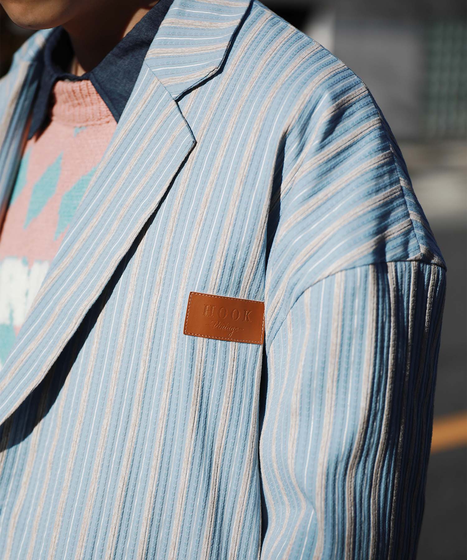 トレンド感のあるオーバーサイズシルエットがこなれた雰囲気漂うテーラードジャケット。立体感のある生地がクラシカルなムードを醸し出し、レトロなストライプ柄との組み合わせが絶妙なバランスを生み出します。
