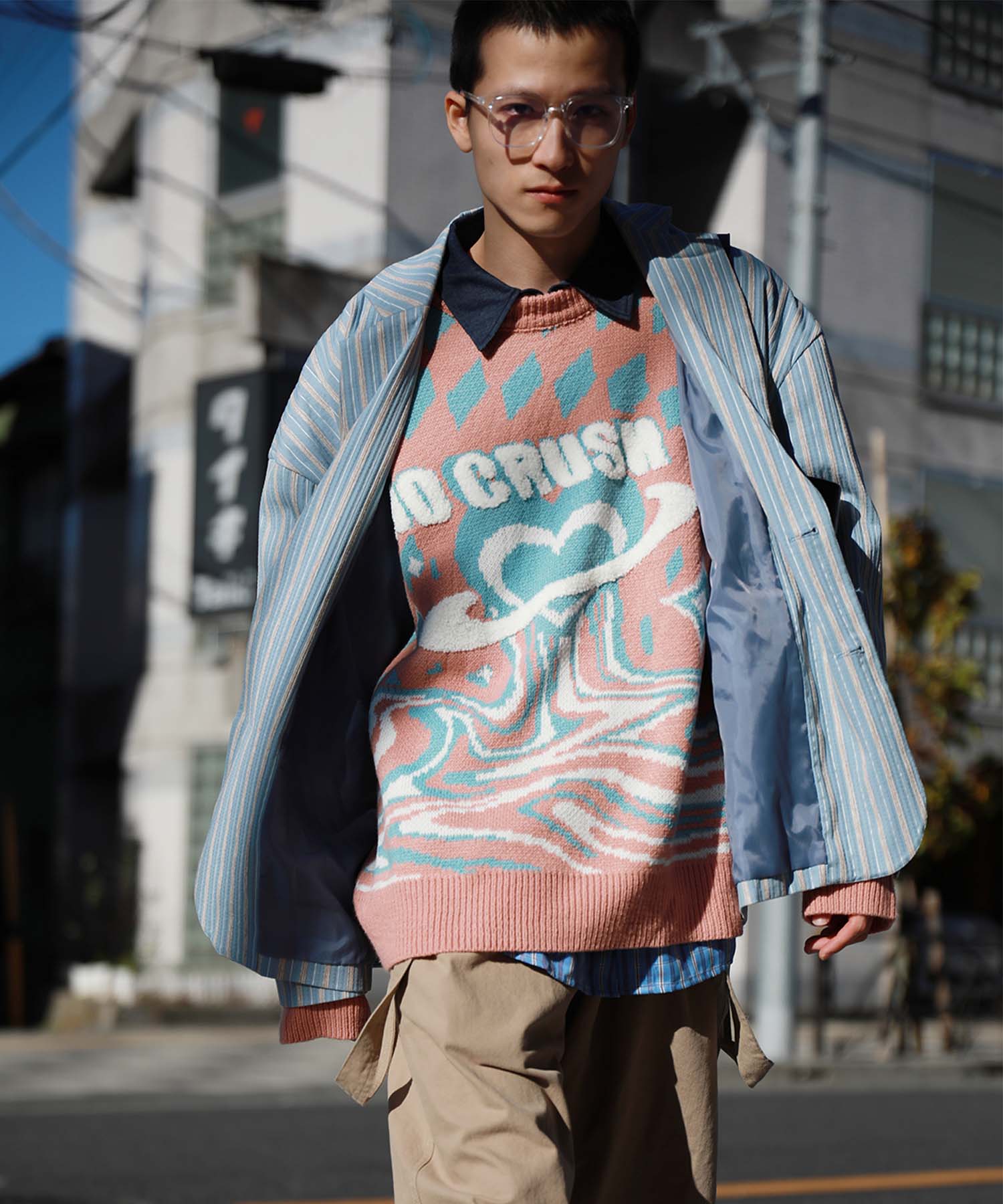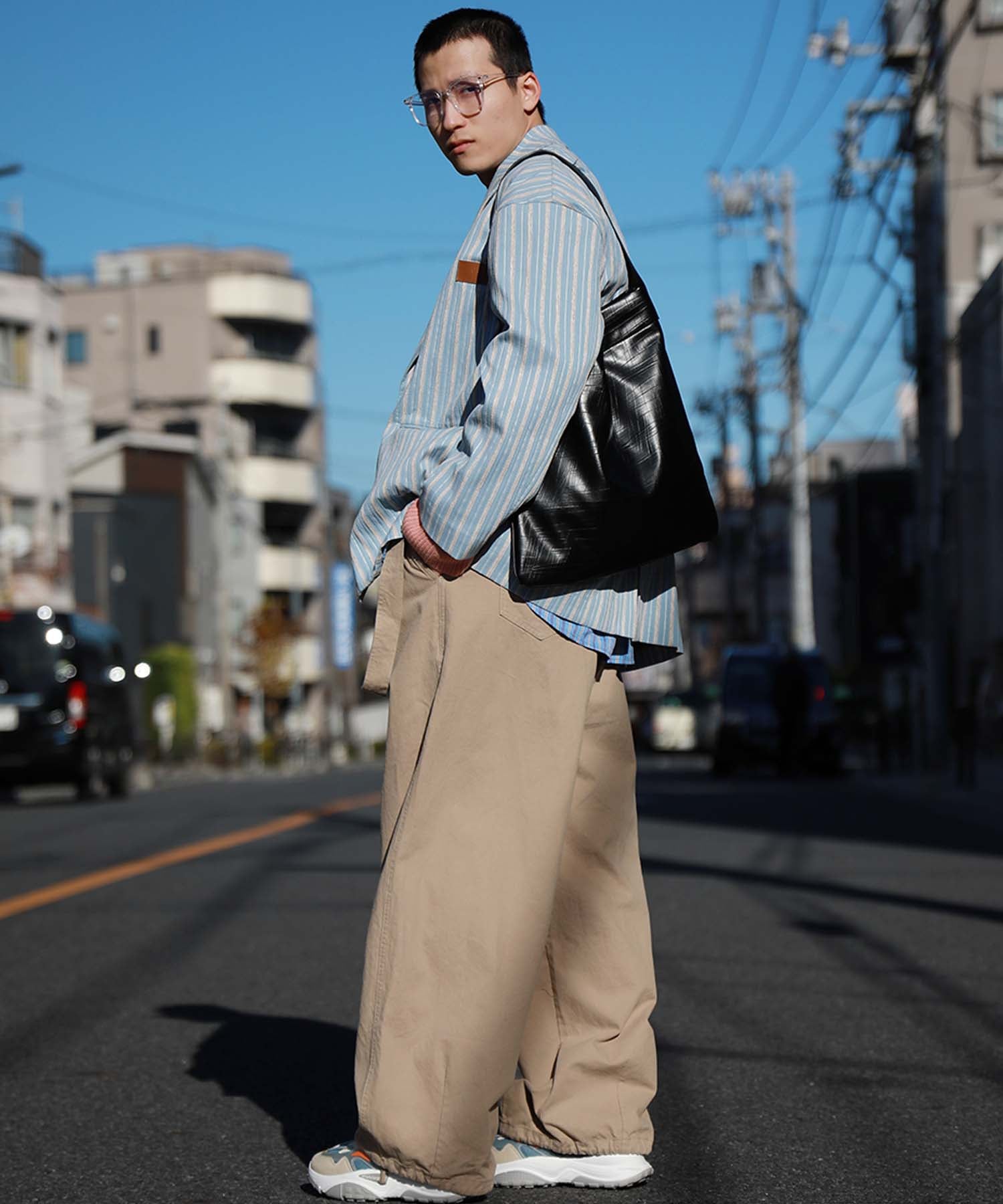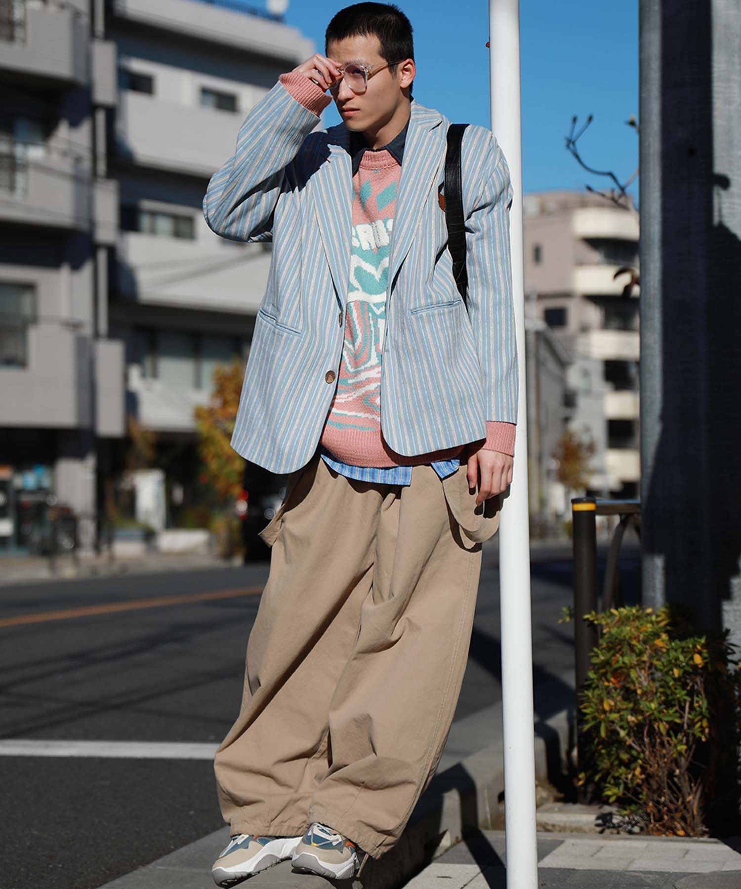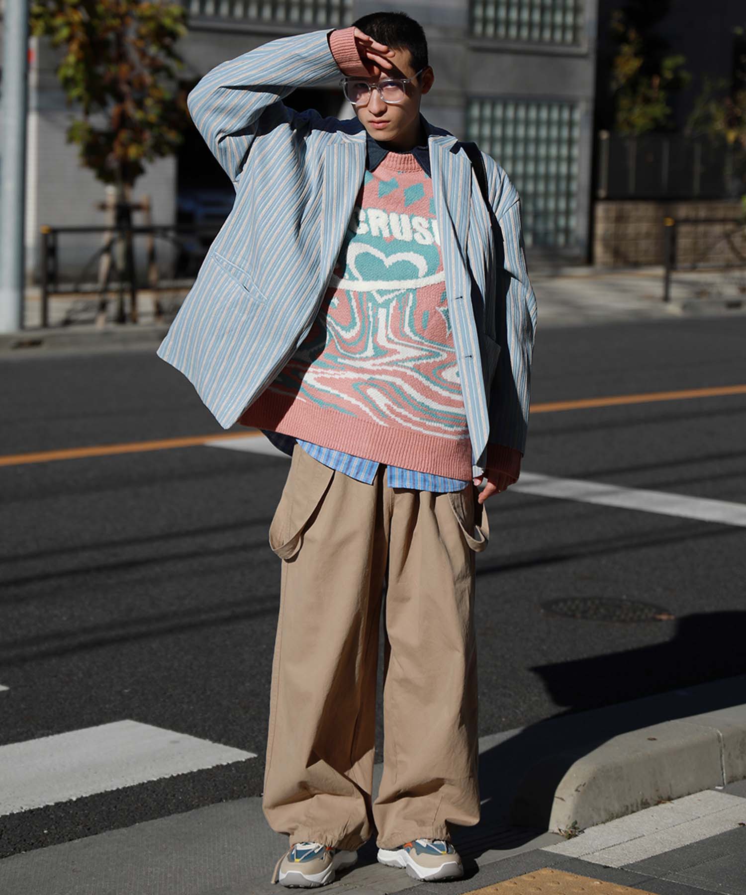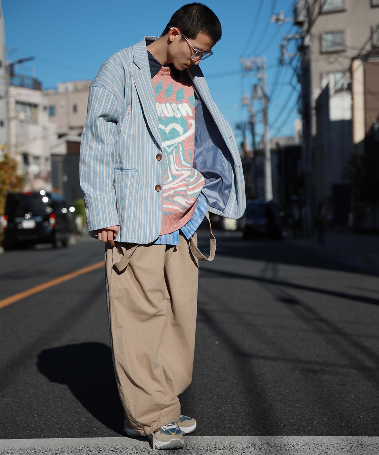 トレンド感のあるオーバーサイズシルエットがこなれた雰囲気漂うテーラードジャケット。立体感のある生地がクラシカルなムードを醸し出し、レトロなストライプ柄との組み合わせが絶妙なバランスを生み出します。