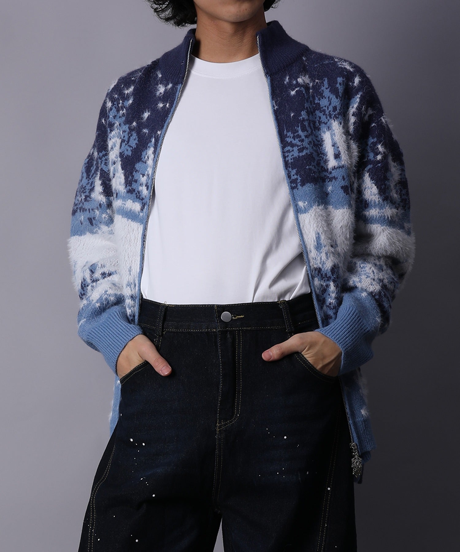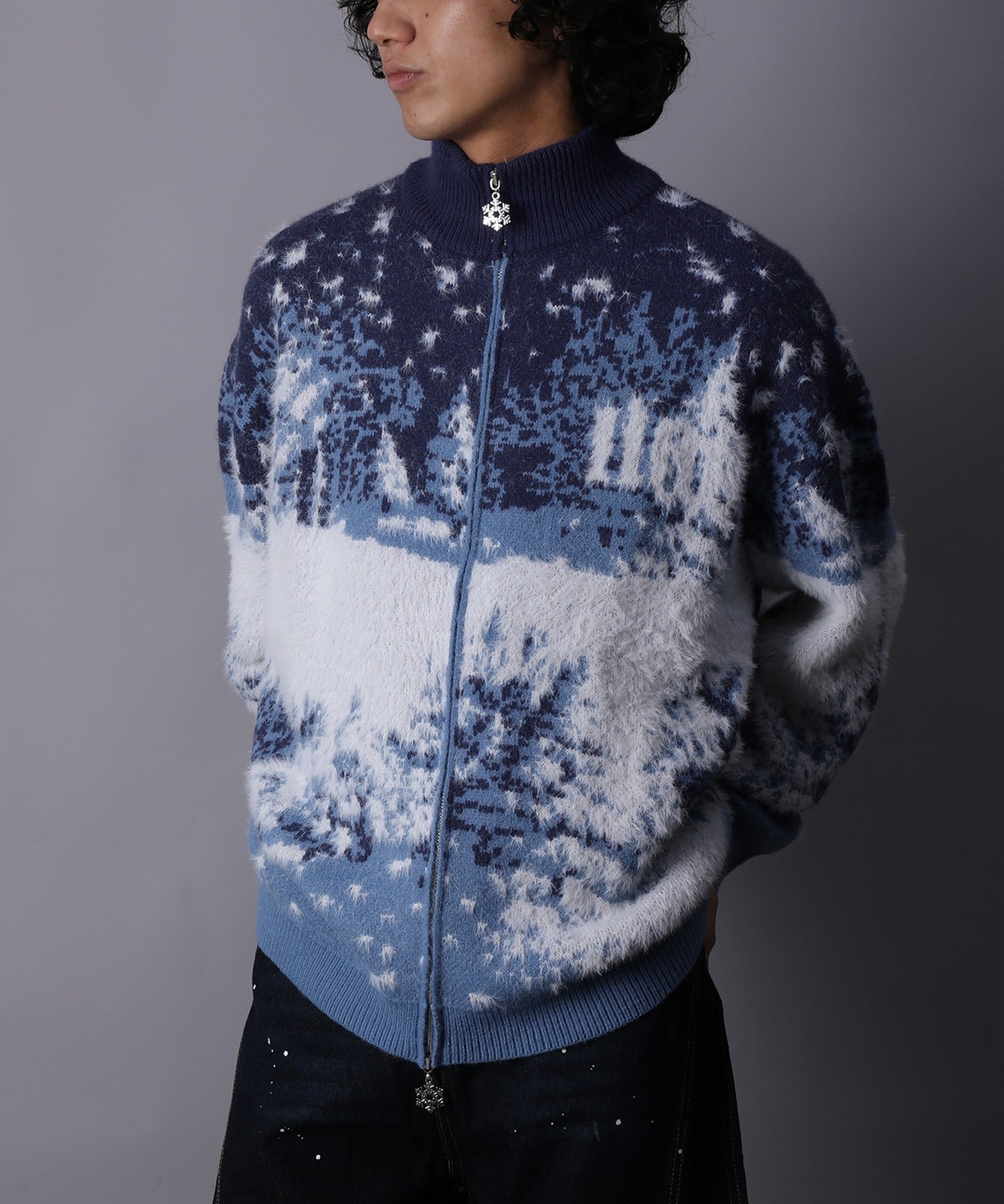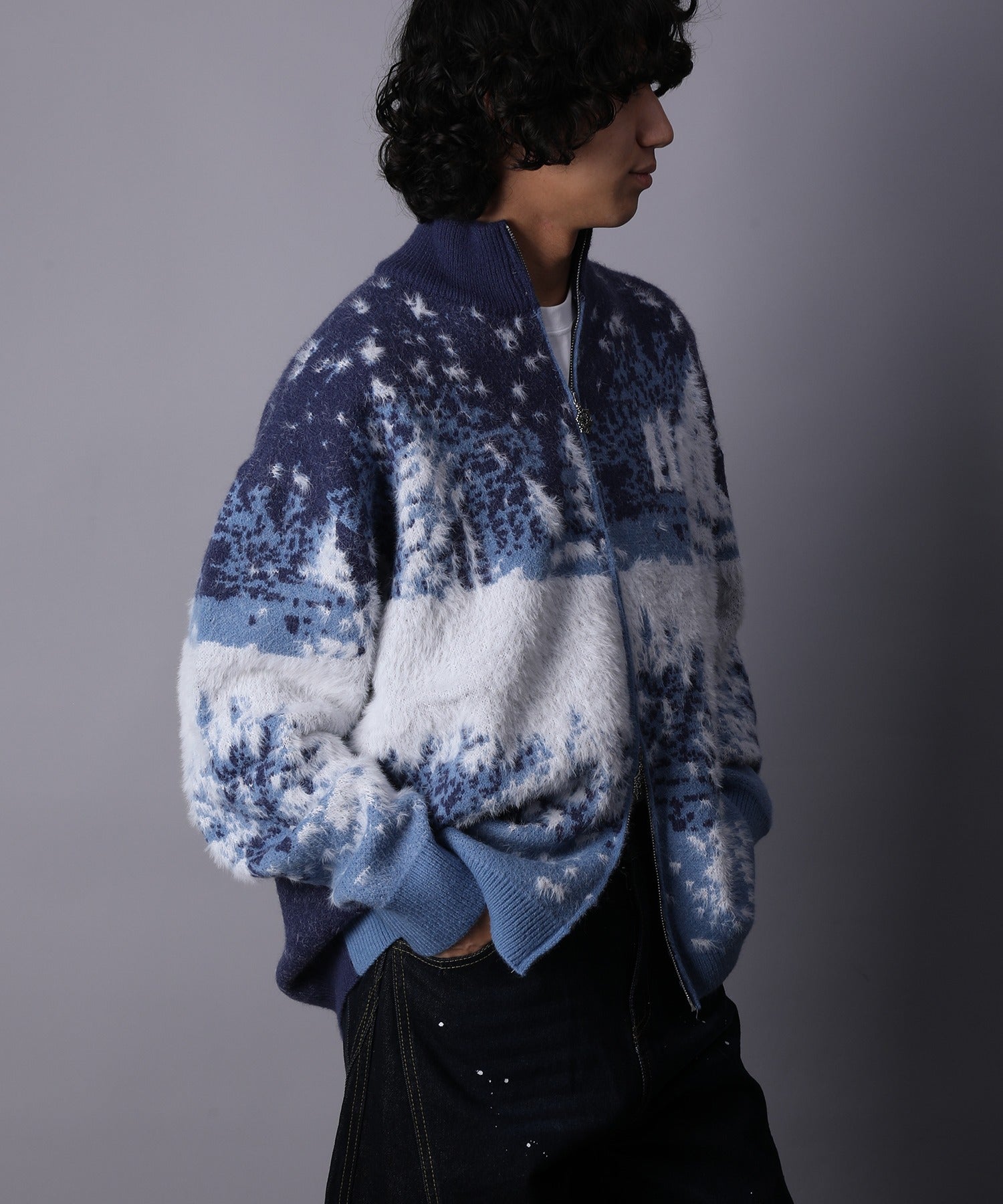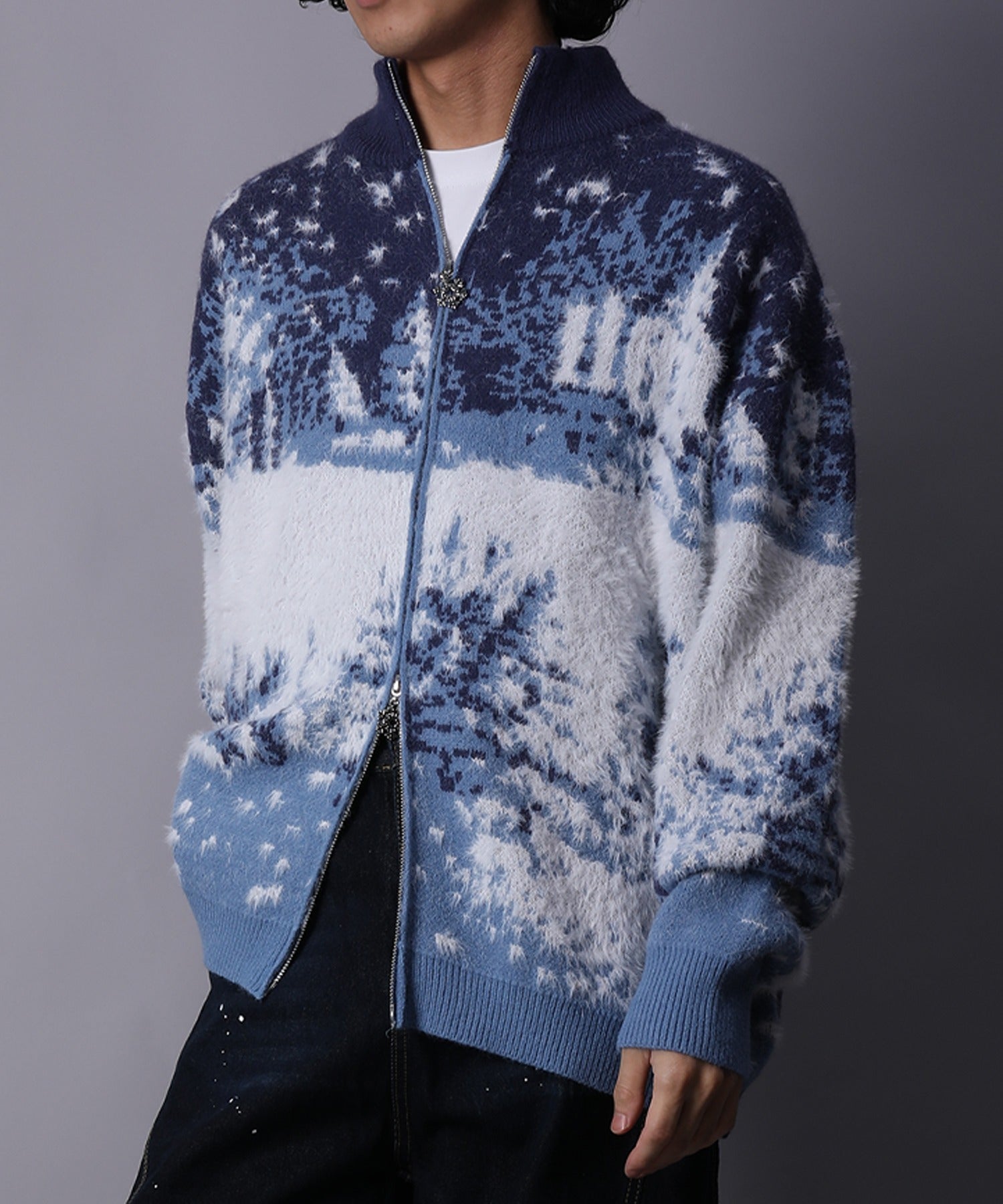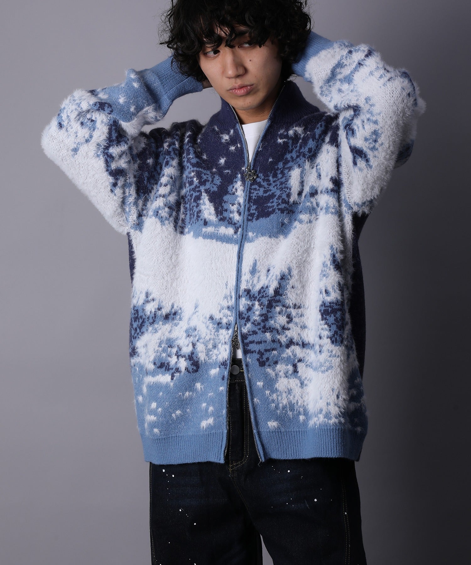 HOOK -original- 雪柄ダブルジップハイネックカーディガン
