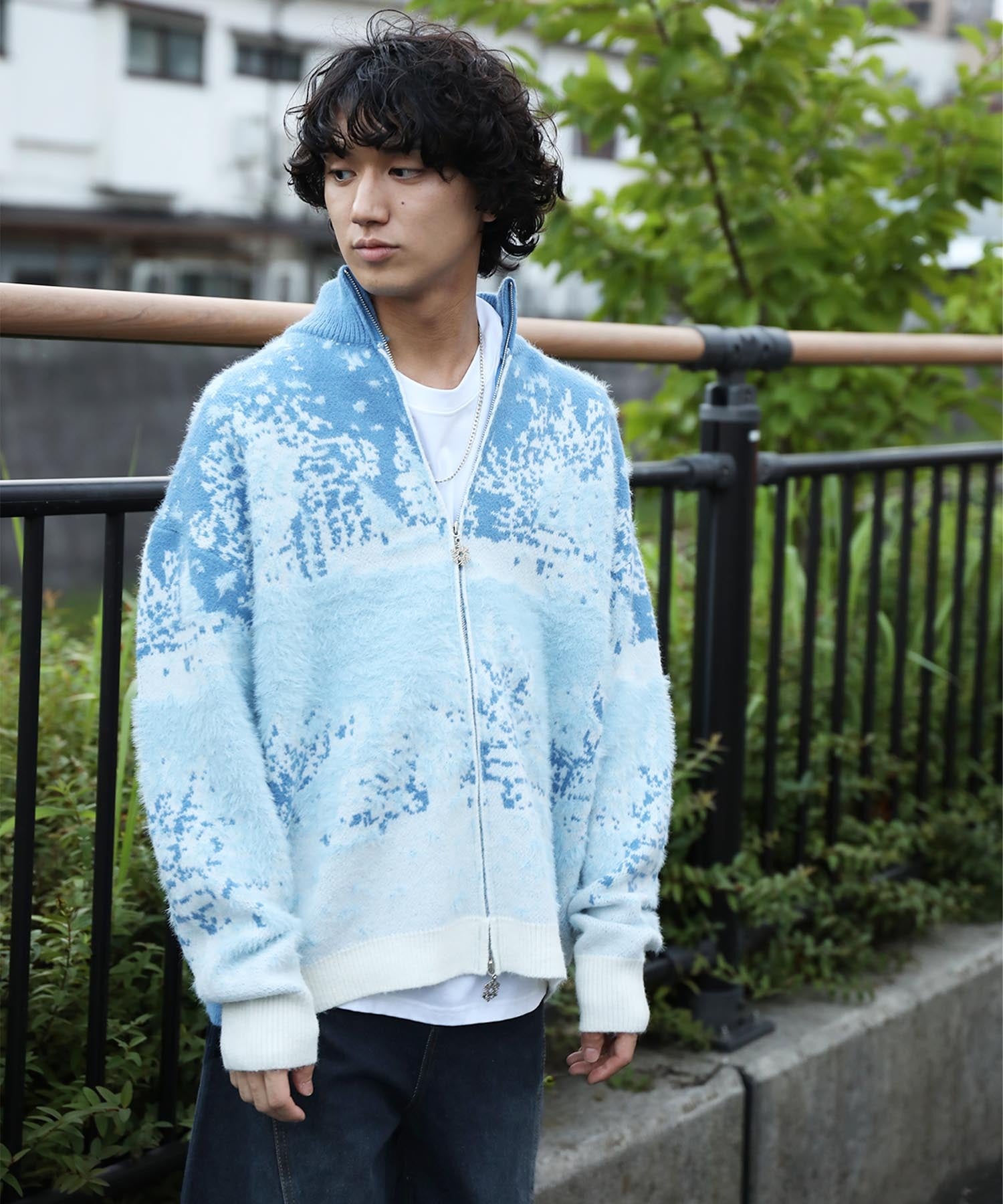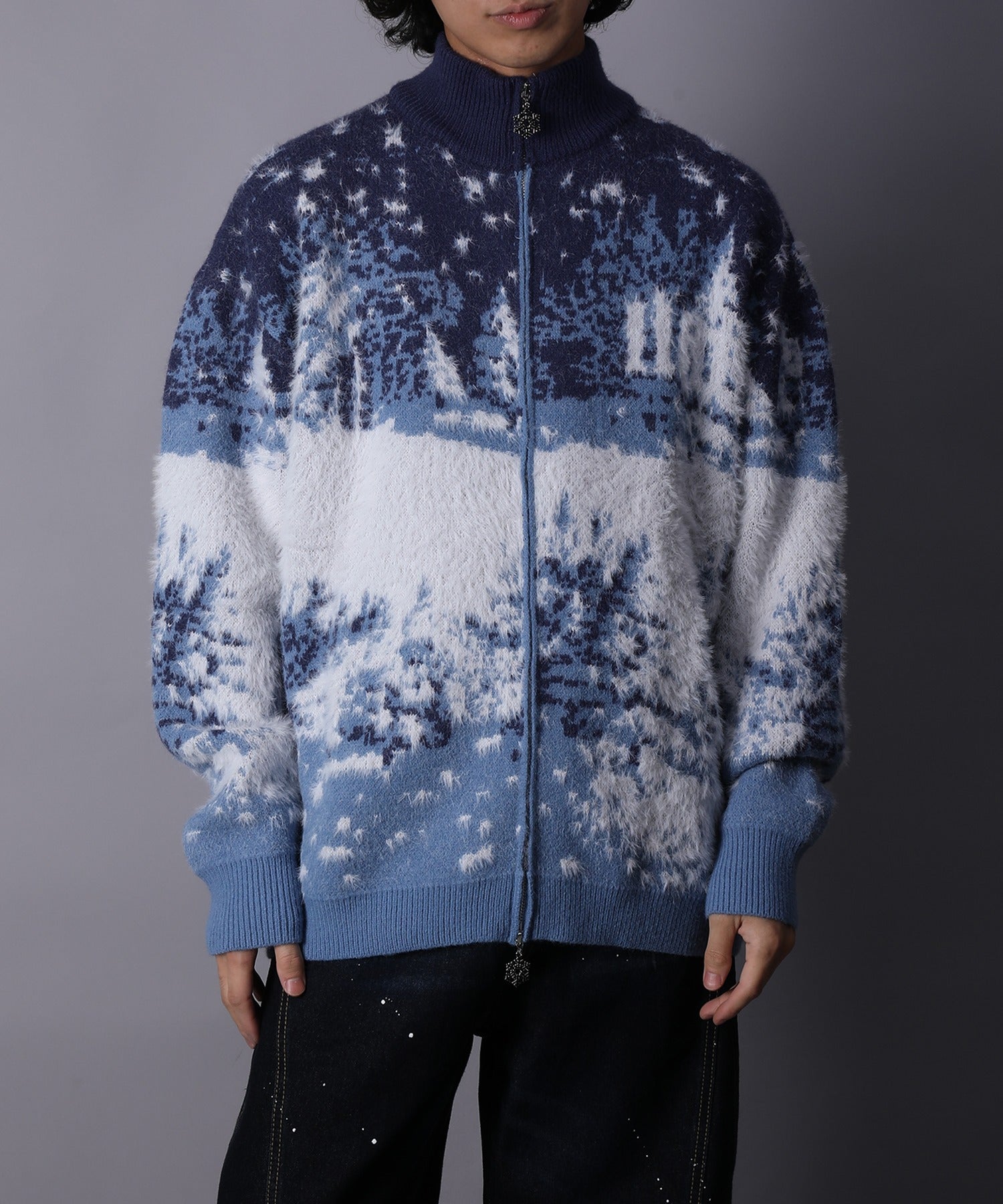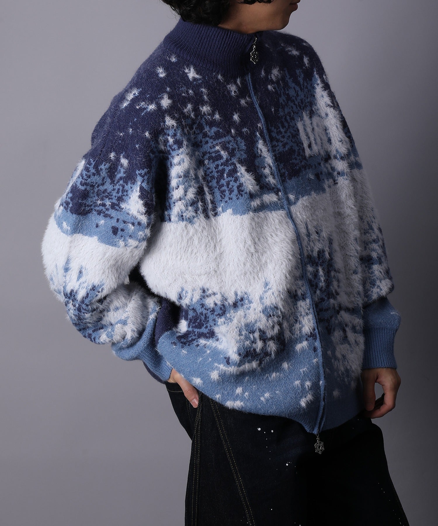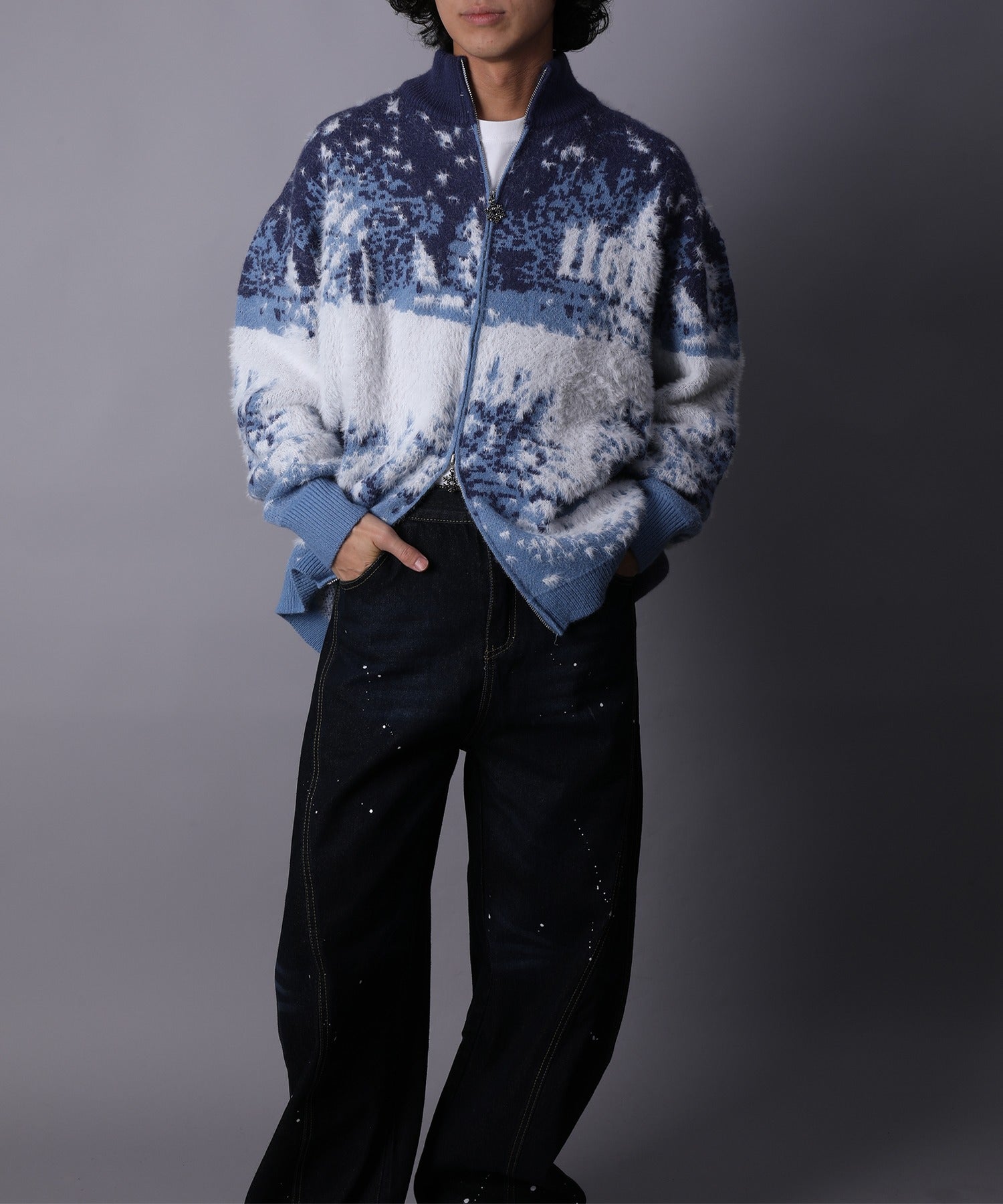 HOOK -original- 雪柄ダブルジップハイネックカーディガン