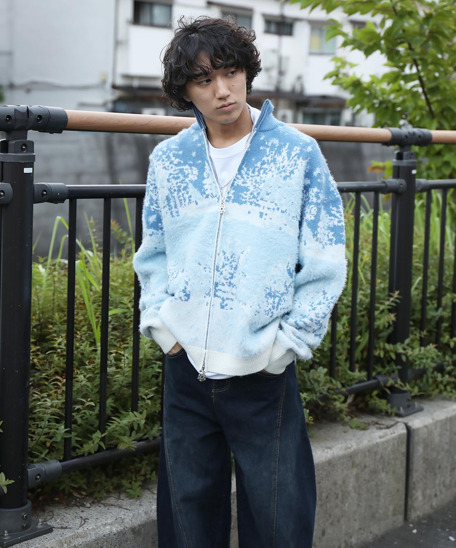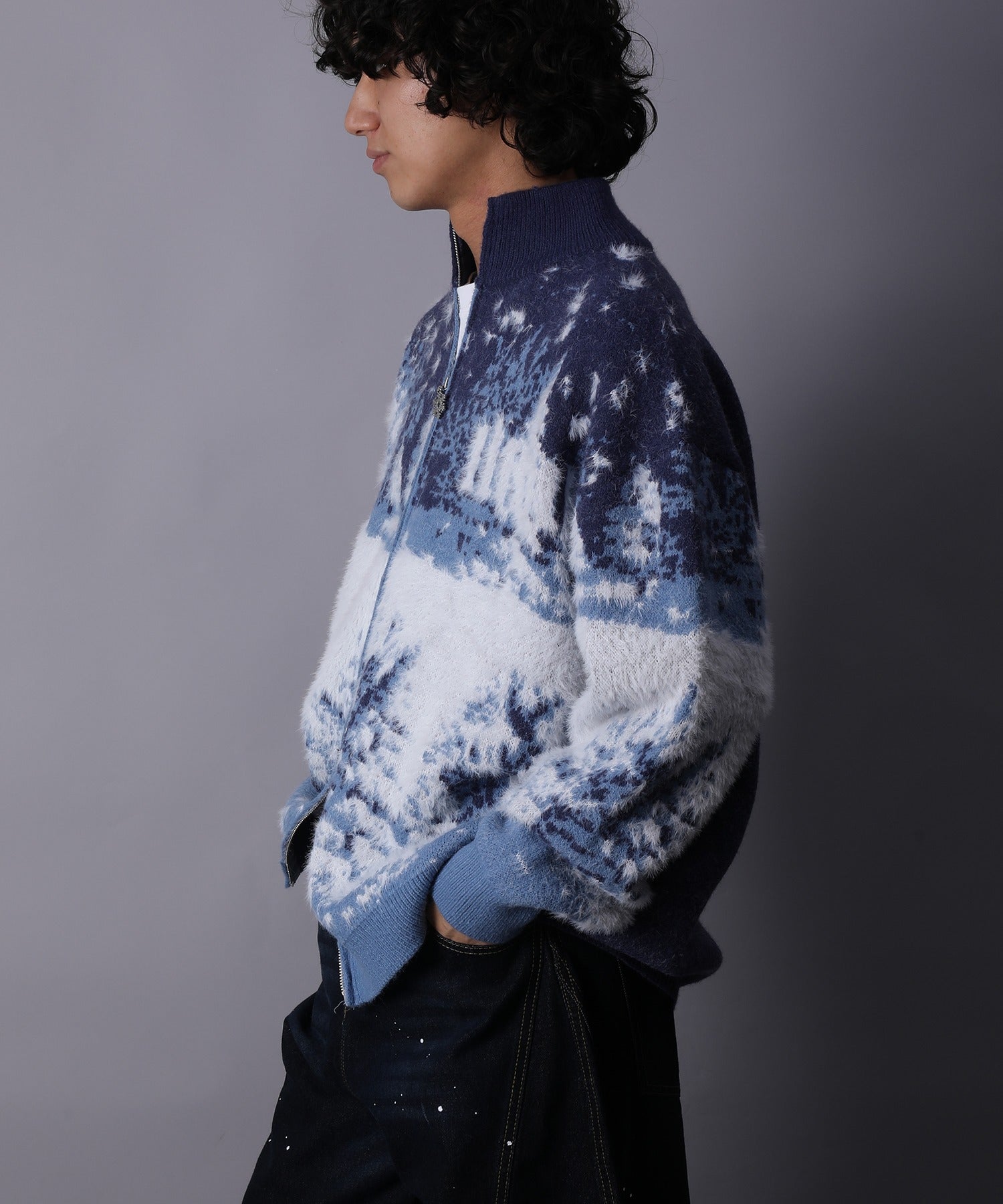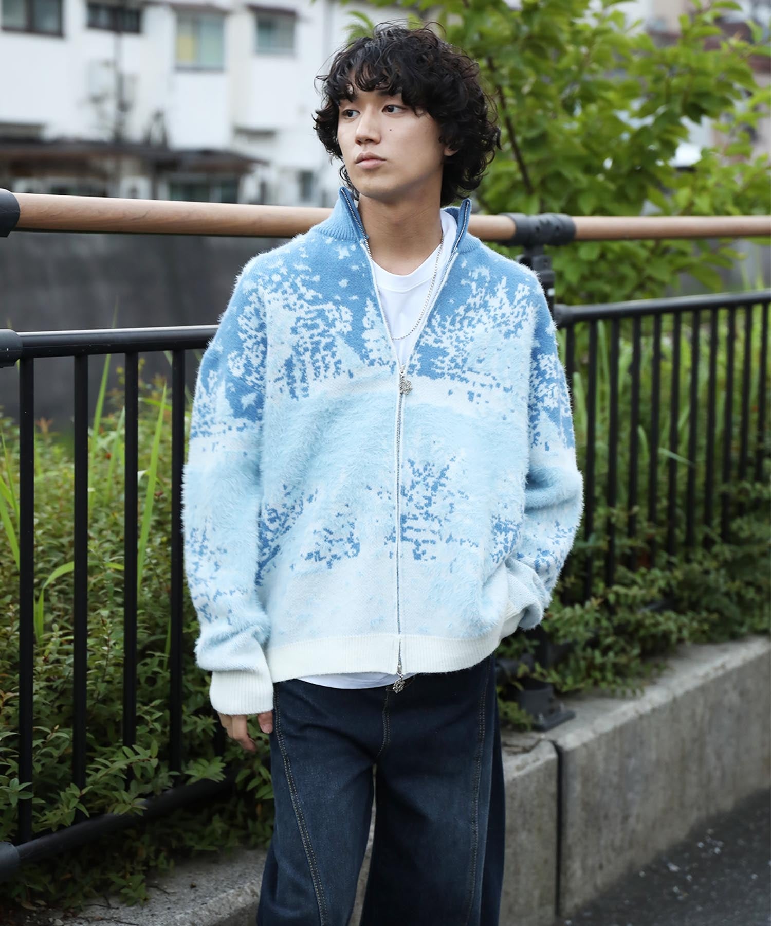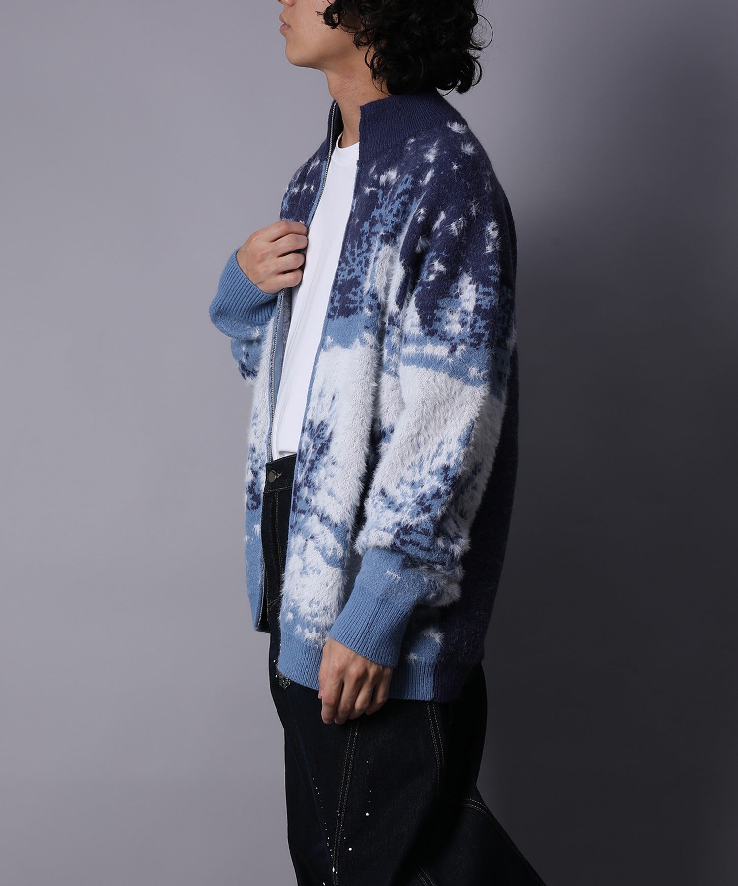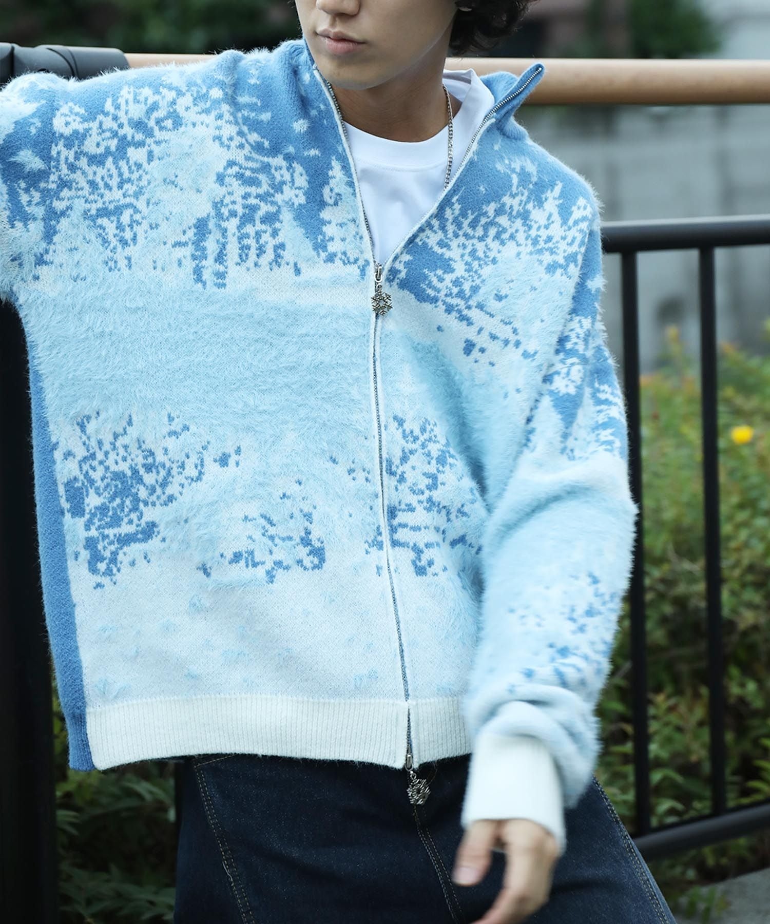 HOOK -original- 雪柄ダブルジップハイネックカーディガン
