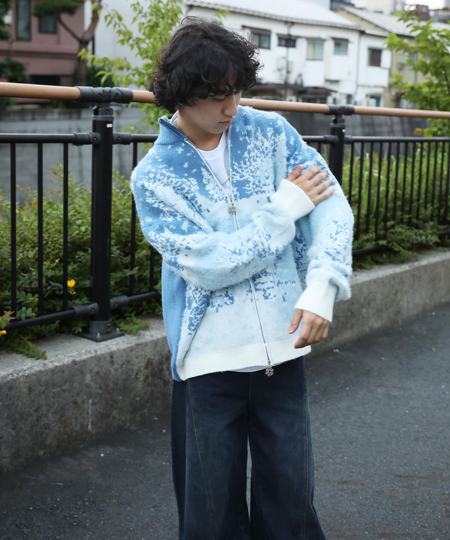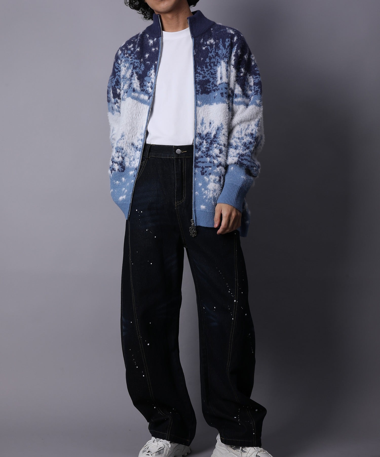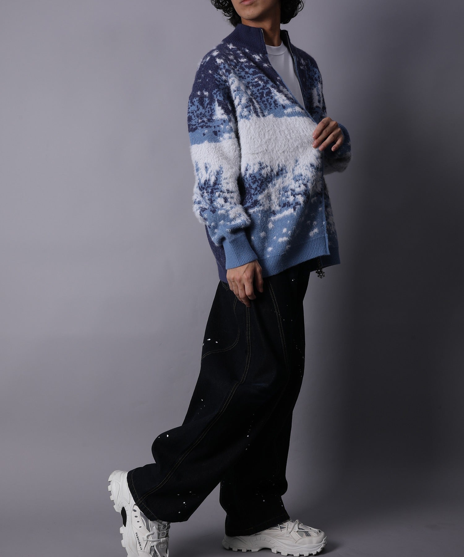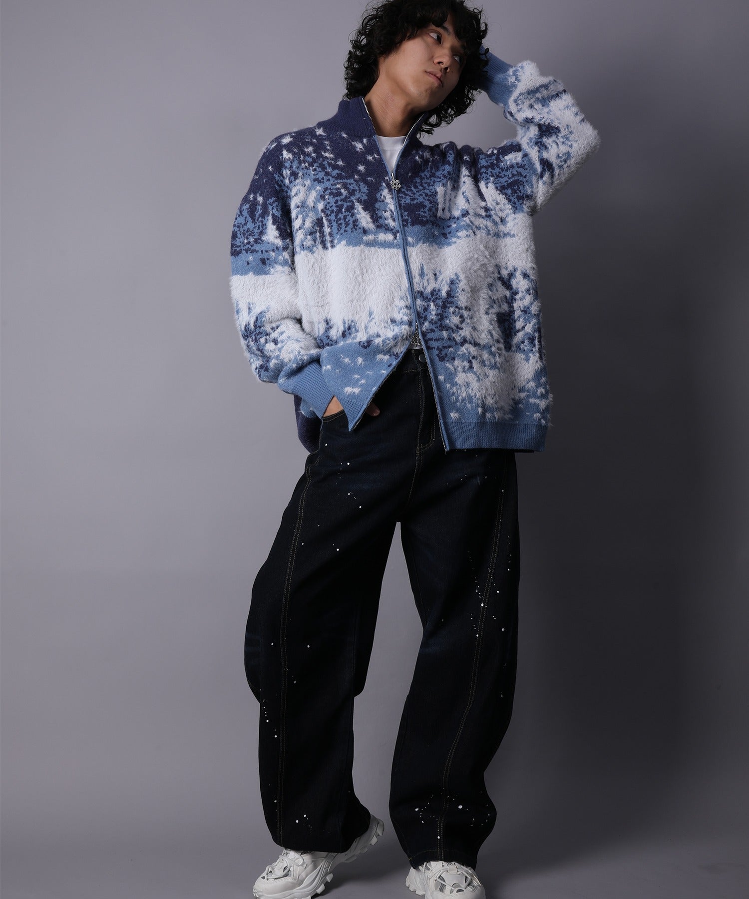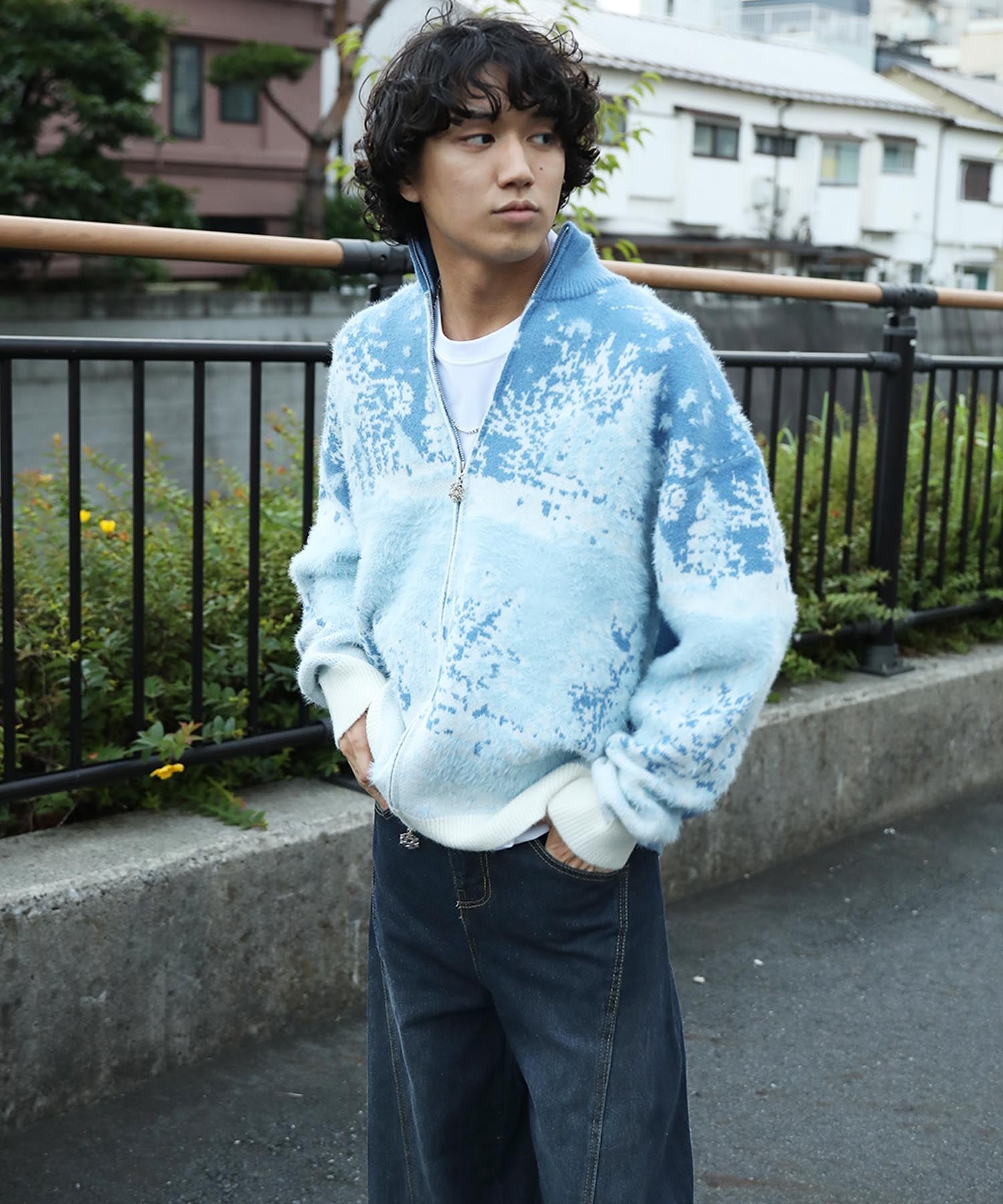 HOOK -original- 雪柄ダブルジップハイネックカーディガン