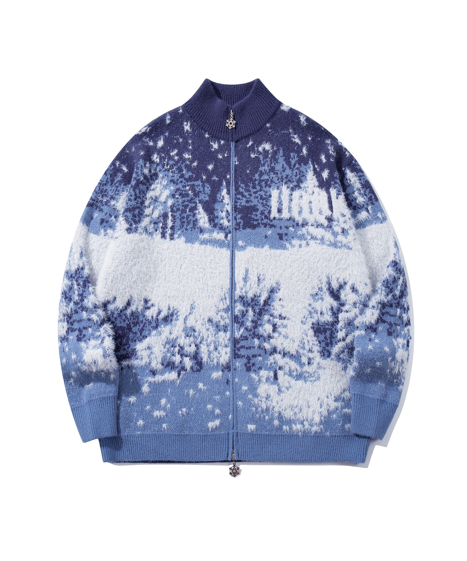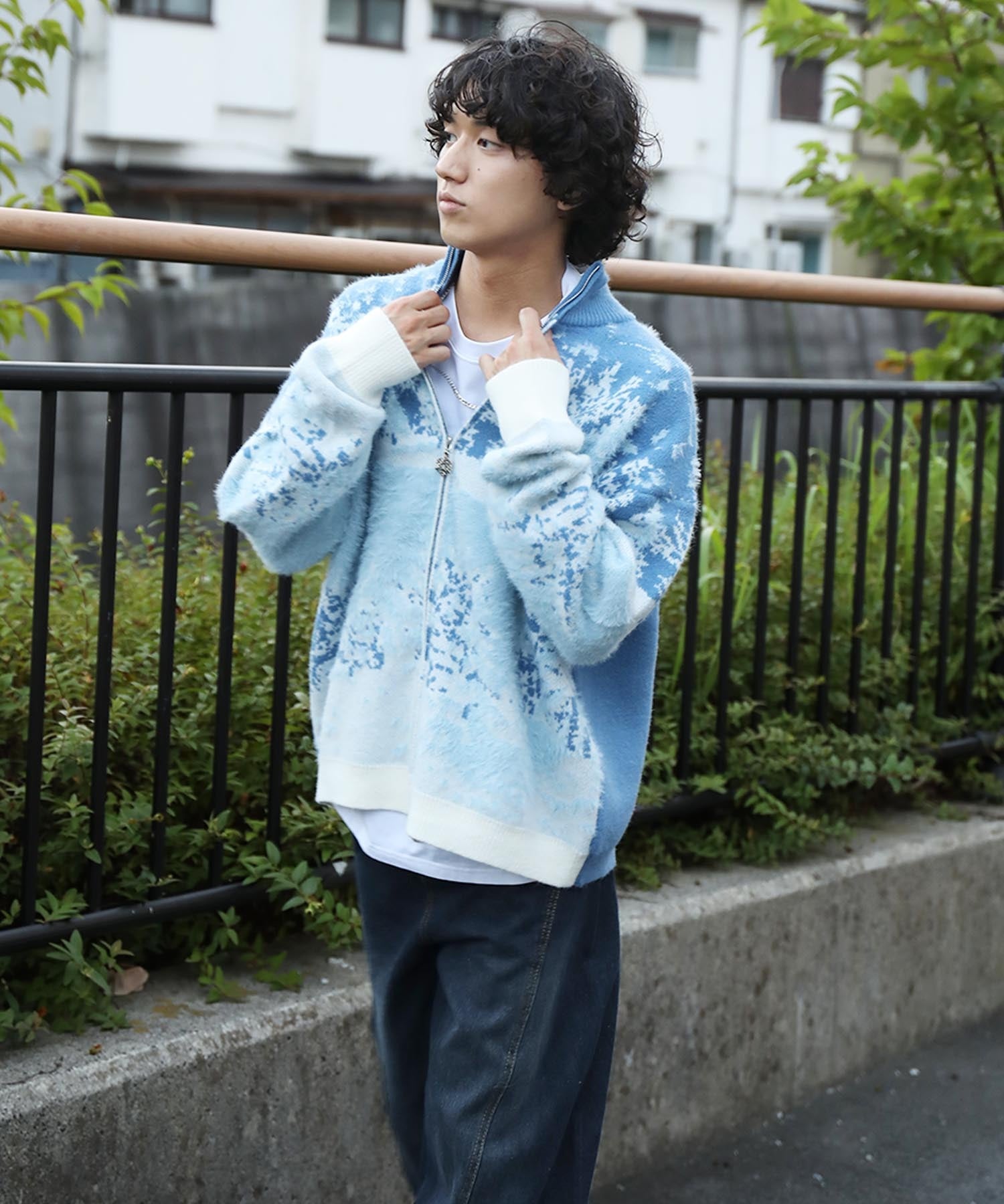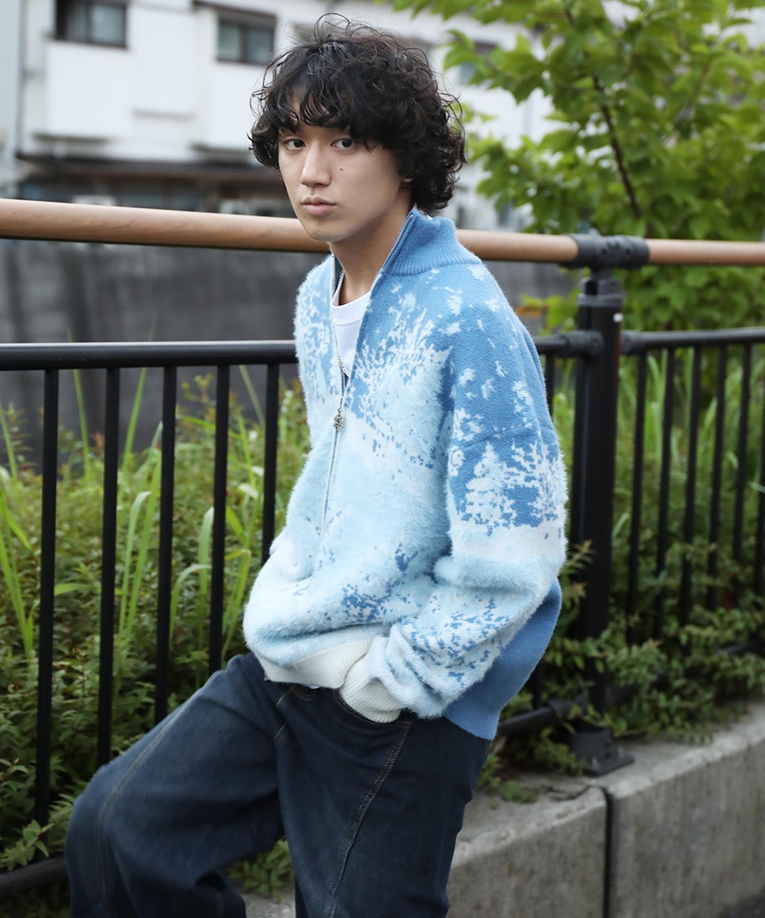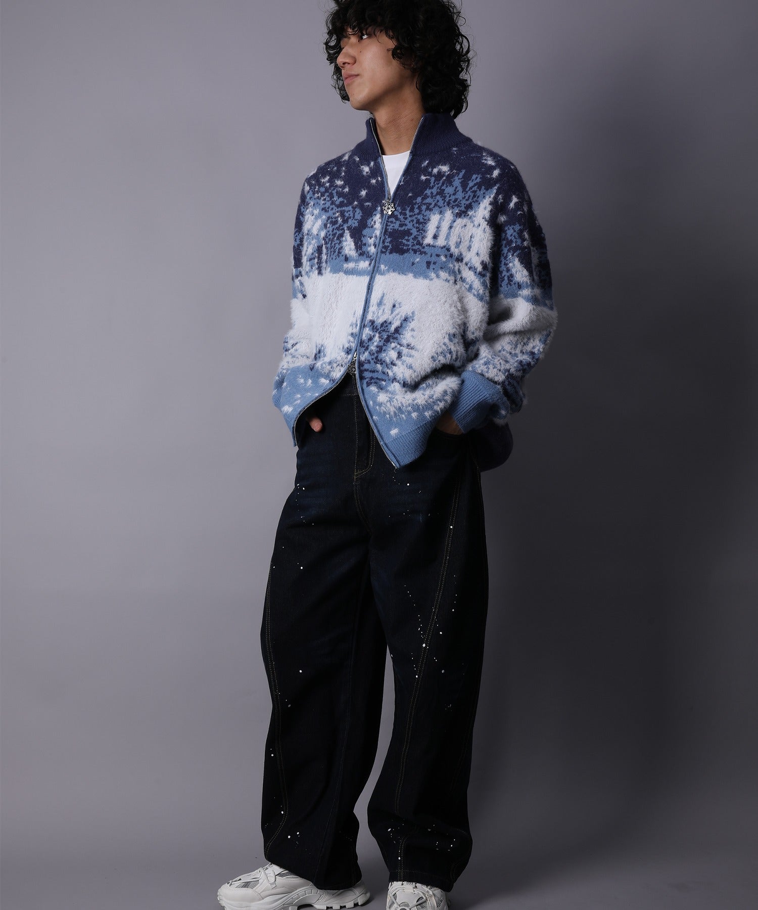 HOOK -original- 雪柄ダブルジップハイネックカーディガン