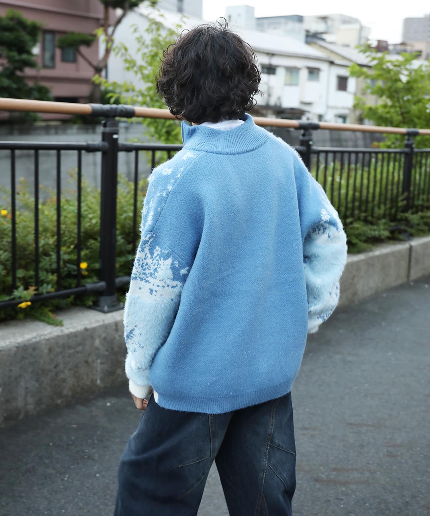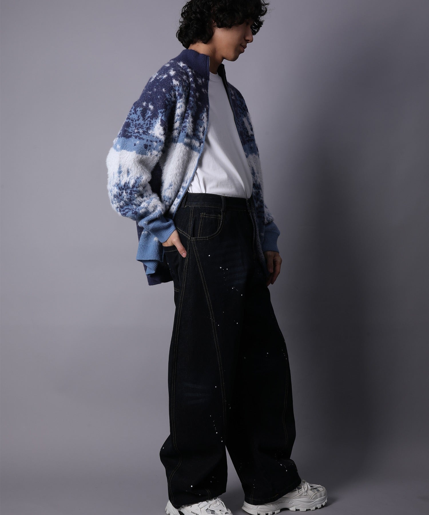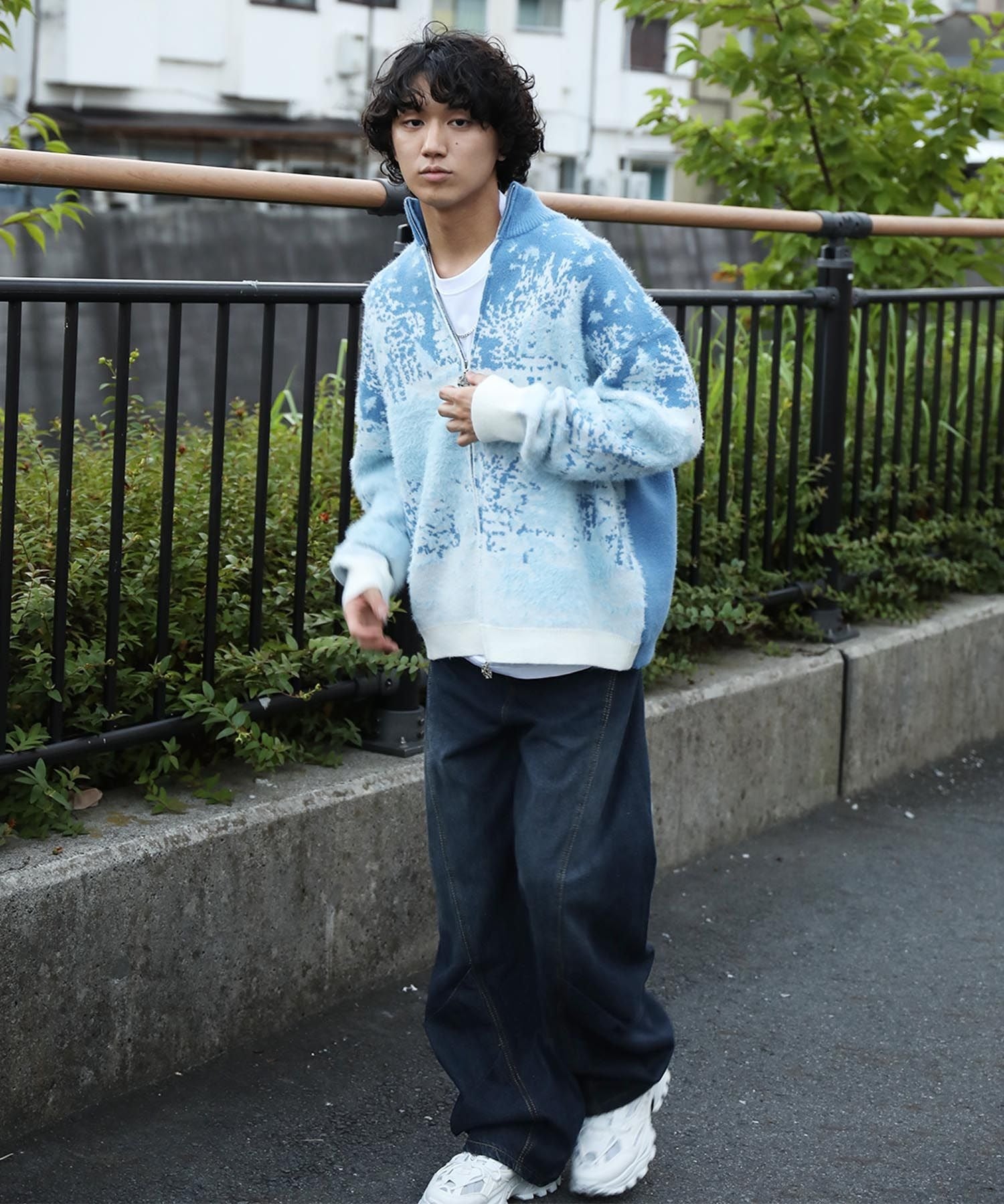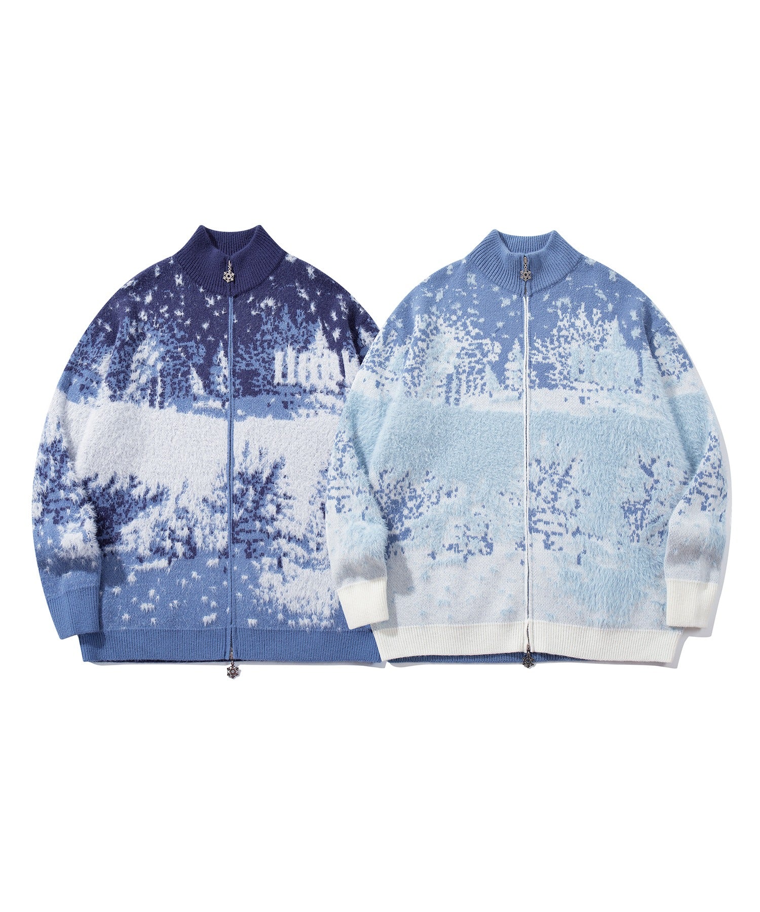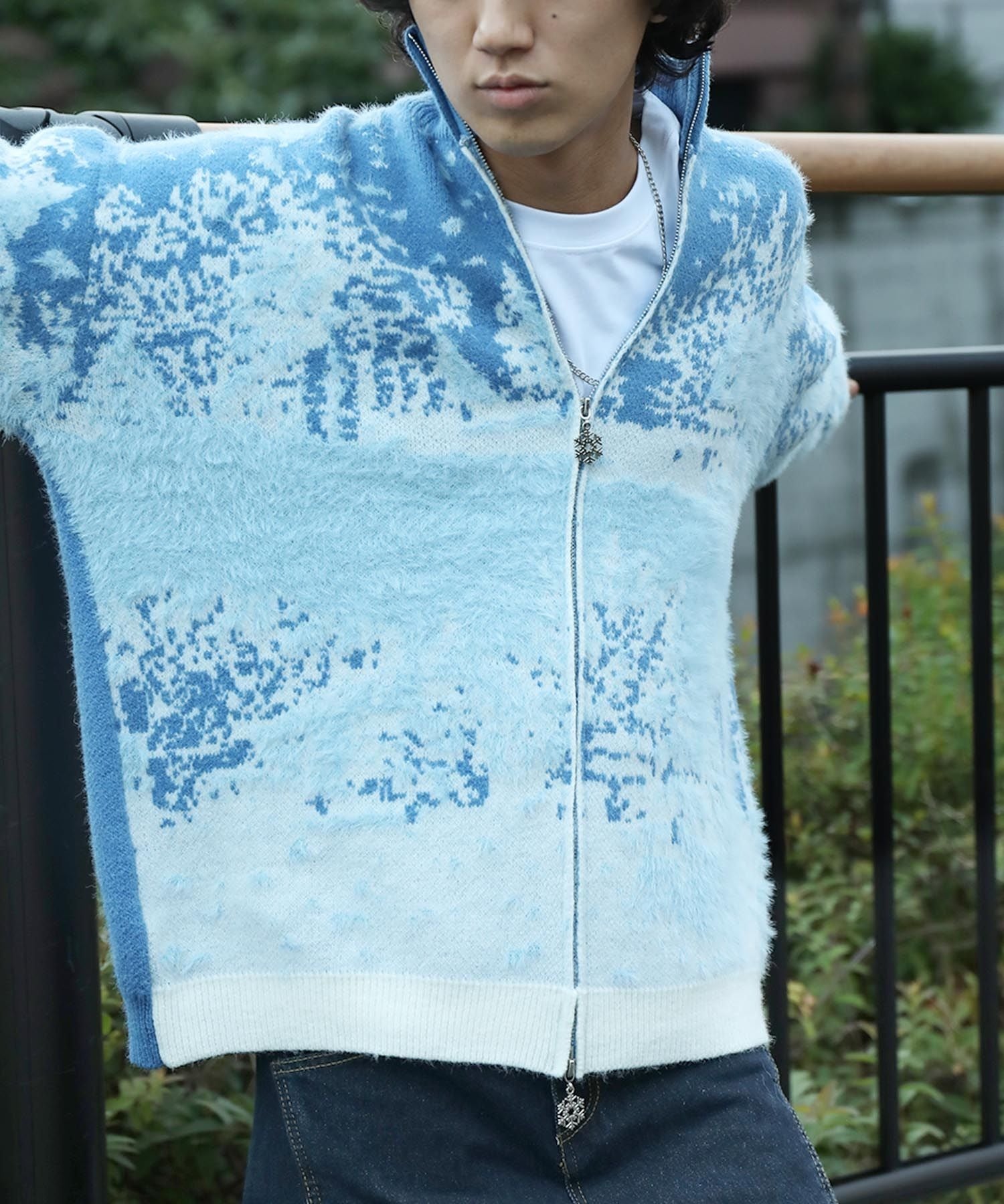 HOOK -original- 雪柄ダブルジップハイネックカーディガン