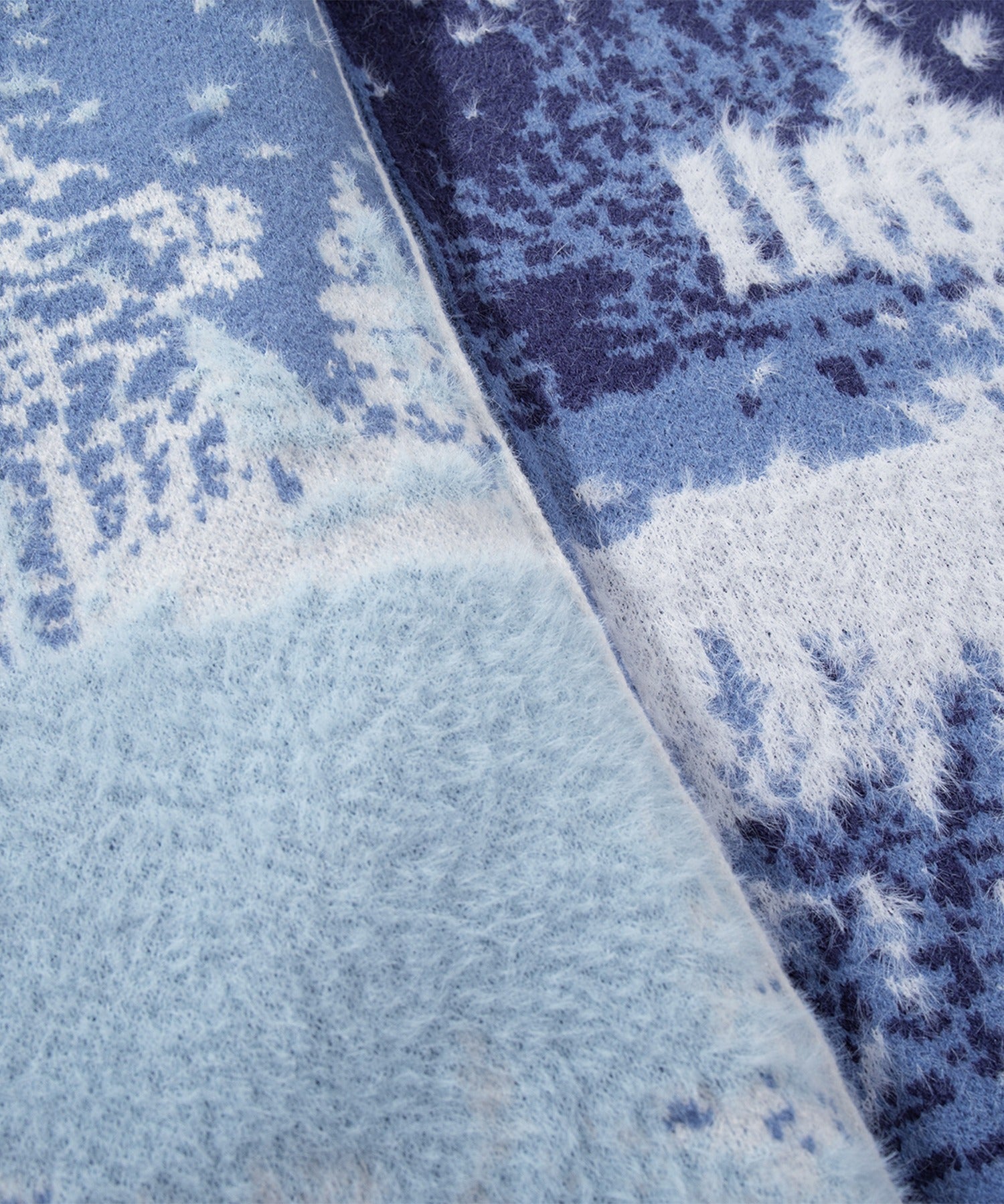全体に広がる雪柄は、まるで静かな森に舞う雪のよう。