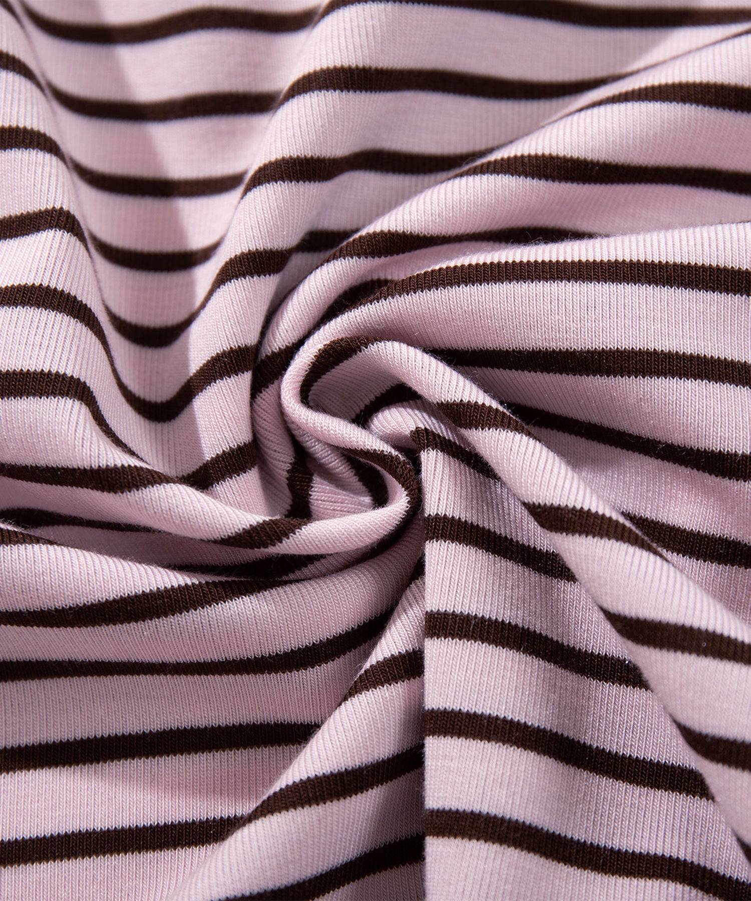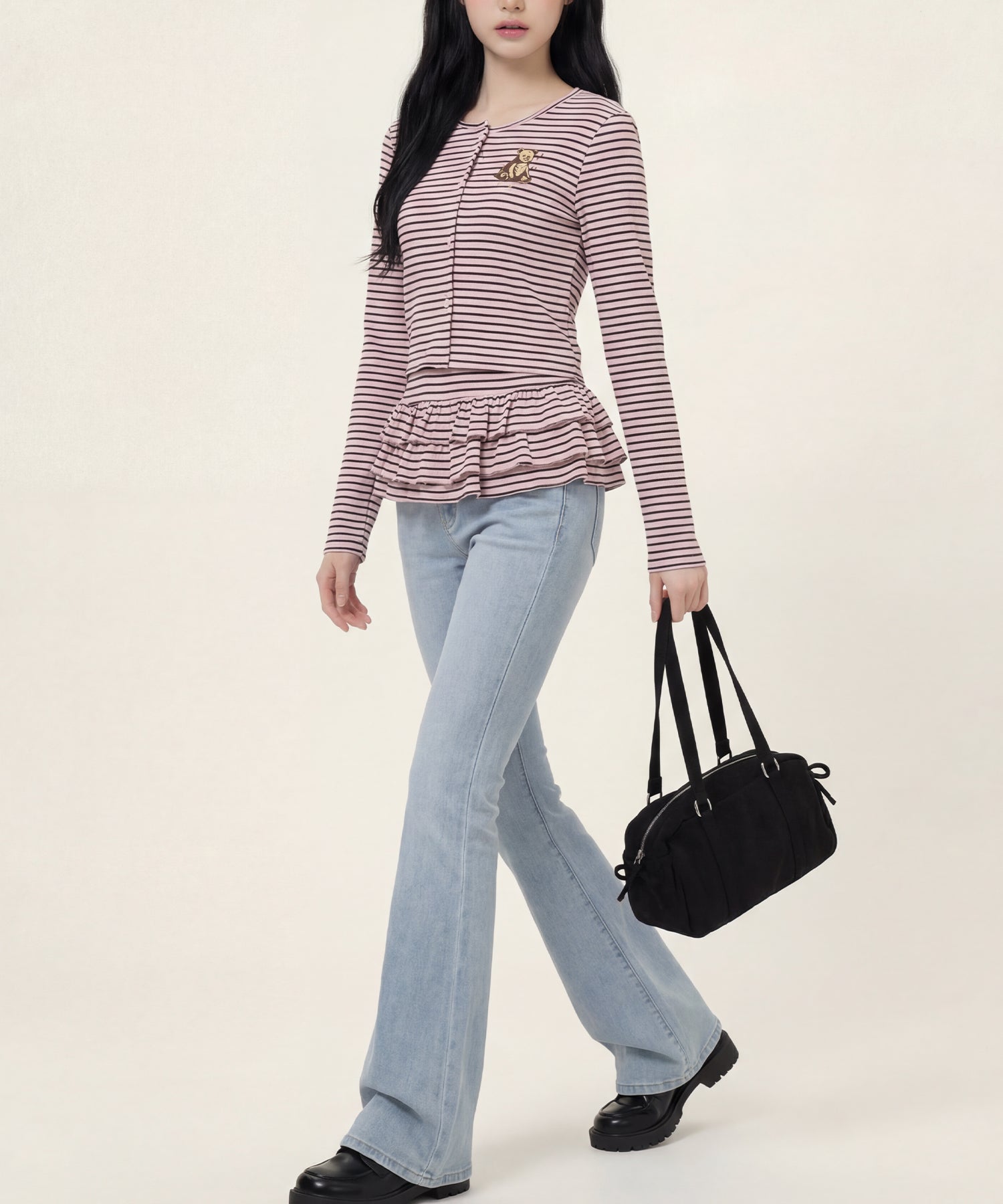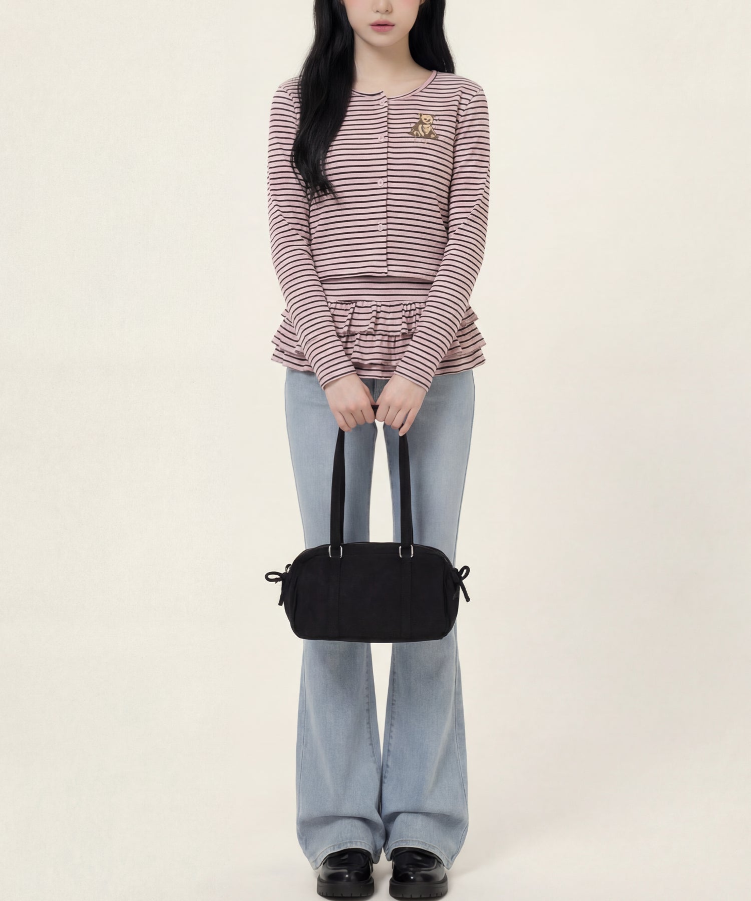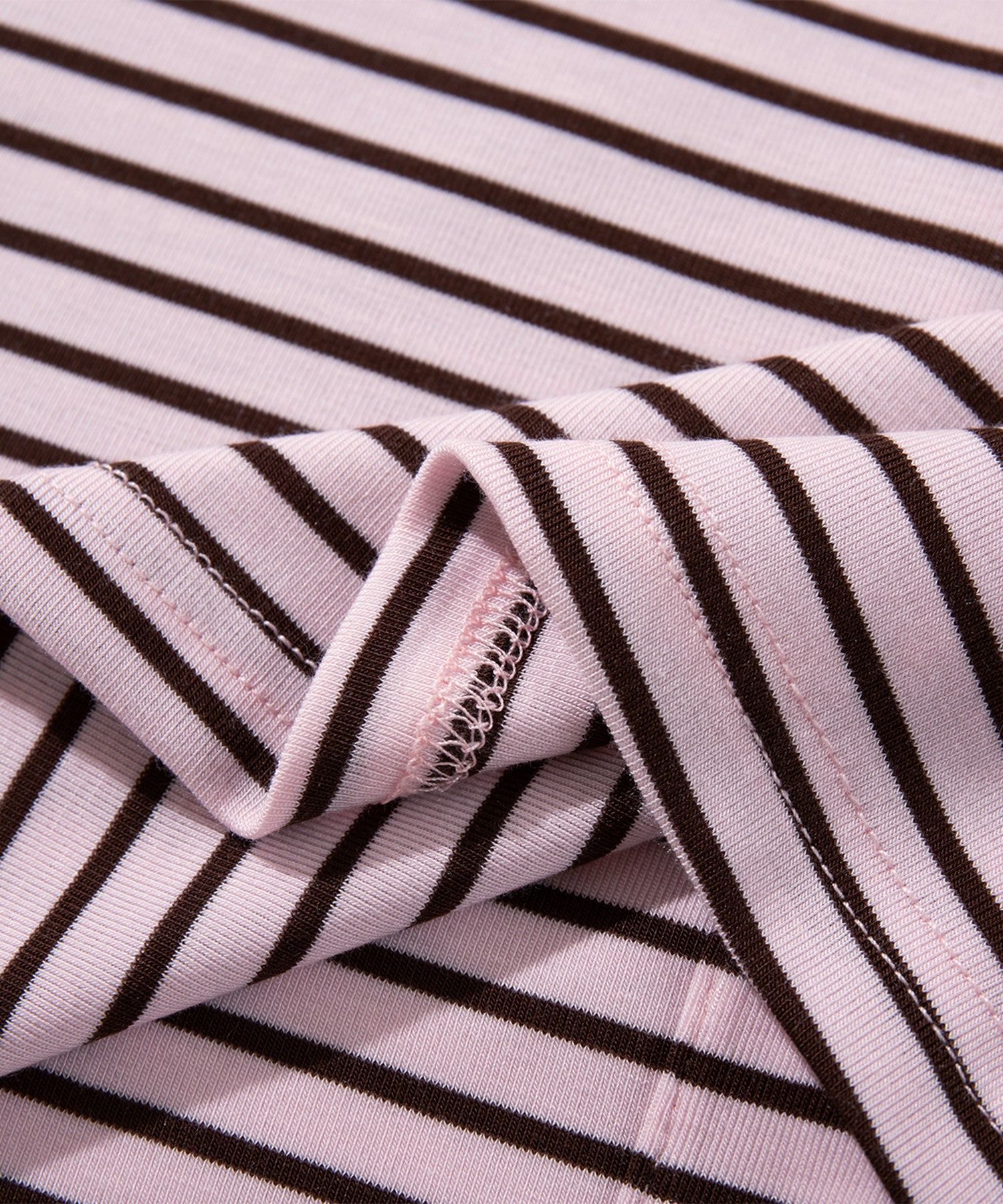 胸元ワンポイントのベアプリントが可愛いボーダーアンサンブル。