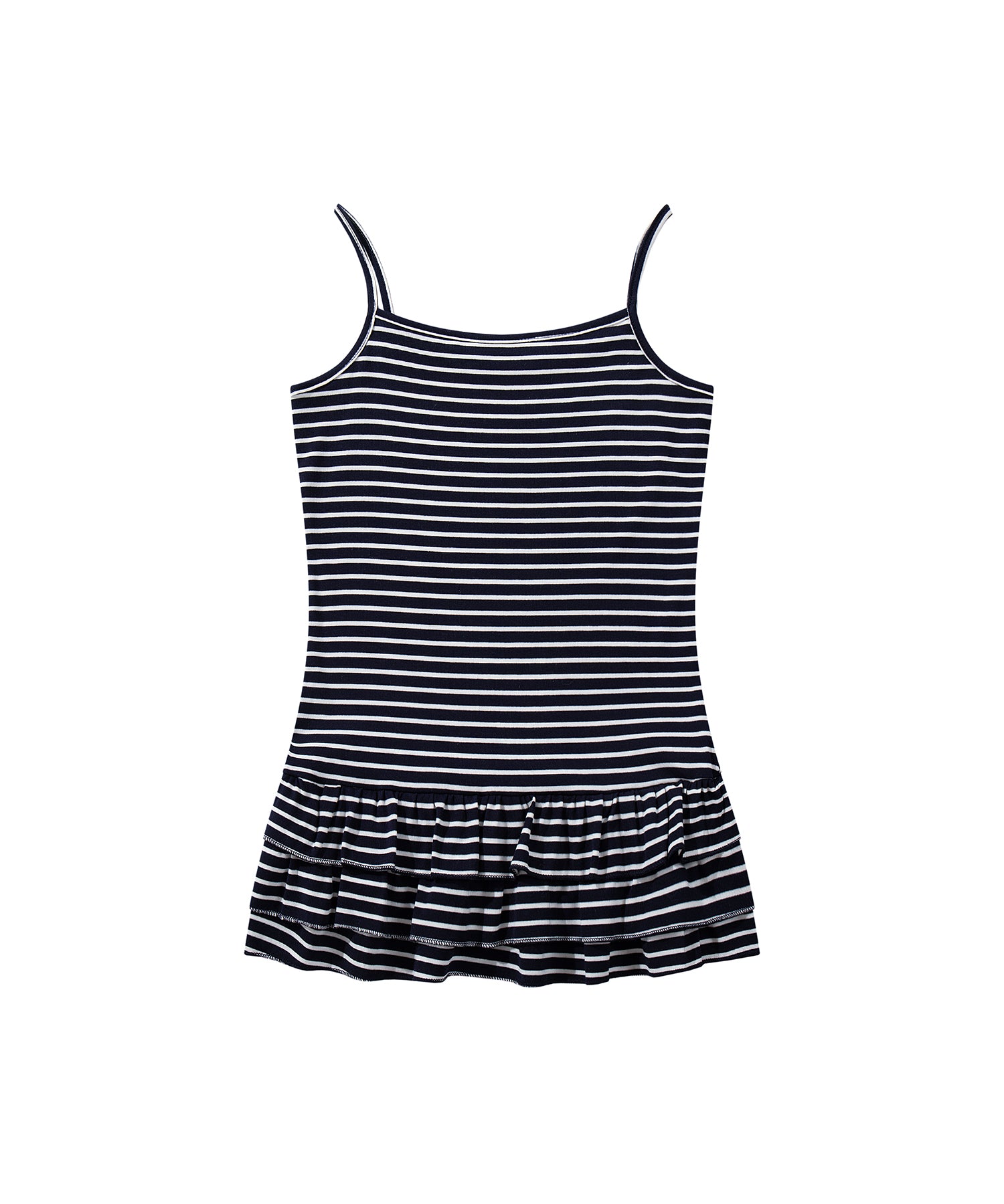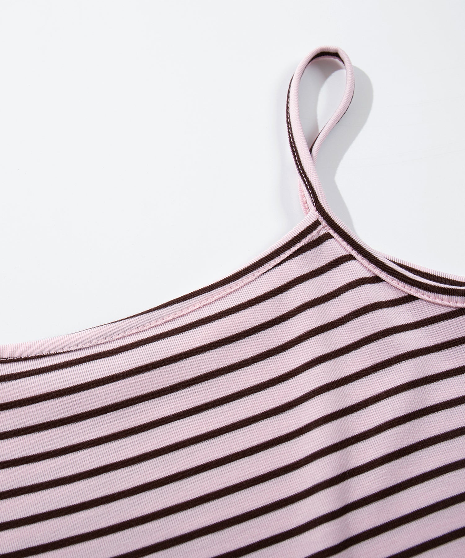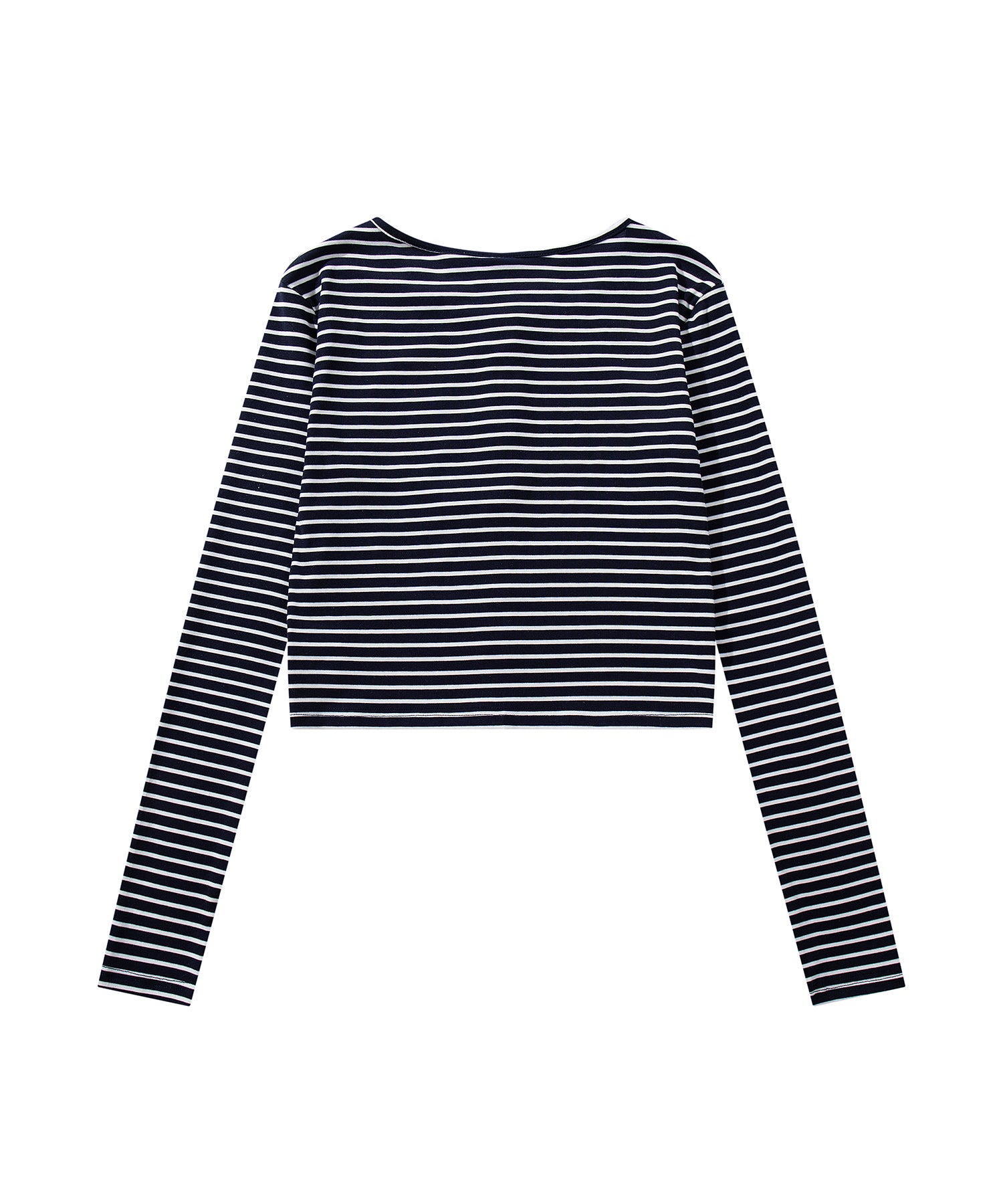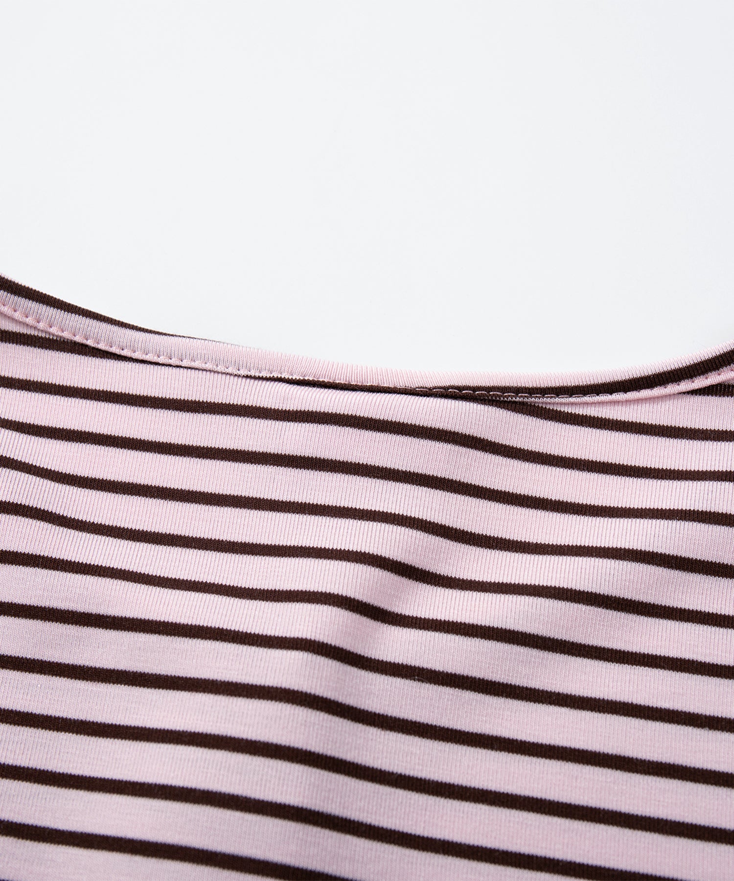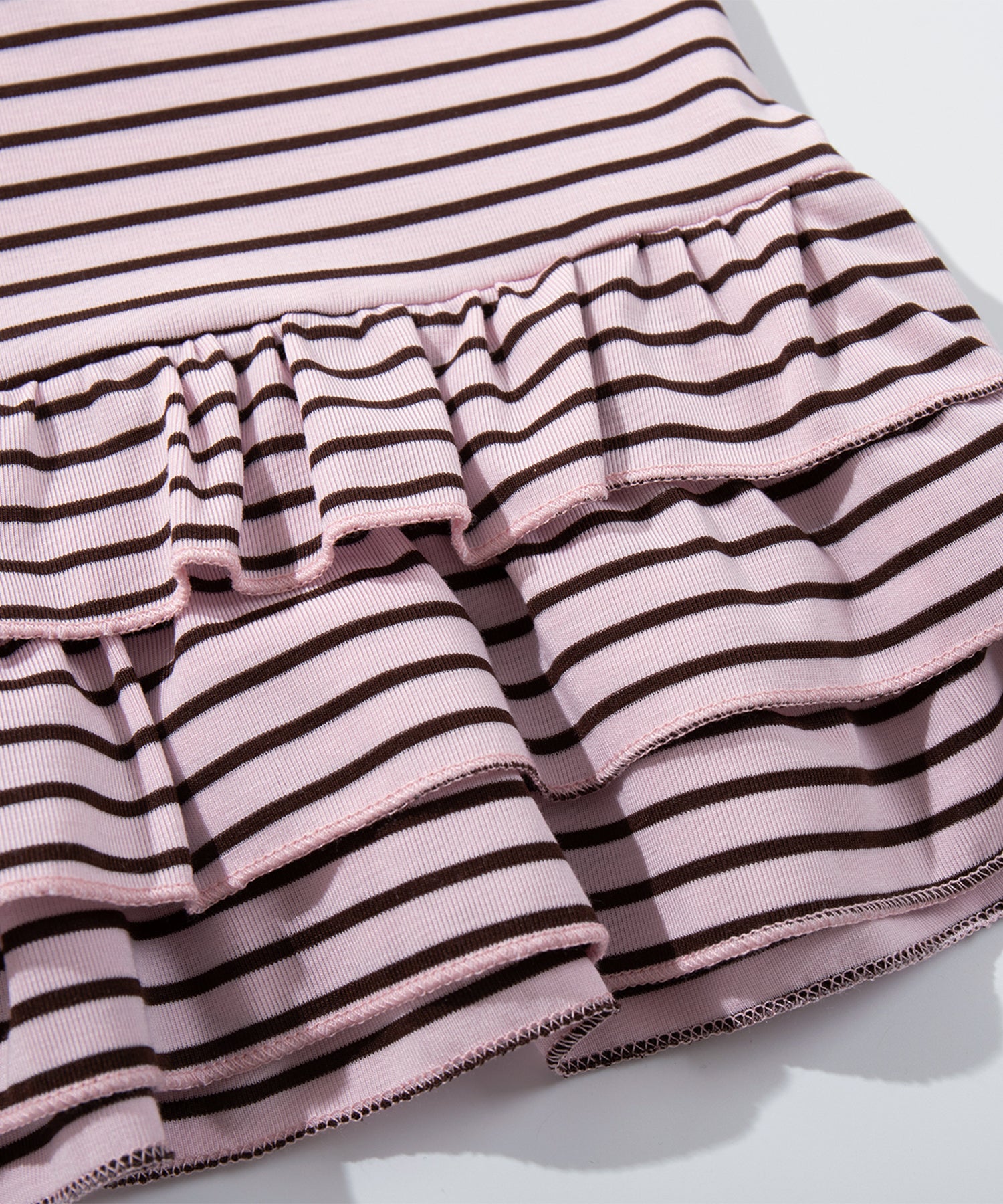胸元ワンポイントのベアプリントが可愛いボーダーアンサンブル。