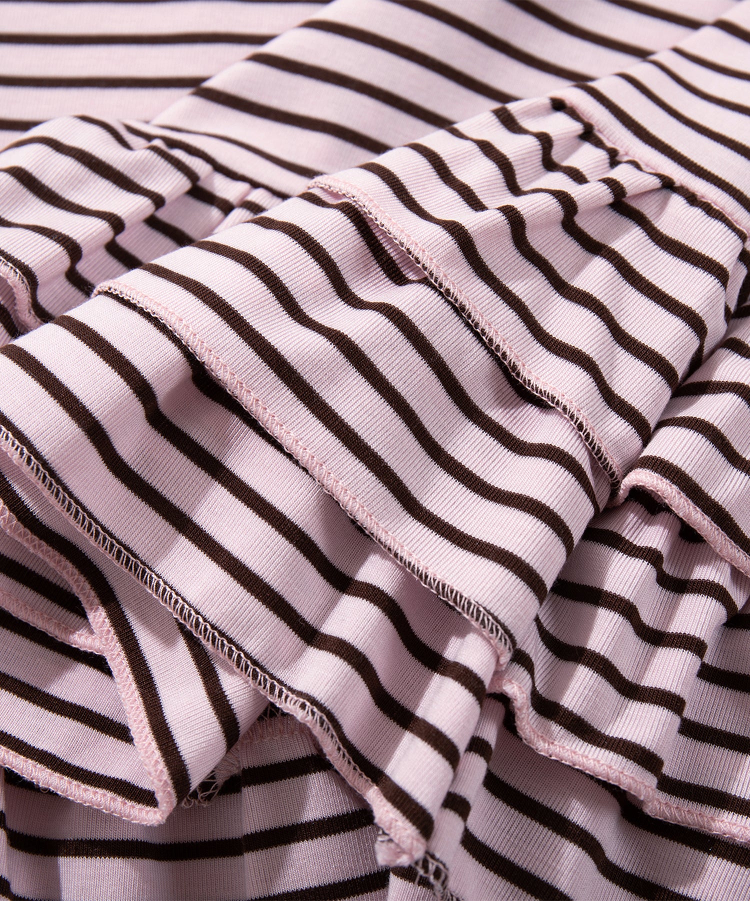 レイヤード風デザインで1枚でコーデが決まり、春秋のカジュアルコーデにもおすすめ。