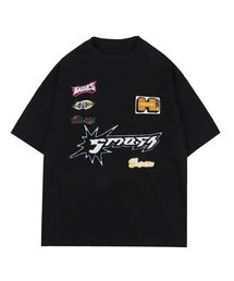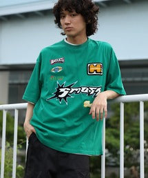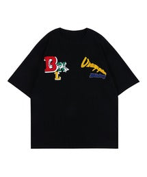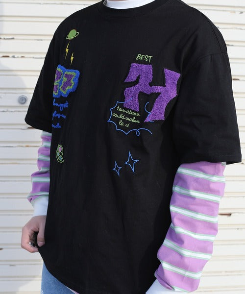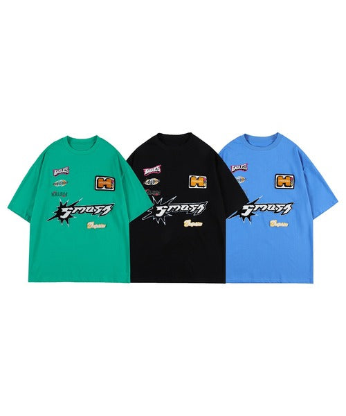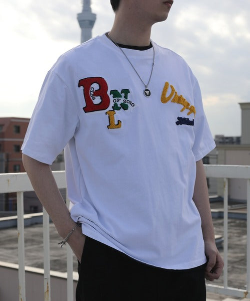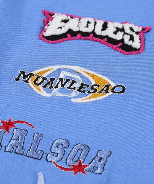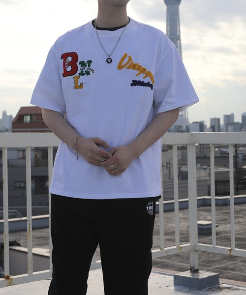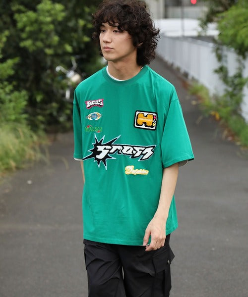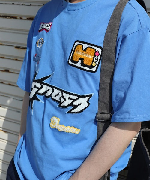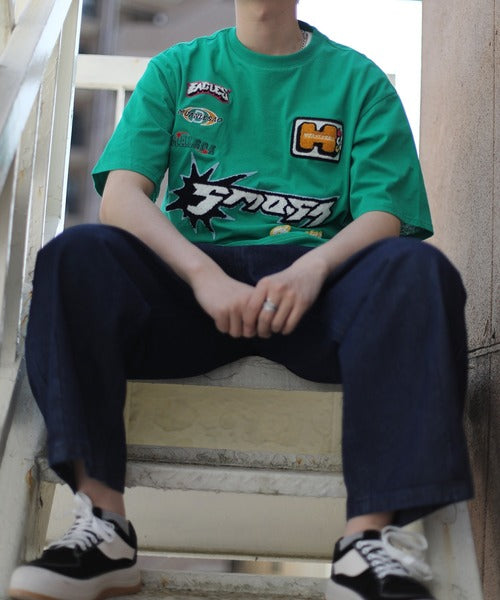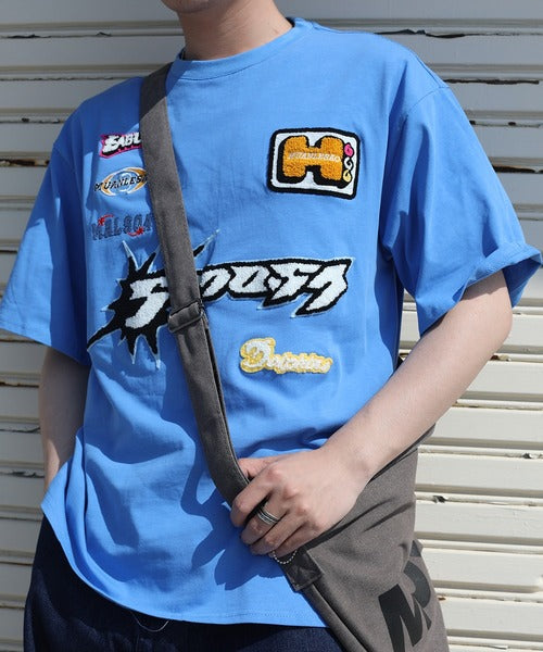 HOOK- アメカジ風ワッペン刺繍半袖TEE
