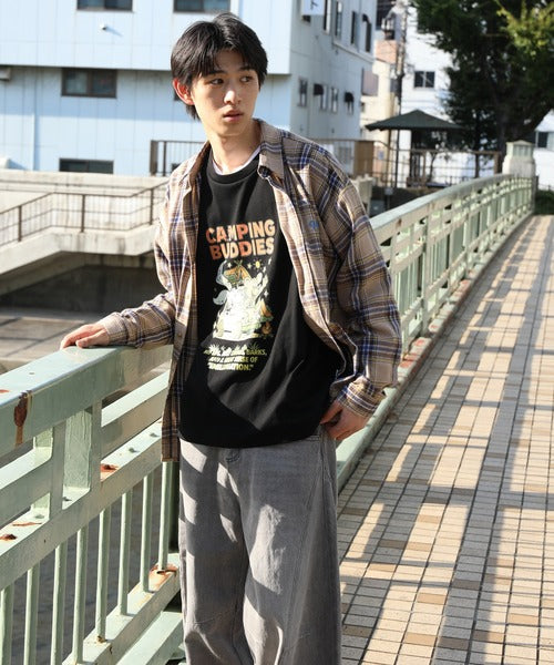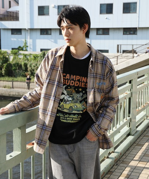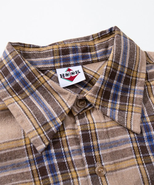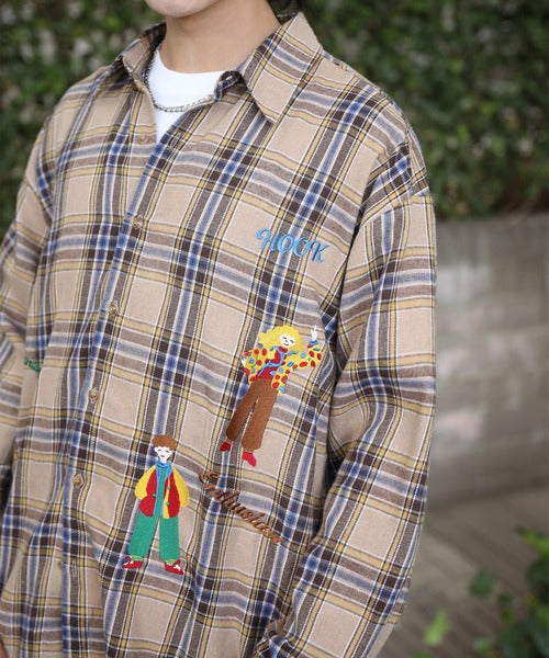 HOOK -original- レトロ古着風 キャラクター刺繍チェックシャツ