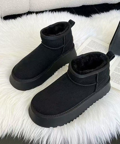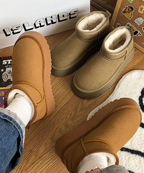 防寒性と可愛らしさを兼ね備えた、冬の定番、厚底ショートブーツ。