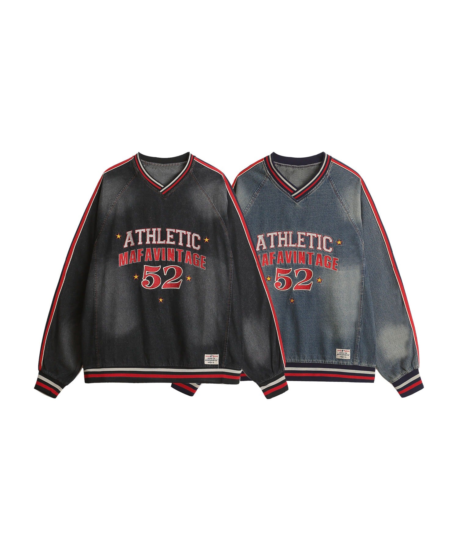ヴィンテージ風 デニム Vネックトレーナー