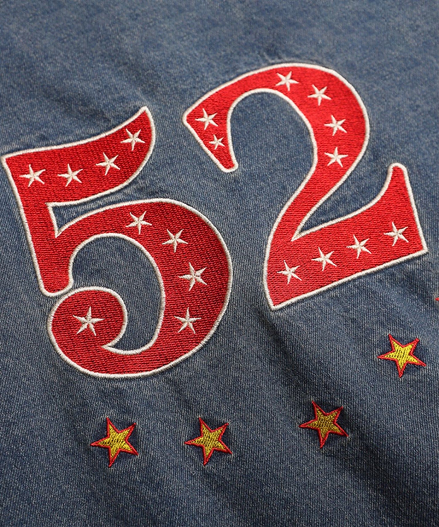 フロントにはロゴ刺繍が大きく入ったアメリカンなデザイン。バックにもナンバー刺繍が施され、ヴィンテージのチームユニフォームを思わせるデザインが魅力です。